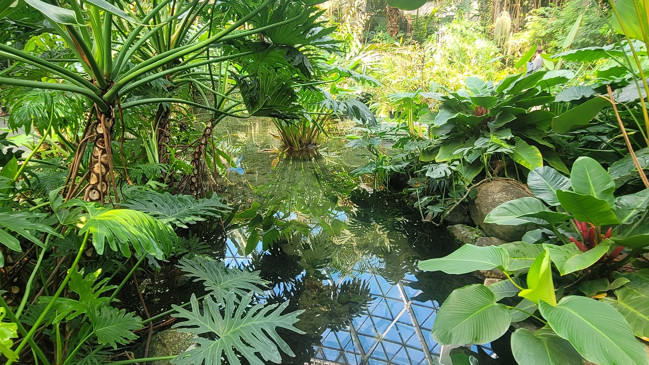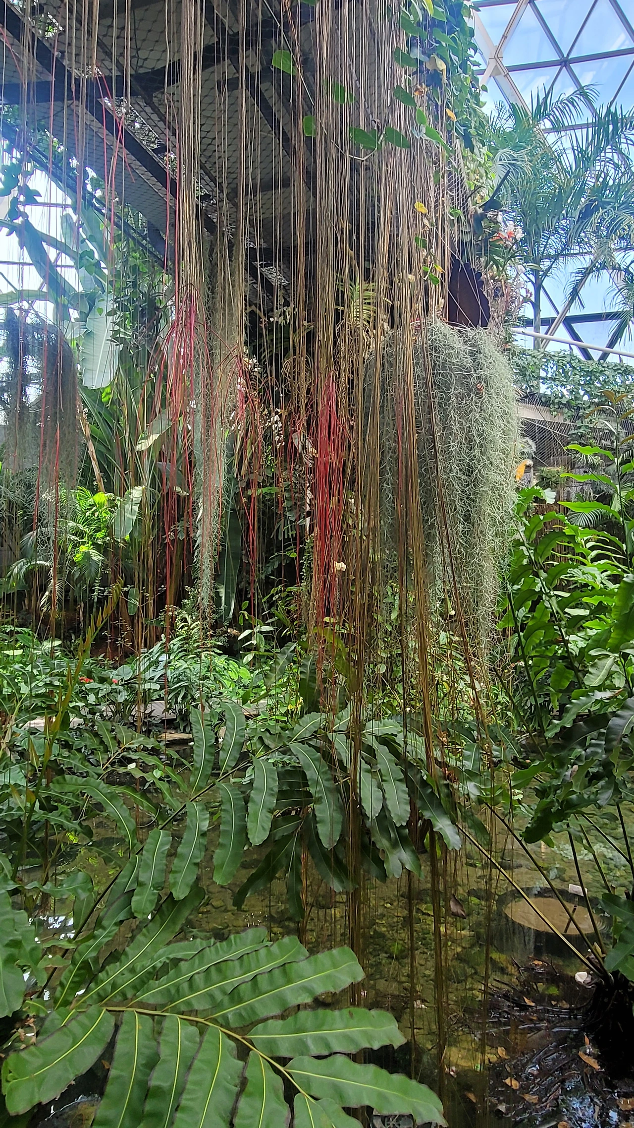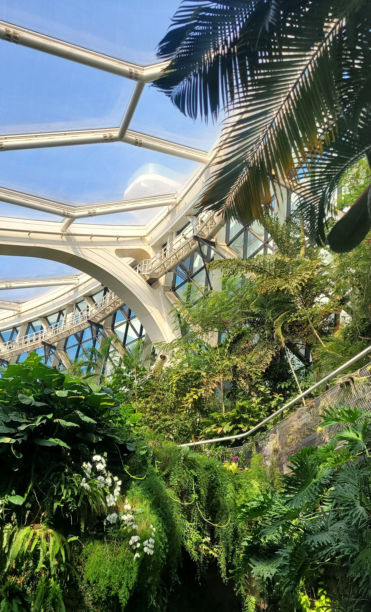 층고가 높은 식물원에는 꼭대기까지 키 큰 식물이 자란다. 열대우림에서 큰 나무들의 키는 50미터를 훌쩍 넘는다. 그러니 식물원의 높이로는 수용하기 쉽지 않을 것 같다. 2층에 통로를 설치해서 올라가 큰 나무들을 관찰할 수 있다. 하지만 높은 습도와 고온은 참아야 한다. 올라가서는 빽빽한 밀림에 들어선 기분을 조금이나마 맛볼 수 있었다.