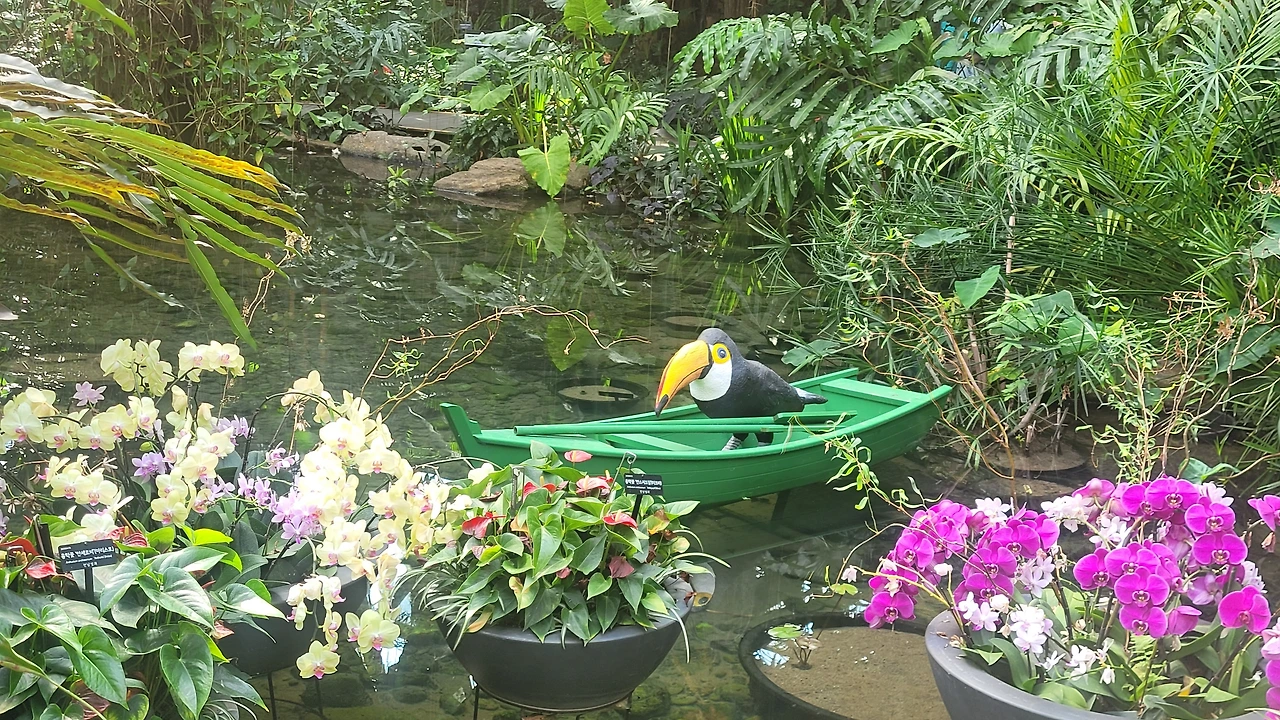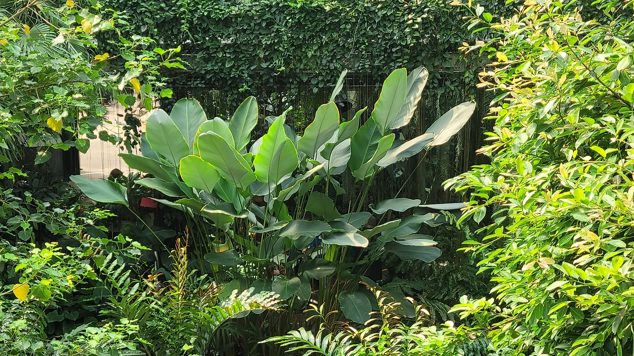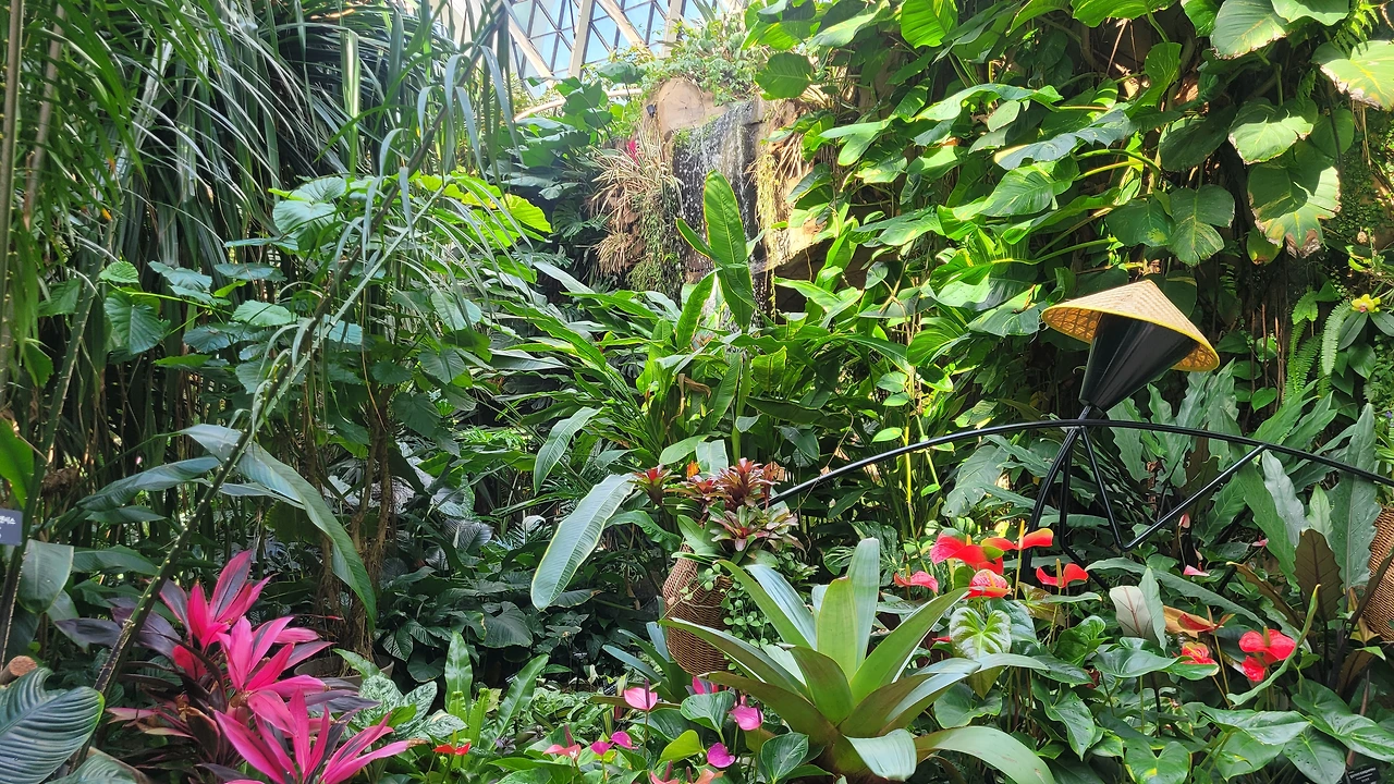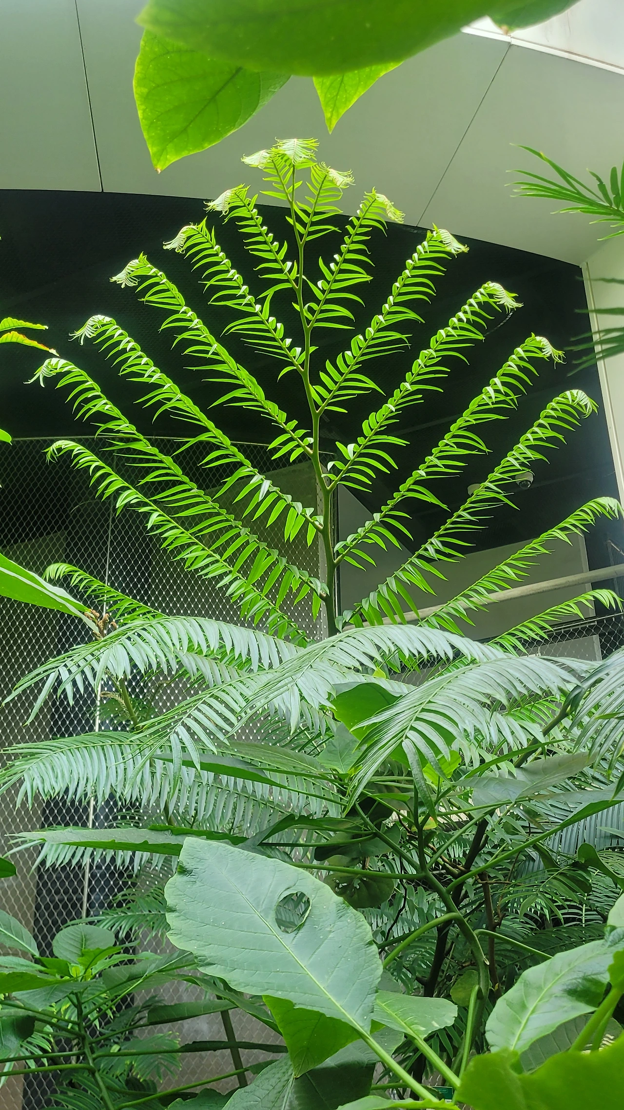 층고가 높은 식물원에는 꼭대기까지 키 큰 식물이 자란다. 열대우림에서 큰 나무들의 키는 50미터를 훌쩍 넘는다. 그러니 식물원의 높이로는 수용하기 쉽지 않을 것 같다. 2층에 통로를 설치해서 올라가 큰 나무들을 관찰할 수 있다. 하지만 높은 습도와 고온은 참아야 한다. 올라가서는 빽빽한 밀림에 들어선 기분을 조금이나마 맛볼 수 있었다.