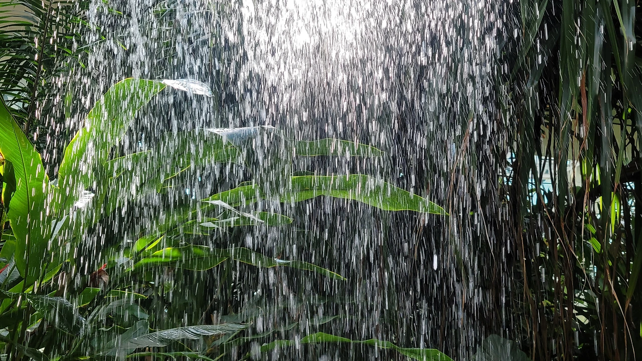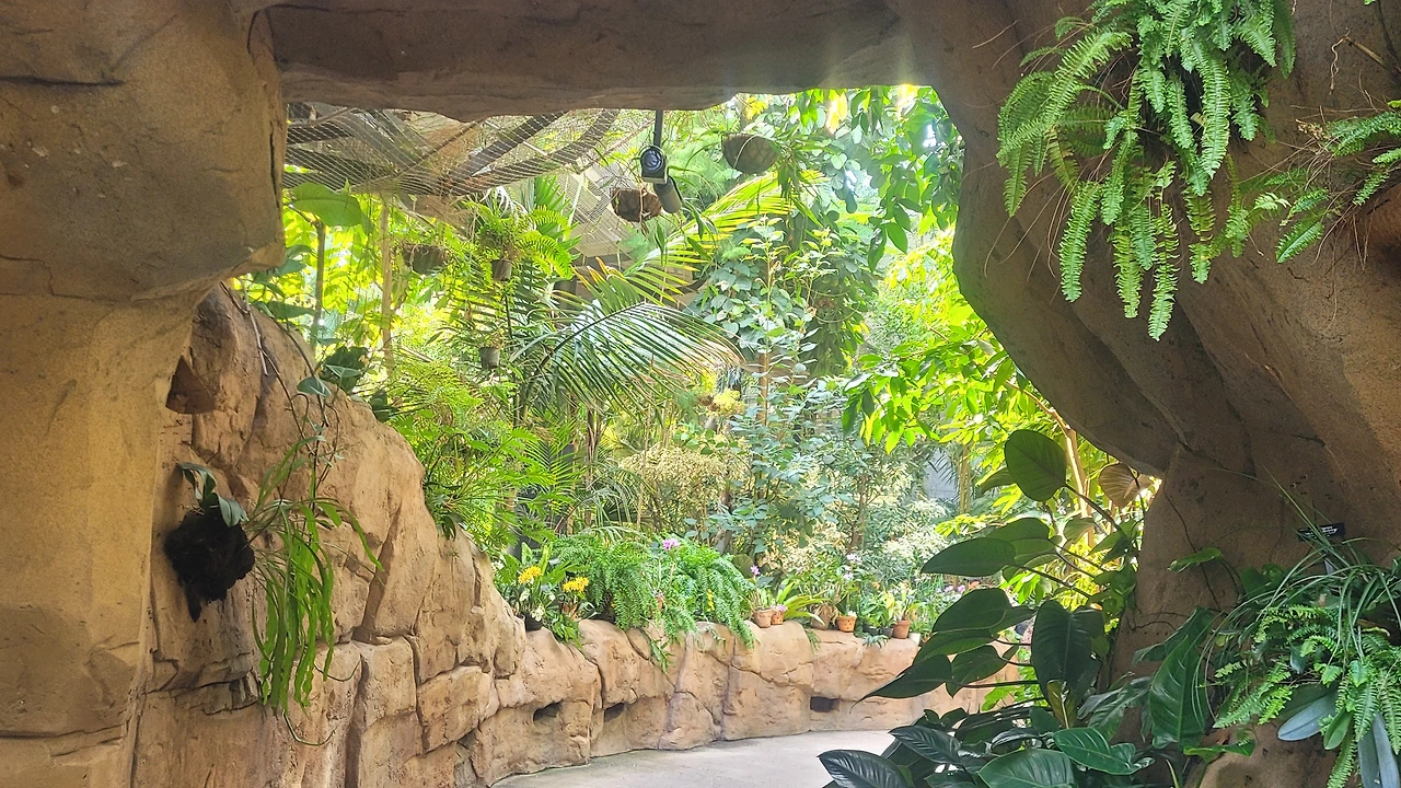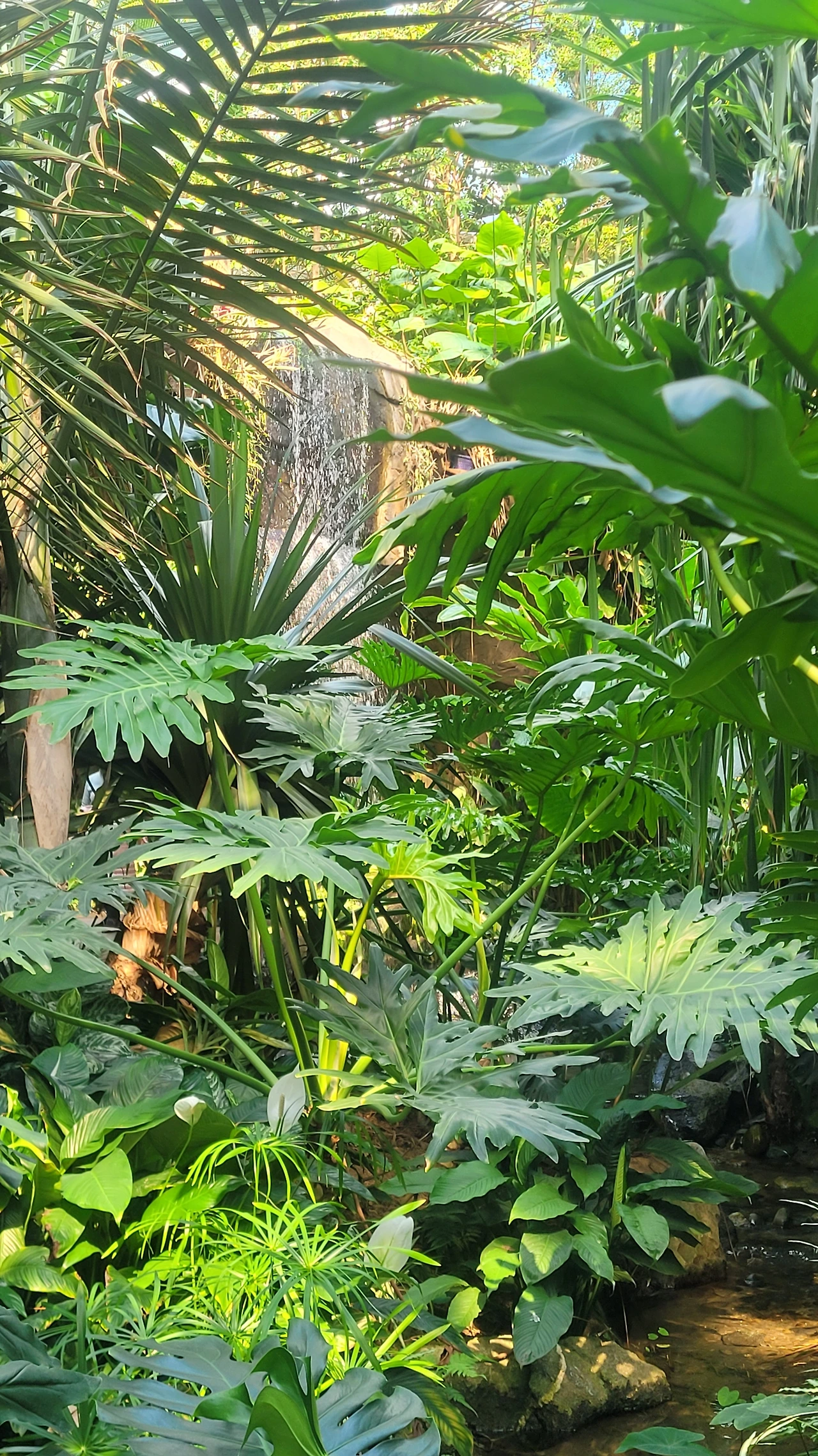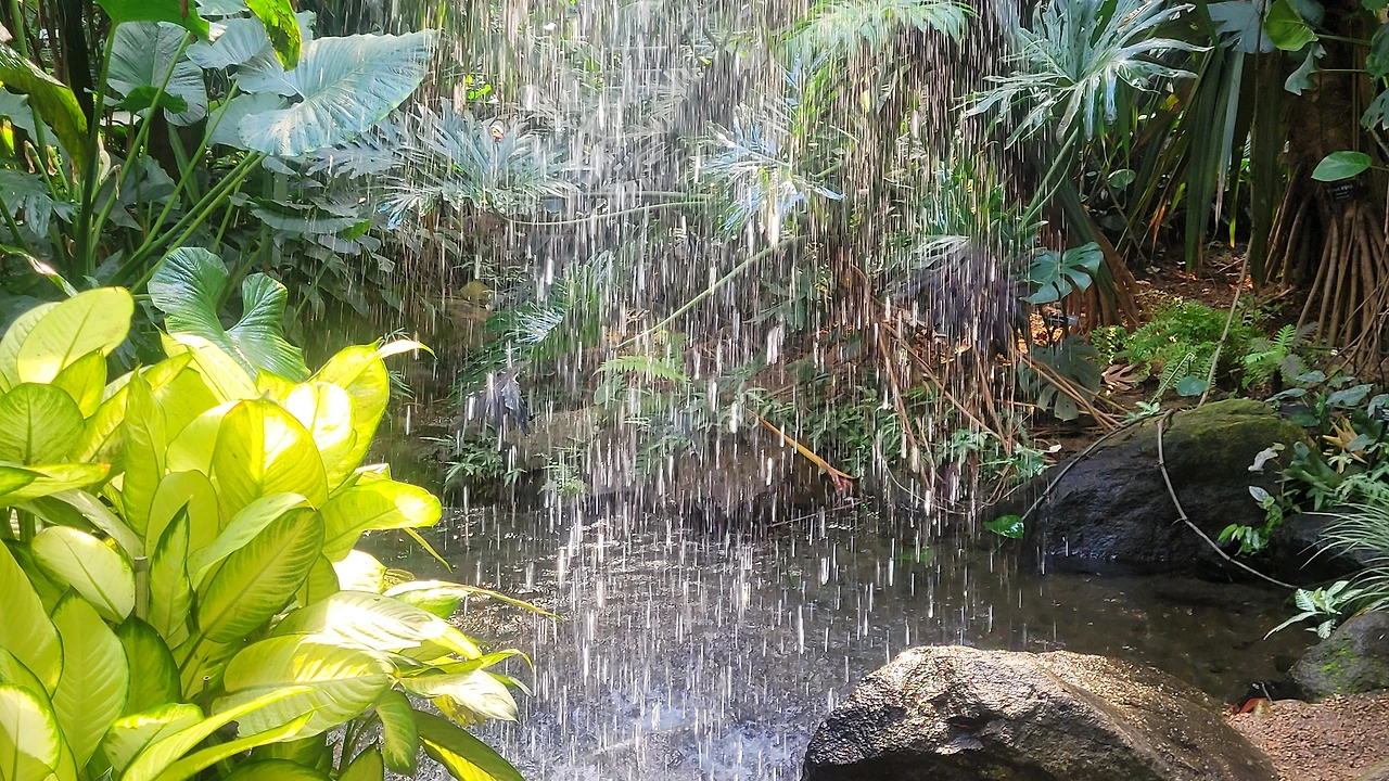 안으로 들어가면 초록식물이 뒤덮인 동굴에 물줄기가 쏟아지고 있다. 사철 고온다습한 환경을 조성하기 위함이다. 햇살에 비쳐 반짝이는 물줄기의 물방울들이 신비롭게 빛난다. 그 광경에 어린아이 같은 기쁨이 인다.