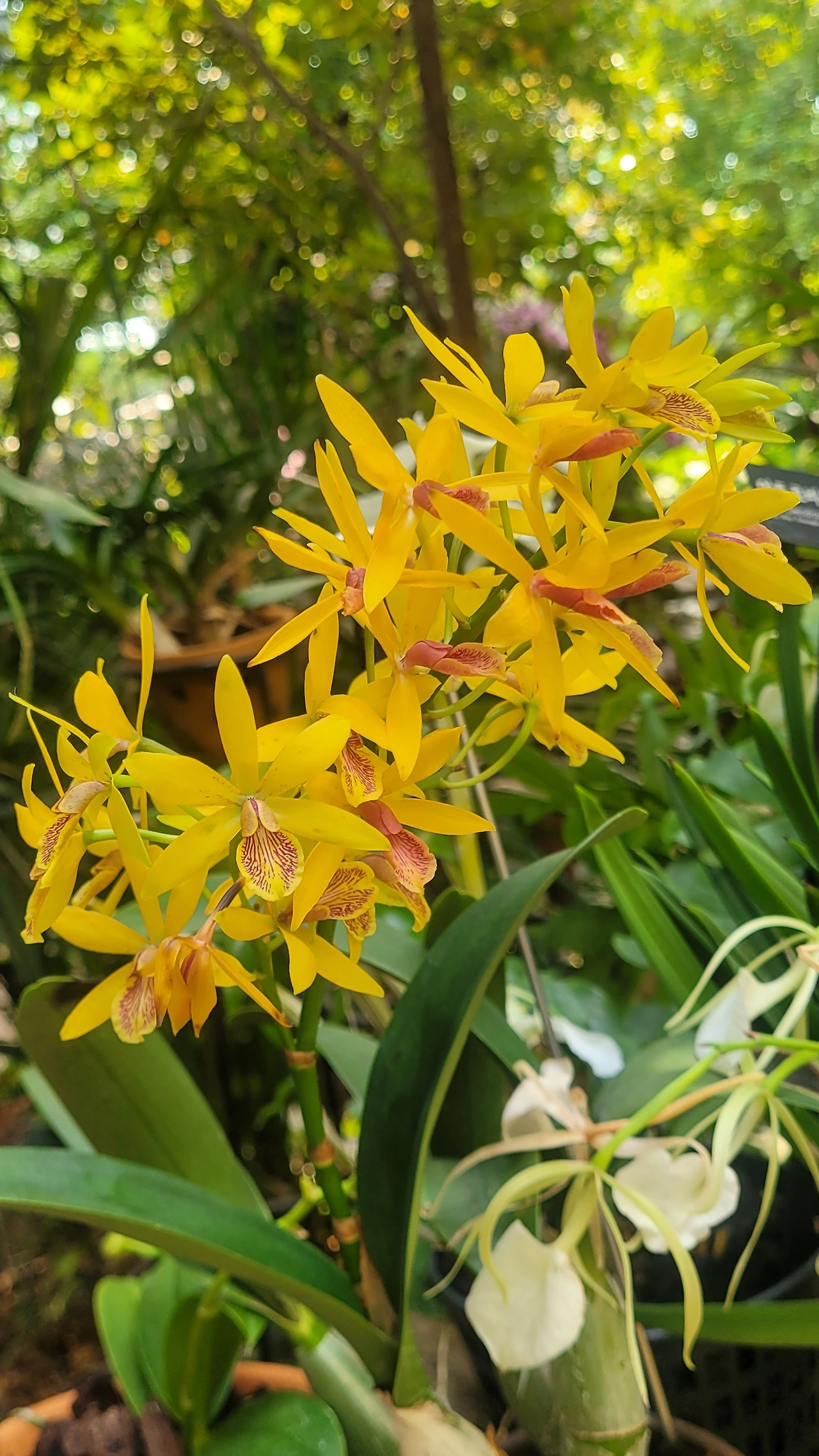 초입에 양란들이 반갑게 사람들을 맞는다. 다양한 호접란 꽃들이 마치 축제인 양 혼신의 꽃을 피워 저마다 미색을 뽐내고 있다. 다채로운 밝은 색의 꽃들이 푸른 잎들을 배경으로 그림 같은 풍경을 빚어서 보는 이들은 감탄의 연속이다.