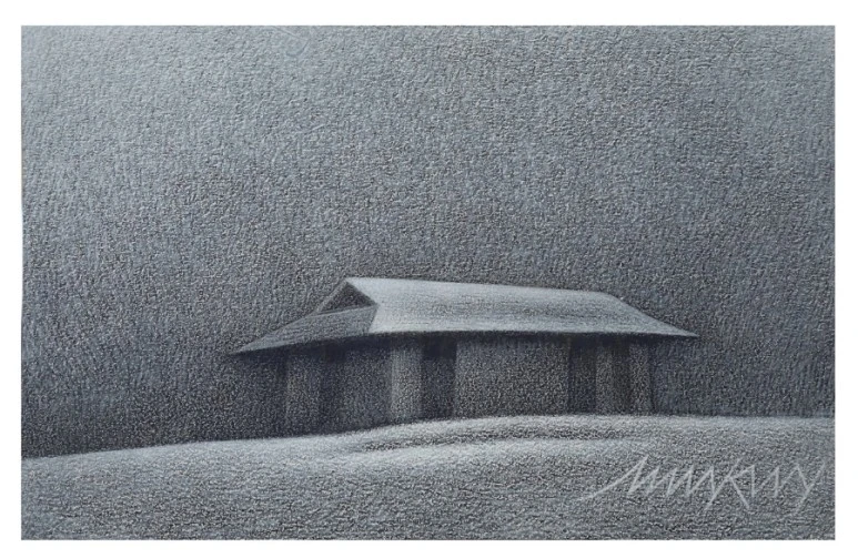 오두막이 그림의 소재로 등장하는 데 작가님의 유년 시절의 마음속 풍경이라고 하셨다. 외로워 보이기도 하지만 아스라한 추억처럼 몽환적인 분위기도 풍긴다.