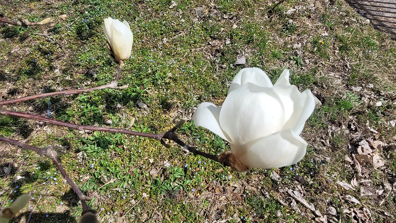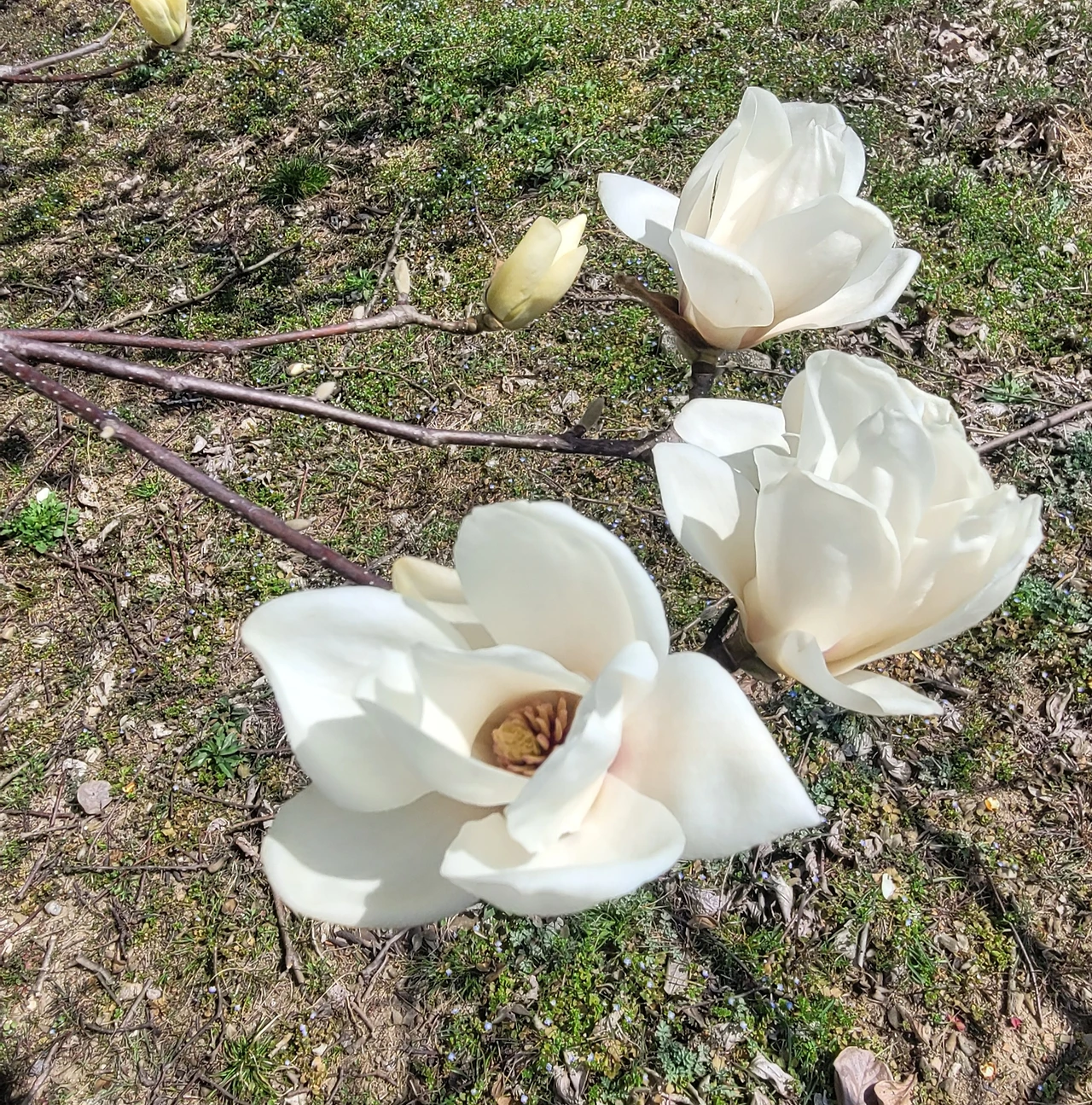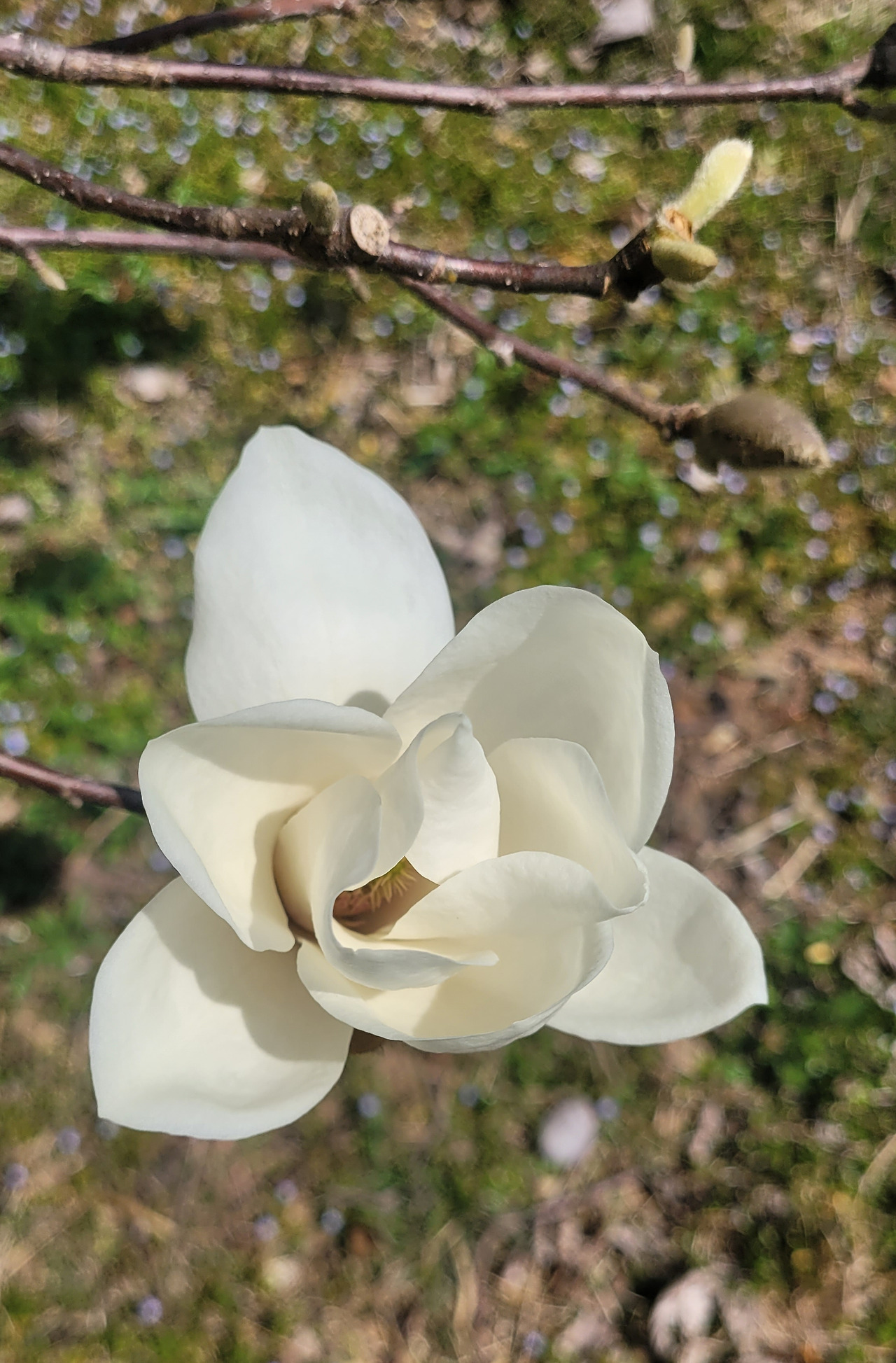 놀랍게도 목련은 오랜 역사를 지닌 화석식물이다. 최초의 꽃 중 하나다. 일억 사천만 년 전에 화석으로 발견되었다. 그 시기에는 벌과 나비가 출현 전으로 꽃에 꿀샘이 없다. 그래서 수분을 위해 꽃가루를 먹는 딱정벌레를 유인한다. 암술과 수술이 딱딱한 이유다. 목련 중에는 유달리 향이 강하고 멀리 퍼지는 나무가 있다.