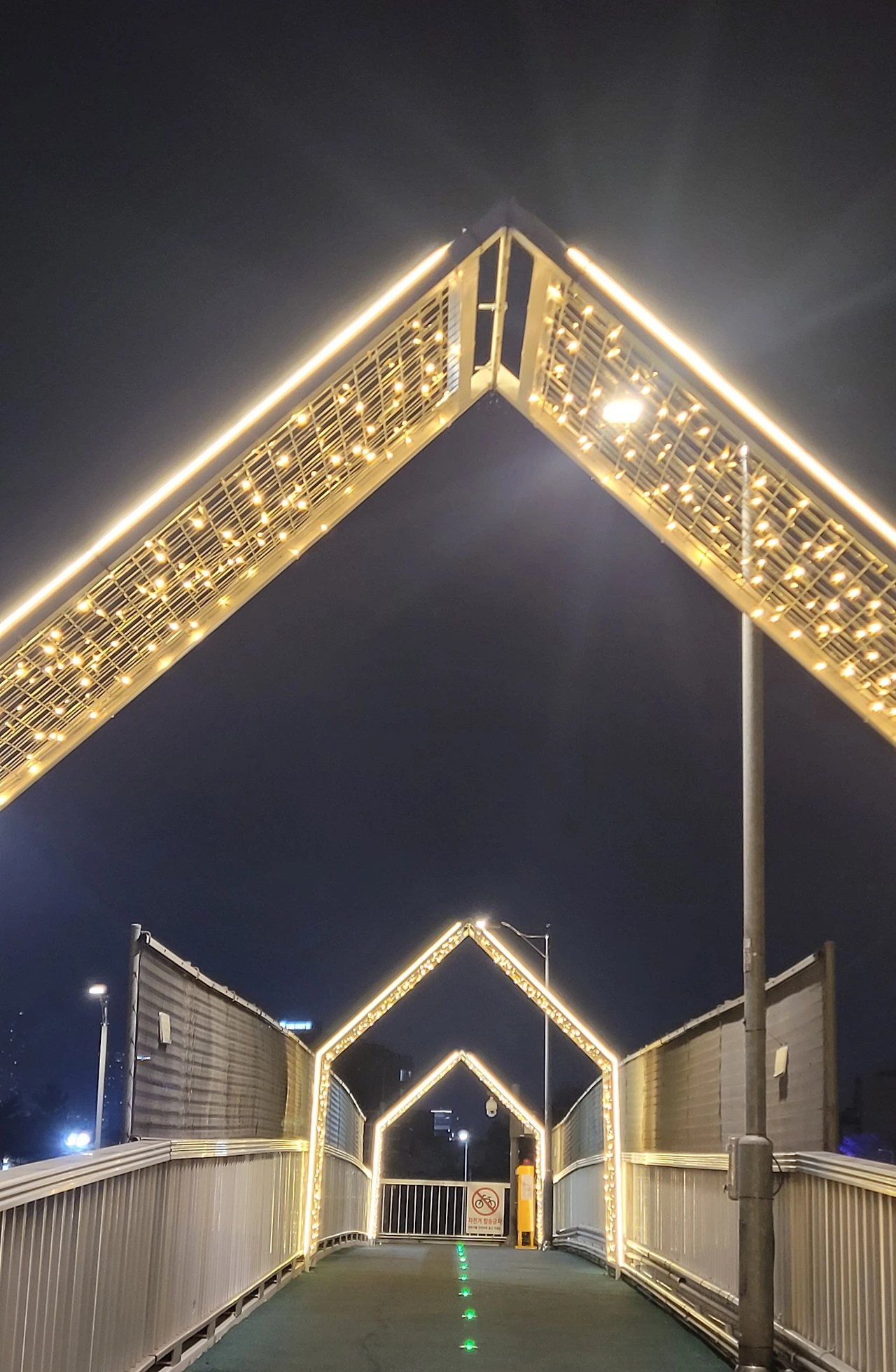 중간에 쉼터가 마련되어 있어 간단한 간식을 들 수 있다. 아내를 기다리며 치즈아이스크림을 먹었는데 달콤하고 고소한 맛이 아주 그만이다. 아내를 만나 김밥과 떡을 먹으며 소풍 기분을 낸다. 딸아이도 합류하여 봄밤을 만끽하는 시간이 흐른다.