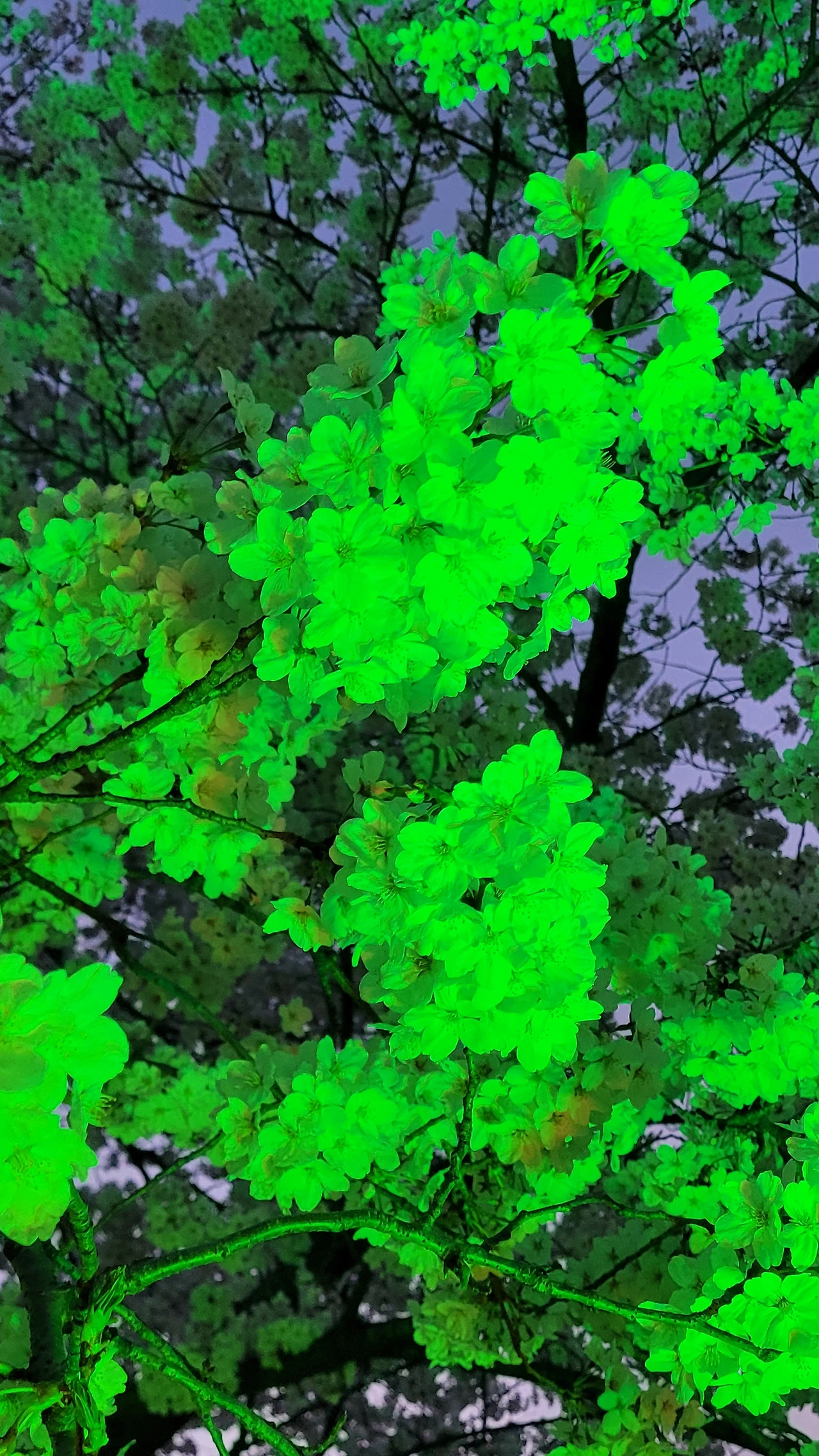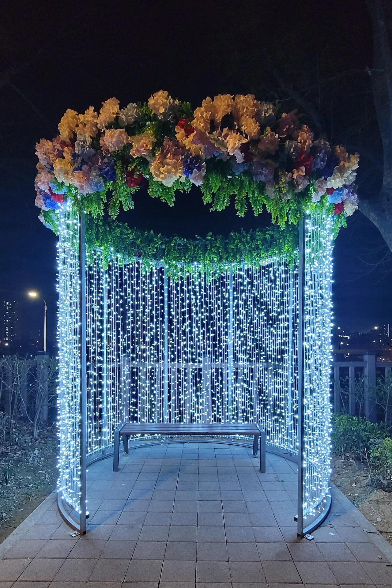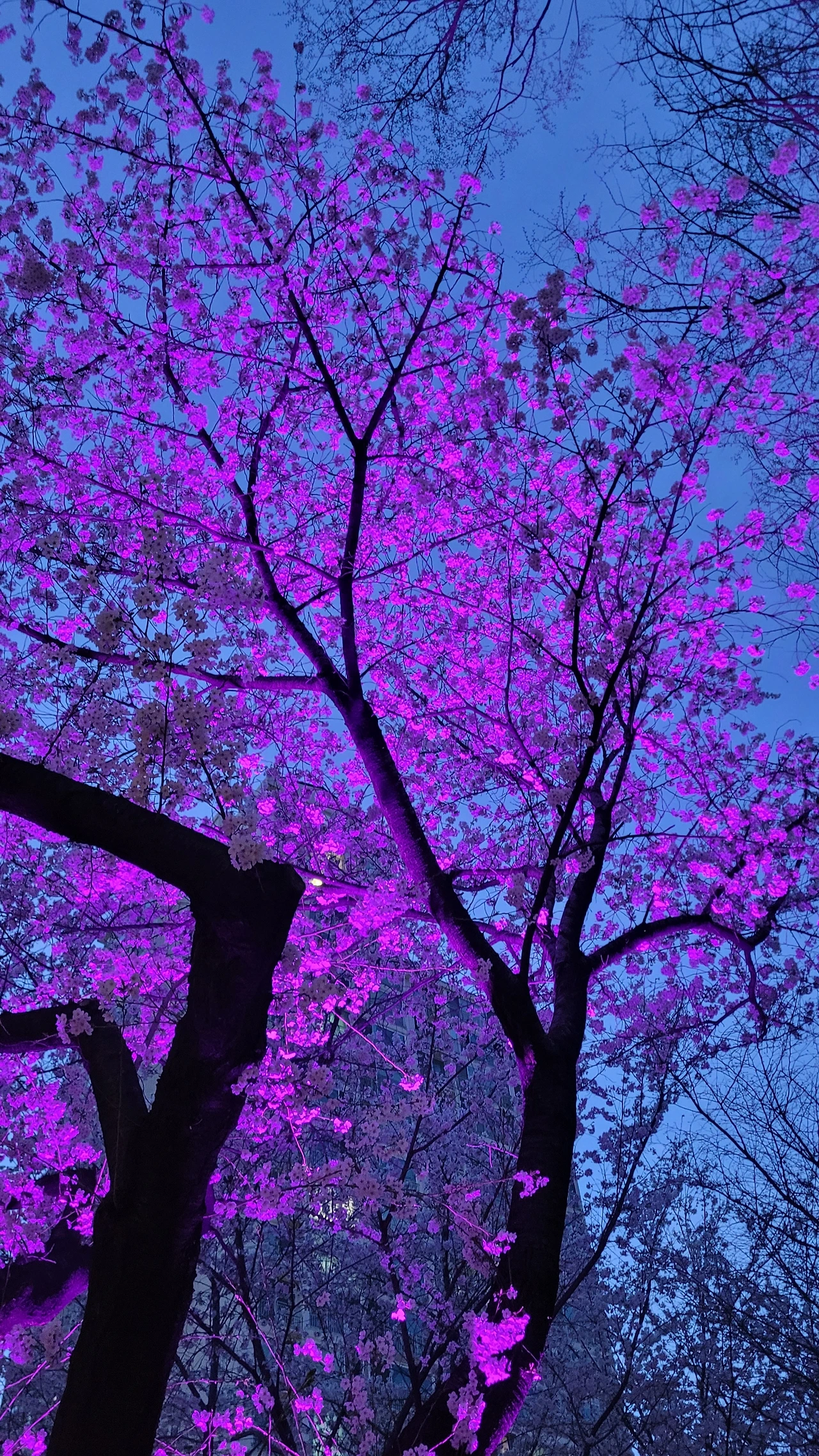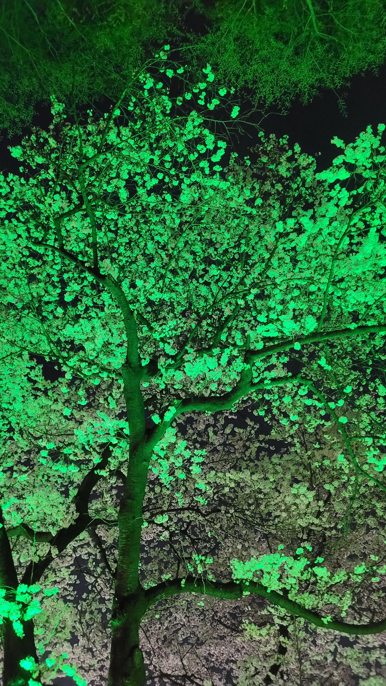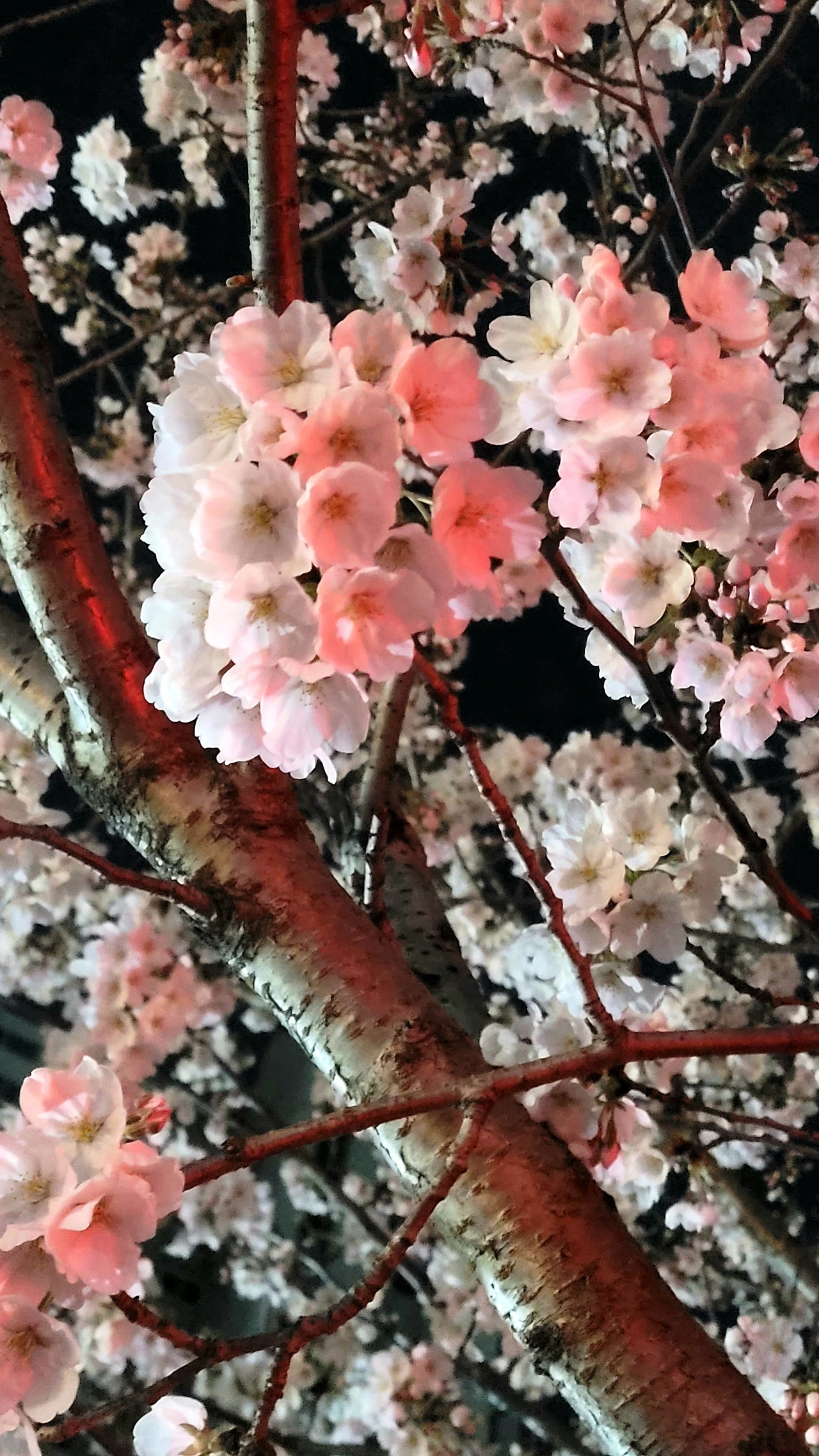 밤거리에서 만나는 벚꽃은 낮과는 다른 흥취가 있다. 낮에는 밝게 빛나는 풋풋한 청춘이라면 저녁은 깊이를 지닌 성숙함이 있다. 특히 조명에 따라 꽃빛이 달라져 신비로운 분위기를 연출한다. 붉은빛, 푸른빛을 받은 꽃들은 현실을 벗어난 환상의 세계다.
