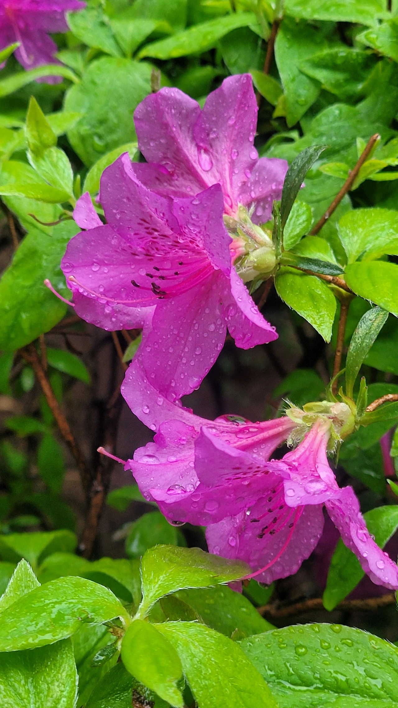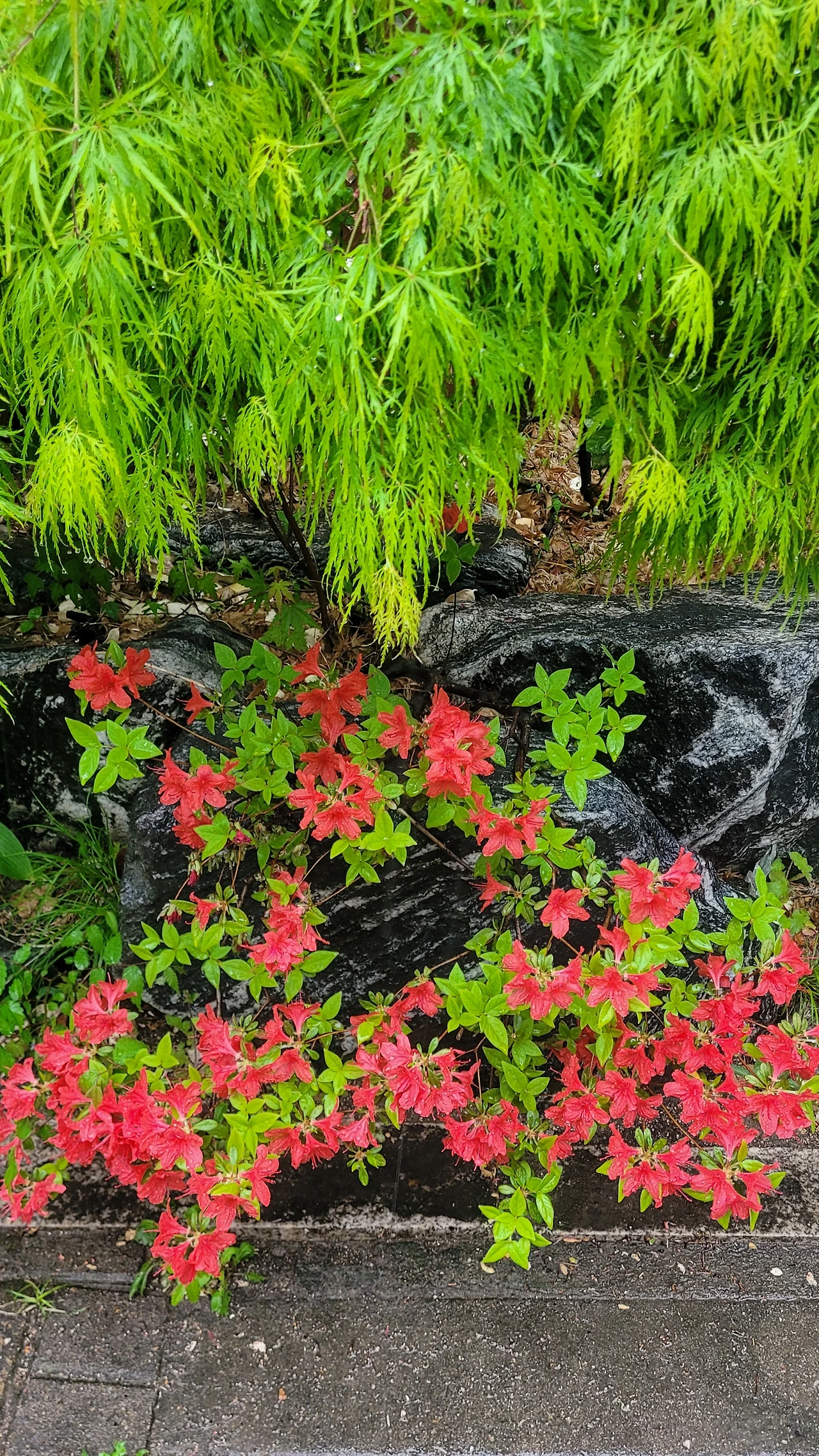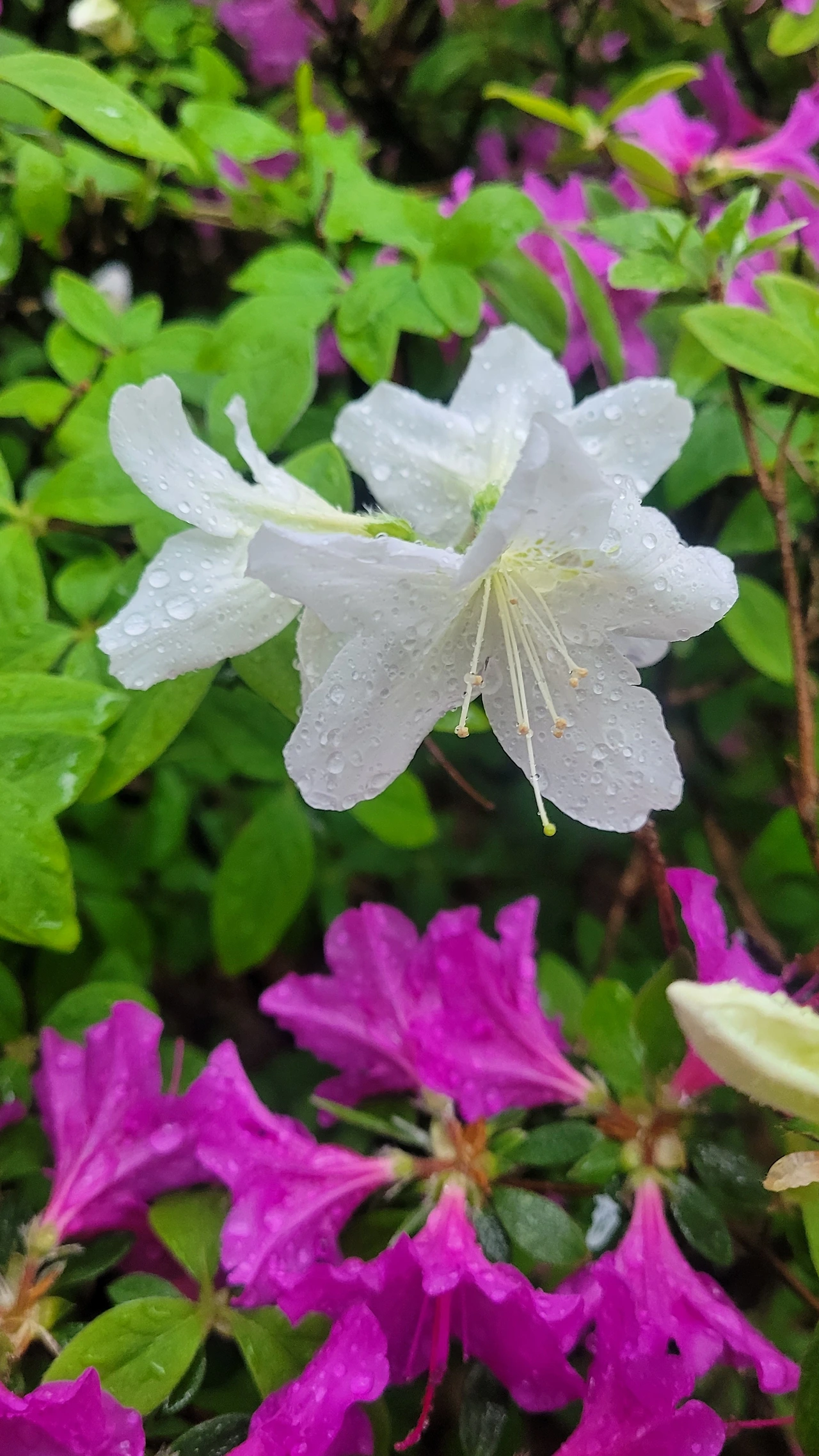적지 않은 무게로 봄비가 내리는 날이다. 거의 여름날같이 치솟은 전날의 고온을 식히려는 듯 비가 온다. 우산을 쓰고 걷는 하늘은 잔뜩 흐려 우중충하다. 하지만 주변은 전혀 딴 세상이다. 봄비가 반갑고 즐거운 나무와 꽃들은 생기가 넘친다. 그 들뜬 분위기가 주위를 물들여 환하다. 초록빛으로 성장한 나무들과 한창 피고 있는 철쭉의 빛깔이 선명하게 빛나는 까닭이다. 비 오는 날은 흐린 날이라는 사고는 꼭 들어맞지 않다는 것을 체감하는 순간이다.