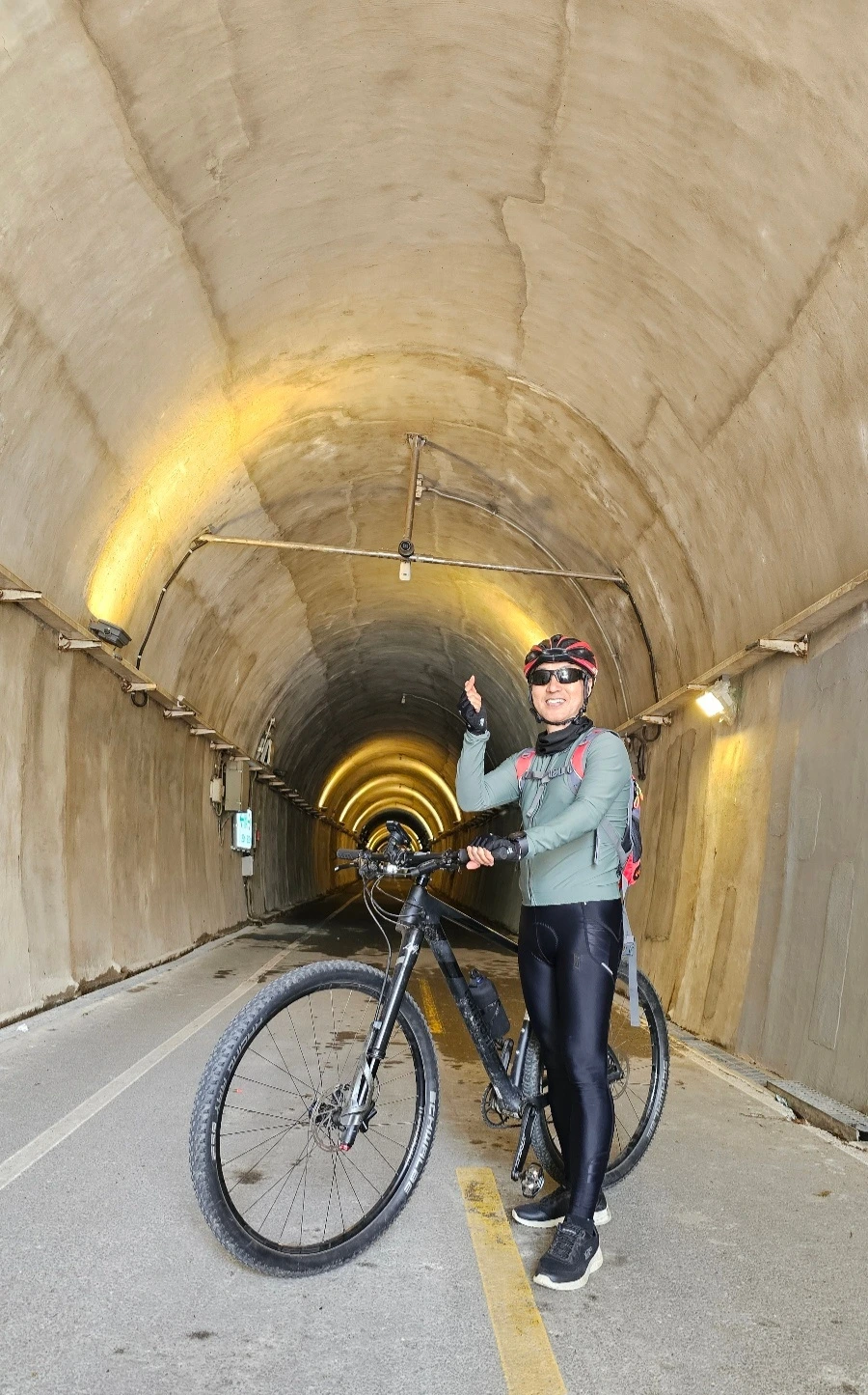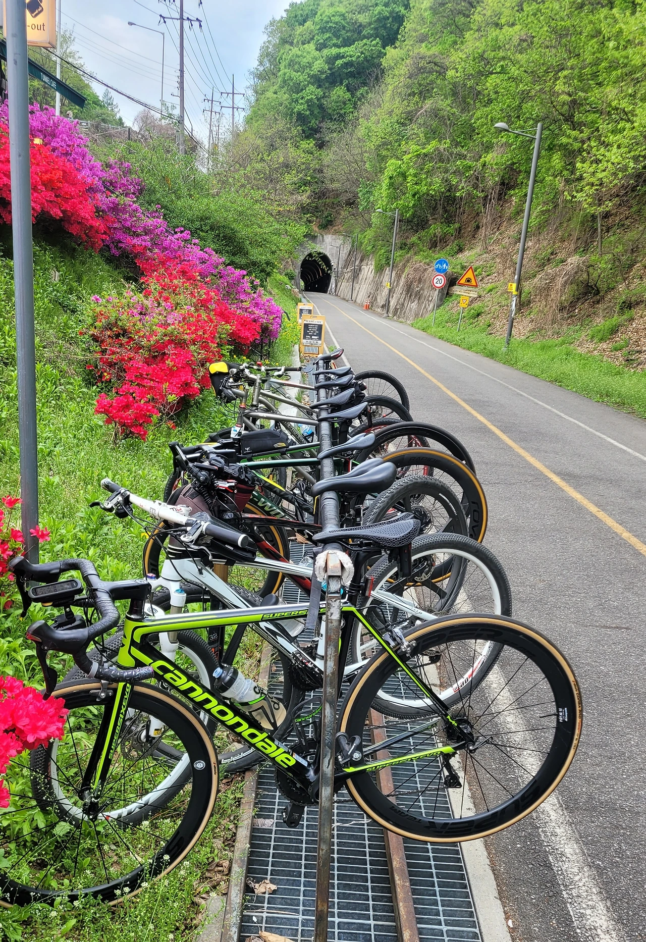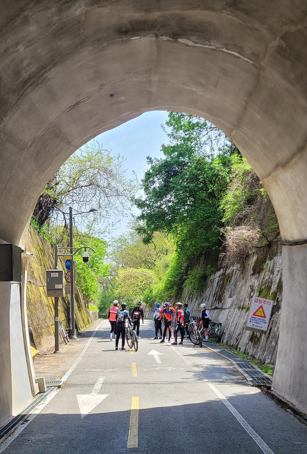 13명이 함께했는 데, 연배도 대부분 많은 분들인데도 속도가 장난이 아니다. 나도 평소에 계단 오르기와 스쾃을 꾸준히 하고 있어서 자전거는 웬만큼 탄다고 자부하고 있었는데, 이건 명함도 못 내미는 수준이었다. 오르막에 낑낑대며 힘겹게 올라가는 나와는 다르게 다른 이들은 평지보다 더 빠르게 달린다. 그 뒤를 쫓아 따라가려니 토가 나올 정도였다. 제발 좀 쉬었다 가면 좋으련만 멈춤이 없다.