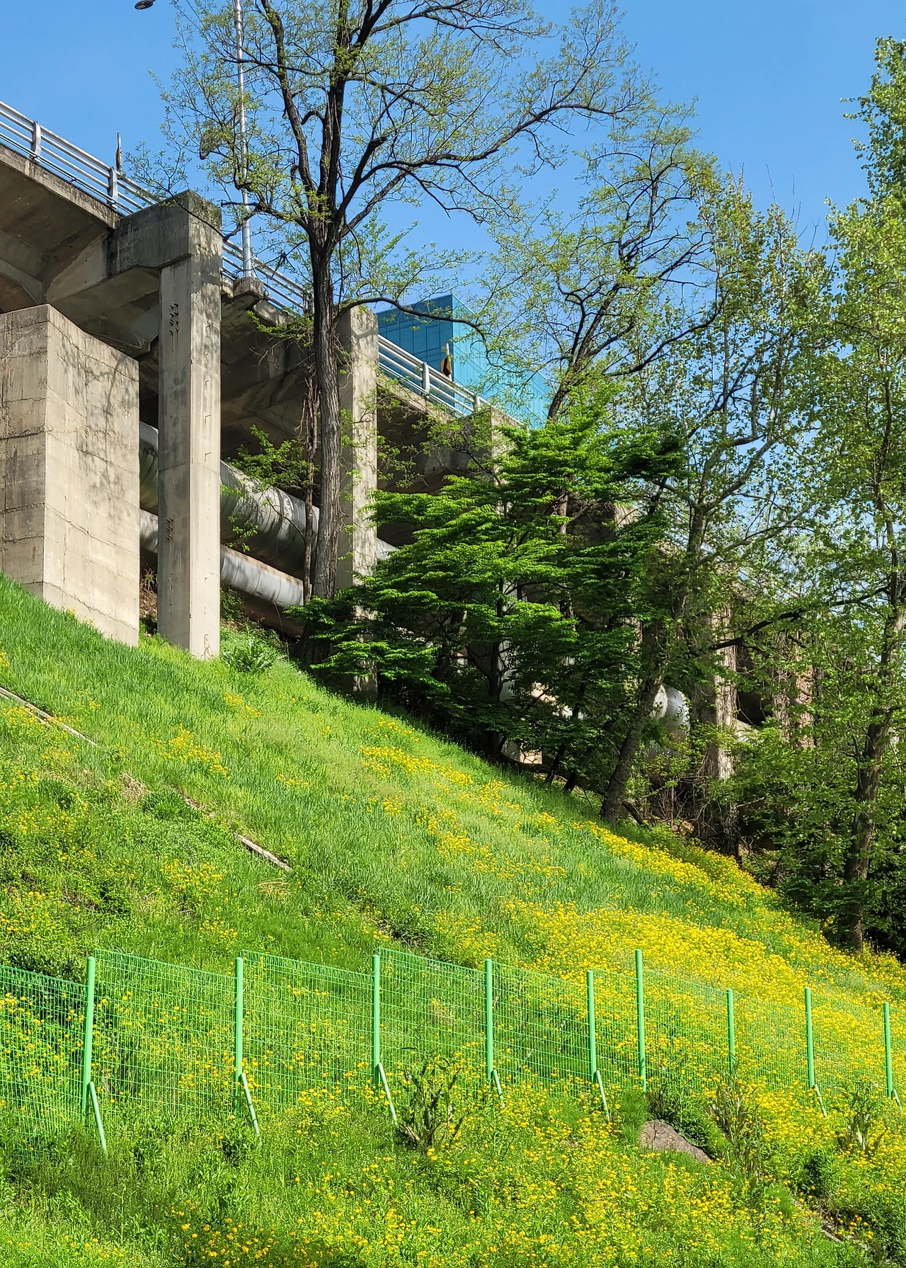 한걸음에 내달린 용비휴게소는 응봉산 아래였다. 20분 만에 주파를 한 셈이다. 왼쪽으로 가면 뚝섬방향이고 오른쪽은 잠실로 가는 길일 것 같아서 라이딩하는 분들에게 물었다. 오른쪽으로 가면 엄청 도는 길이란다. 길치는 항상 틀린 길을 선택하곤 한다. 내 생각대로 갔다면 큰일 날 뻔했다. 잠실철교까지 쭈욱 달리면 된다고 해서 다시 힘을 내서 내달렸다.