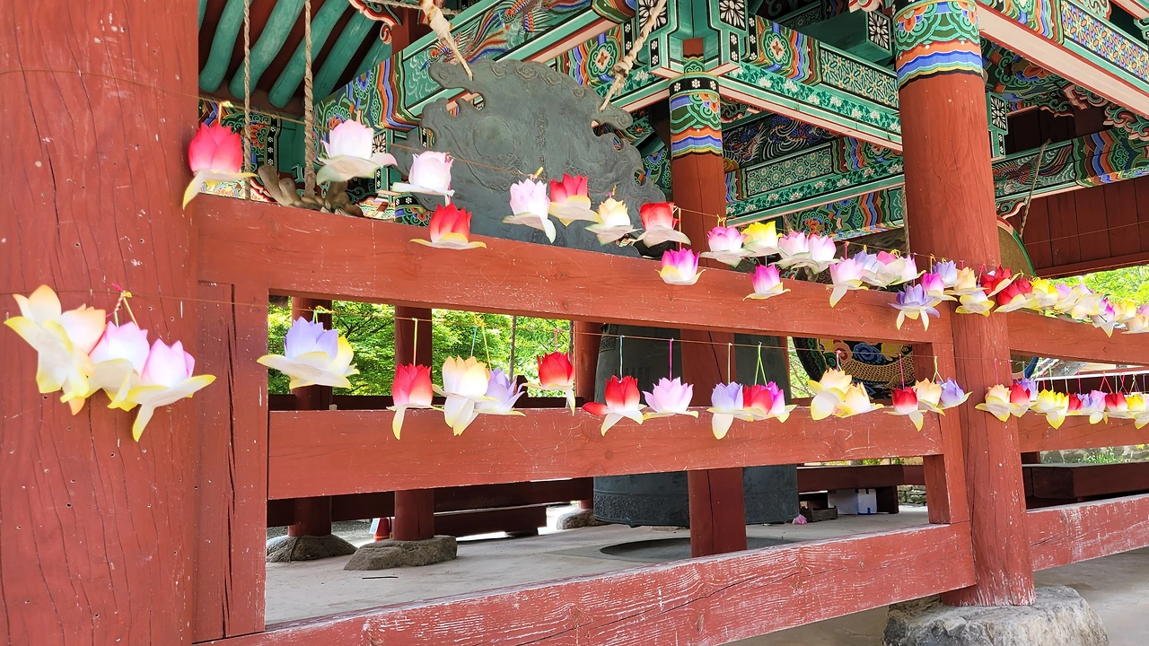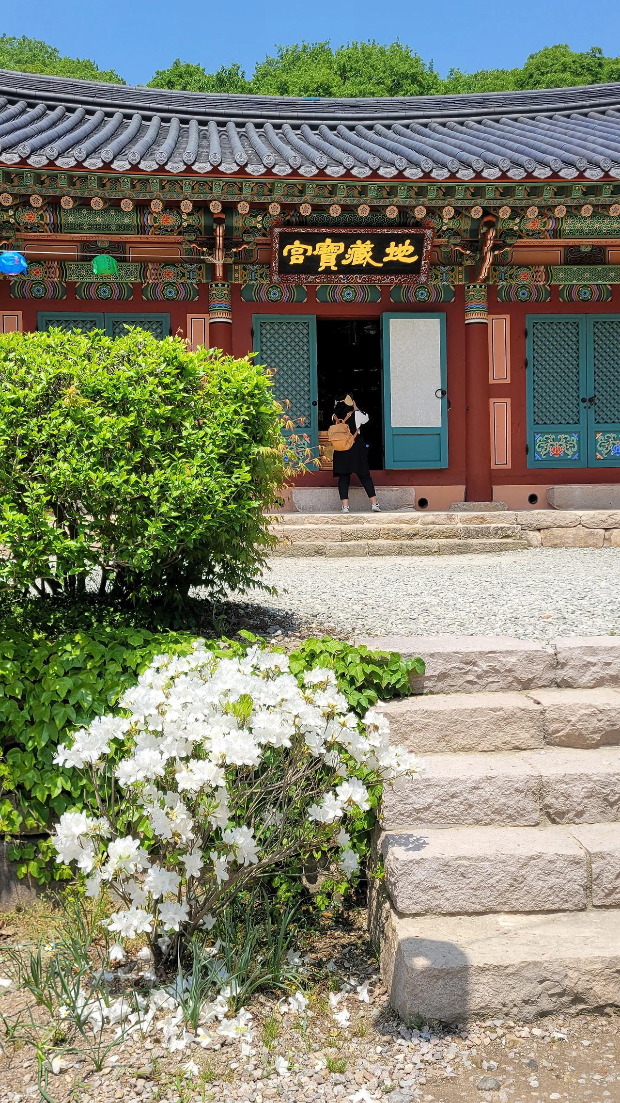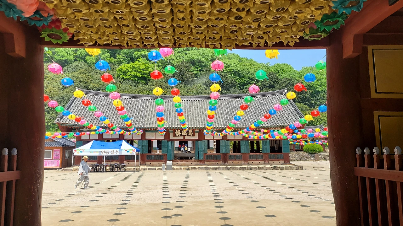 절은 산문부터 빼어난 풍광이다. 고목들이 줄지어 있고 길 옆에는 꽤 넓은 개울이 흐르는 오솔길은 걷기에 그만이다. 초파일이 가까워 알록달록한 연등이 걸려있어 푸른 숲과 아름다운 대비를 이룬다. 물에 비친 홍교와 연등이 특히 곱다. 부드러운 산봉우리를 이고 있는 가람은 원색의 연등이 걸려있지만 요란하지 않고 고즈넉한 분위기를 풍긴다. 전체적으로 주변 산세와 어울려 단아하다. 산철쭉이 지고 있어도 아직은 미색을 잃지 않아 긴꼬리제비나비가 찾아온다. 도난당했다가 꿈을 통해 다시 찾은 이야기를 지닌 지장보살이 흥미로워 사진에 담았다.