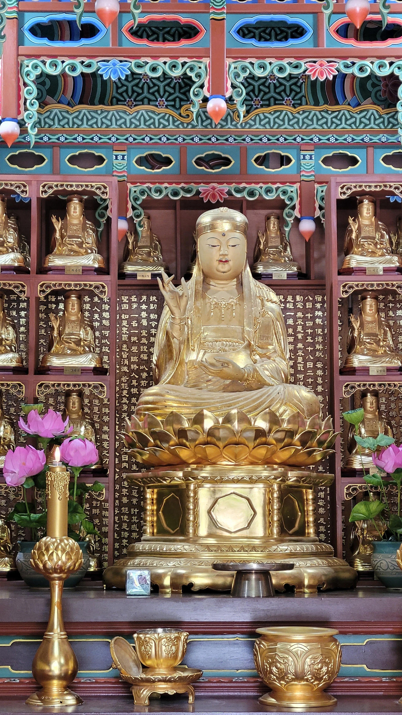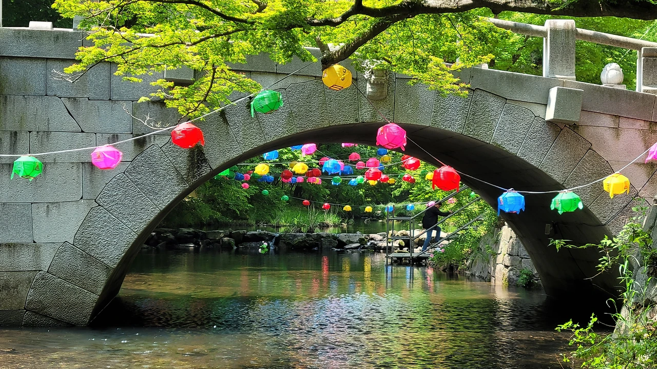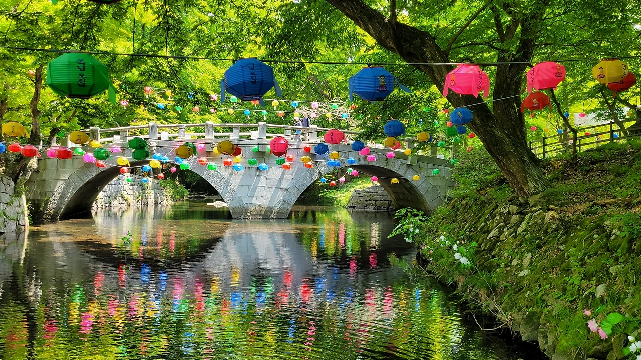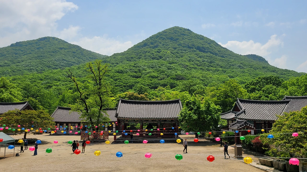절은 산문부터 빼어난 풍광이다. 고목들이 줄지어 있고 길 옆에는 꽤 넓은 개울이 흐르는 오솔길은 걷기에 그만이다. 초파일이 가까워 알록달록한 연등이 걸려있어 푸른 숲과 아름다운 대비를 이룬다. 물에 비친 홍교와 연등이 특히 곱다. 부드러운 산봉우리를 이고 있는 가람은 원색의 연등이 걸려있지만 요란하지 않고 고즈넉한 분위기를 풍긴다. 전체적으로 주변 산세와 어울려 단아하다. 산철쭉이 지고 있어도 아직은 미색을 잃지 않아 긴꼬리제비나비가 찾아온다. 도난당했다가 꿈을 통해 다시 찾은 이야기를 지닌 지장보살이 흥미로워 사진에 담았다.