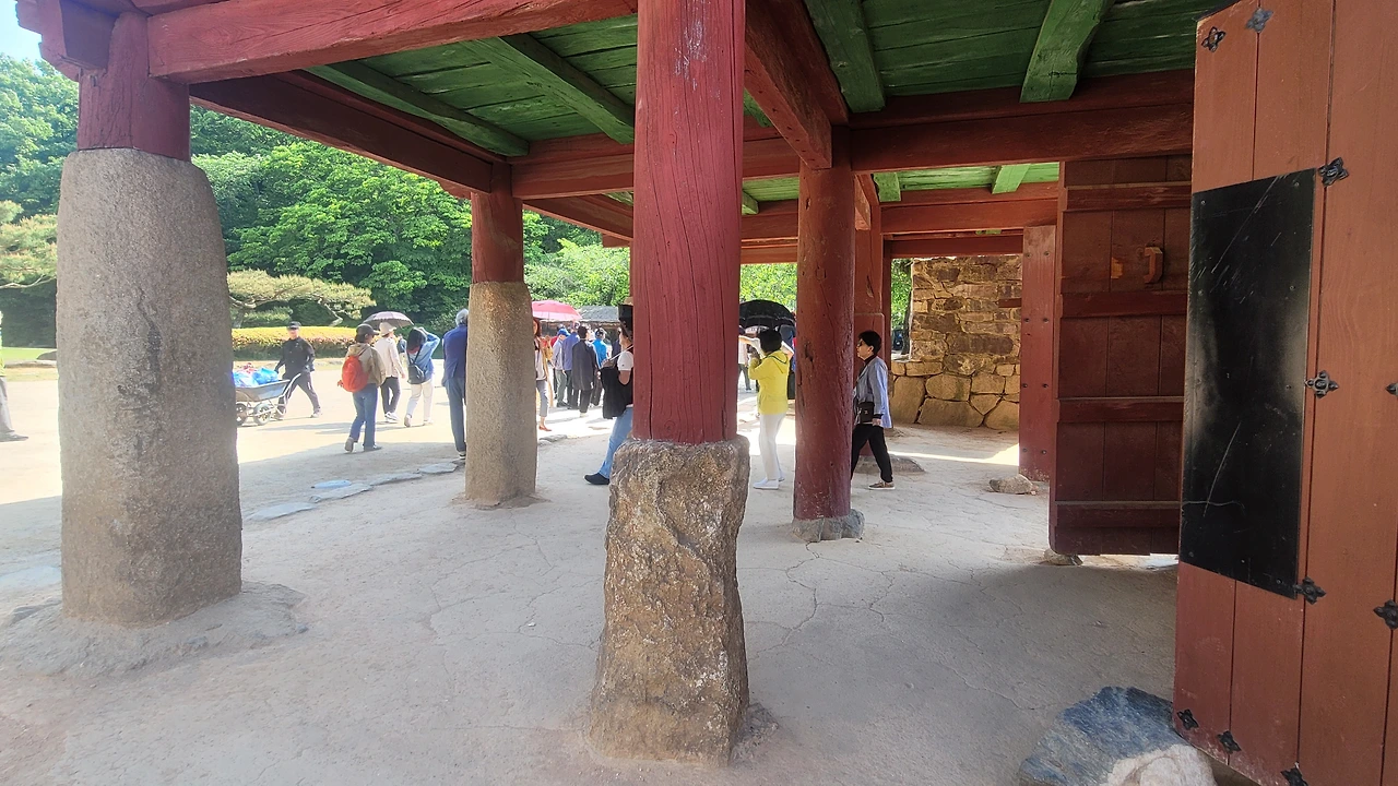 박물관 근처에 고창읍성이 있다. 고창읍성은 조선 초기에 호남의 여러 고을사람들이 왜적의 침입을 막기 위해 축성한 석성으로 돌레는 1,684미터다. 읍성으로는 거의 완전한 형태로 보존되었다. 고창읍성은 철옹성 같은 엄정한 분위기보다는 잘 정돈된 성채로 주변 경관과 잘 어울린다. 자로 잰듯한 반듯함이 없지만 돌을 있는 그대로 활용하여 성벽을 쌓았고 자연을 거스름 없이 산자락을 따라 조성되어 자연스럽다. 정문인 공북루는 2층 문루로 자연석 주춧돌을 사용하여 나무 기둥의 높낮이가 다르다. 읍성 안은 잔디가 조성되었고 수목들이 우거져 잘 단장된 공원이다. 원래 관아를 비롯 22개 건물이 있었던 이곳에는 복원된 일부 건물들이 숲 속에 깃들어 옛 정취를 자아낸다. 특히 풍화루 누각이 아름답다. 시간이 모자라 성곽을 다 돌지 못했지만 기억에 남을만한 아름다운 곳이었다.