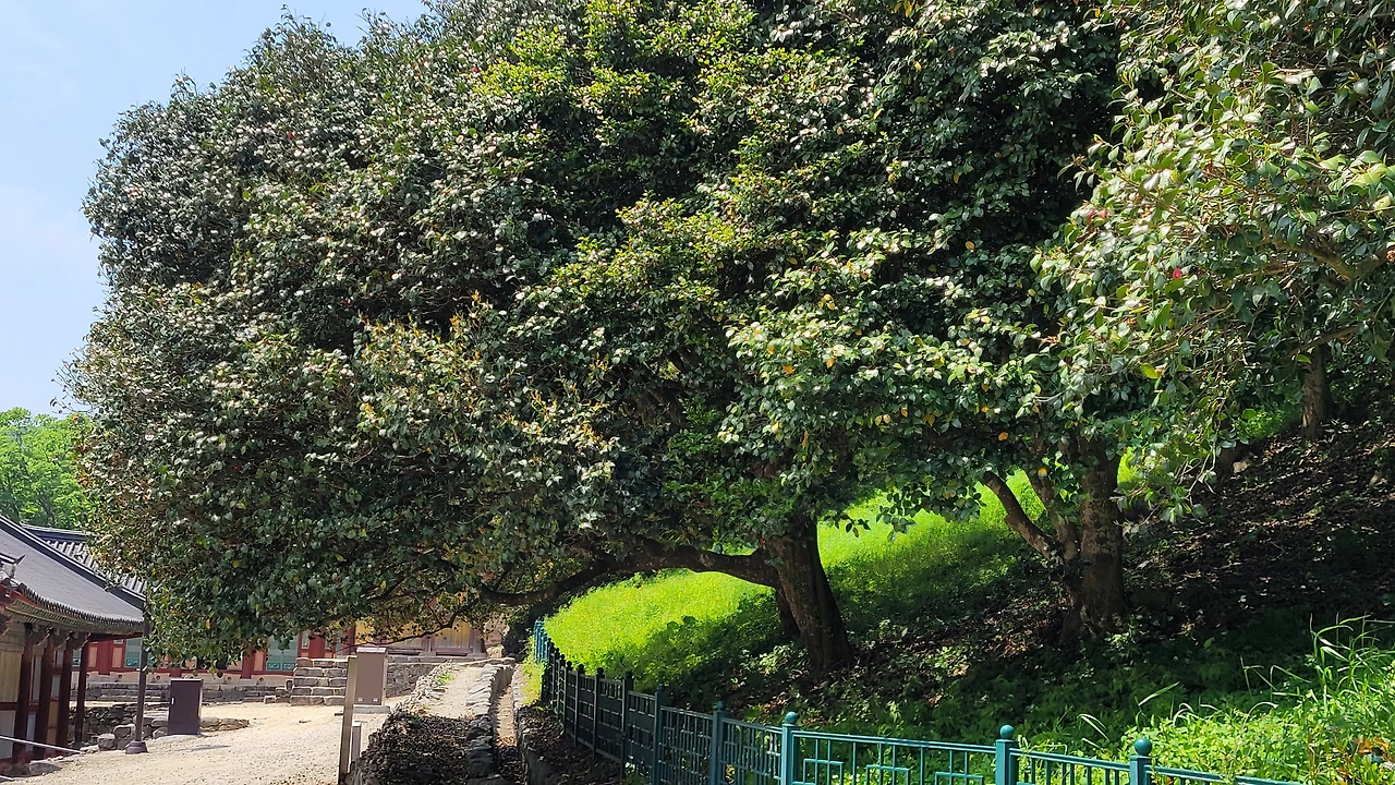 먼저 들러본 선운사는 백제 시대에 창건된 천 년 고찰로 동백나무숲이 특히 유명하다. 대웅전을 감싸고 있는 500년 수령의 동백나무 3천 그루의 숲은 천연기념물로 지정되었다. 꽃무릇도 볼거리다. 아쉽게도 동백꽃은 사월 중순이 절정으로 지금은 대부분 졌고 한 두 송이가 남아 있지만 오랜 연륜을 지닌 고목들은 그 자체가 감동이었다. 절 입구에도 천연기념물이 있다. 두릅나뭇과에 속하는 덩굴식물인 송악이다. 절벽을 뒤덮고 있는 송악의 위용도 장관이다. 이 송악은 높이가 무려 15미터나 되고 줄기의 굵기도 0.8미터에 이르는 크기로 수백 년의 수령으로 추정된다.