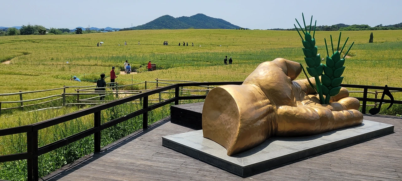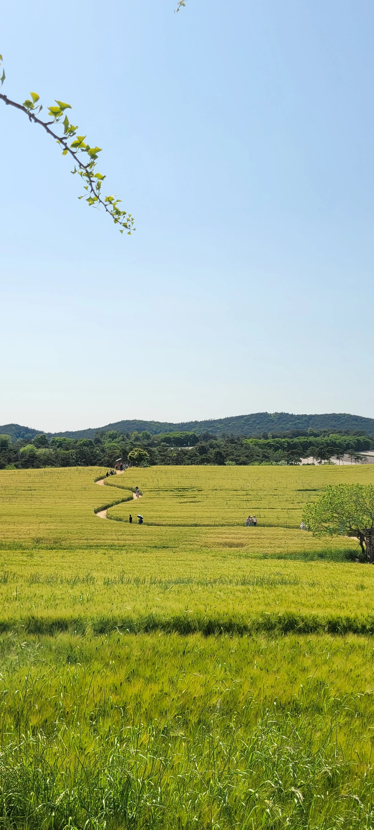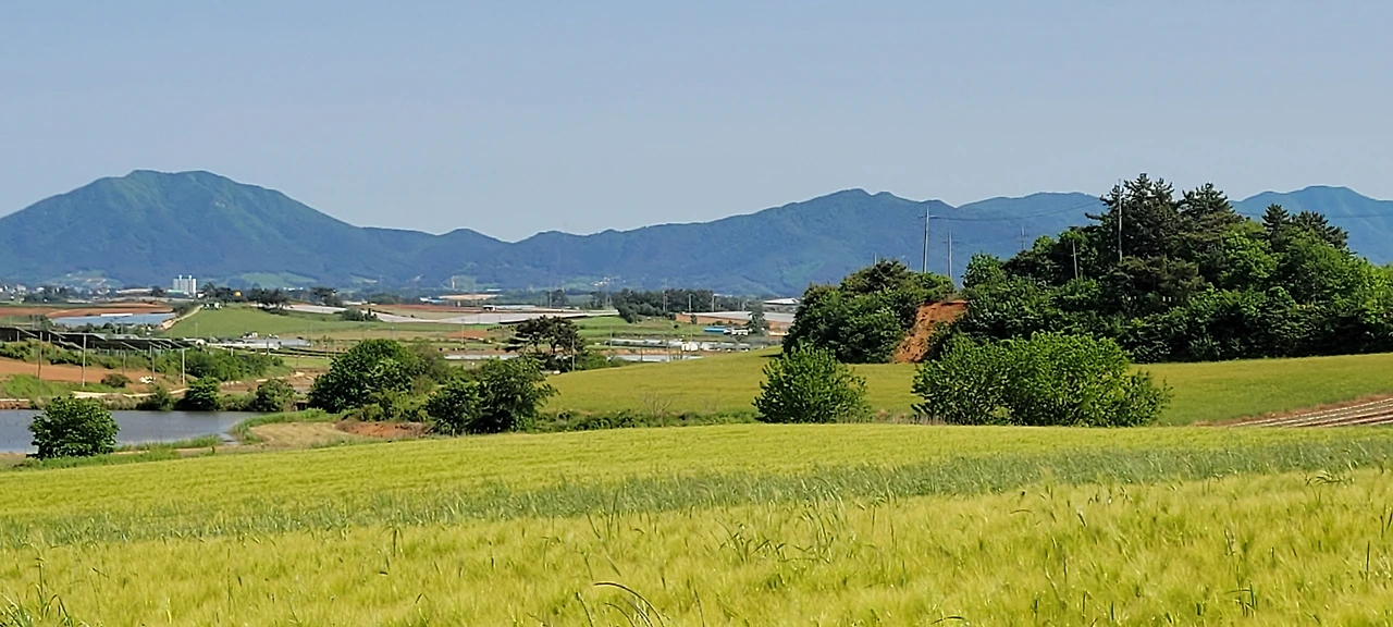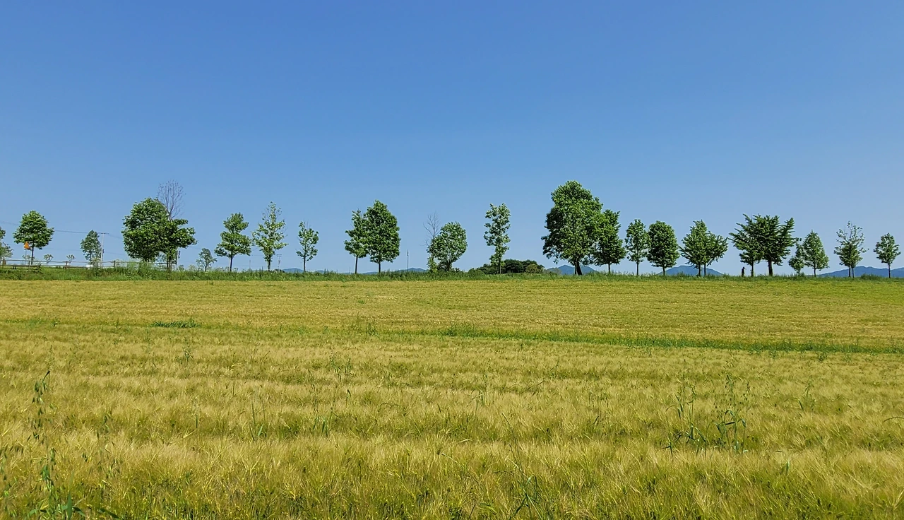 그렇다고 완전히 실망스럽지마는 않았다. 익어가는 보리밭도 나름 괜찮았다. 광활한 들판을 뒤덮은 보리는 볼거리가 분명했다. 우선 탁 트인 시야가 마음을 흔들었다. 예전에 프랑스에 갔을 때, 끝도 없이 이어진 너른 밭을 보고 놀란 기억이 있는데 이곳이 바로 그 풍경과 흡사했다. 도심에서는 고층빌딩으로시야가 제한되어 답답하다. 바다의 수평선은 아니더라도 지평선과 유사한 정경이 눈에 시원했다.