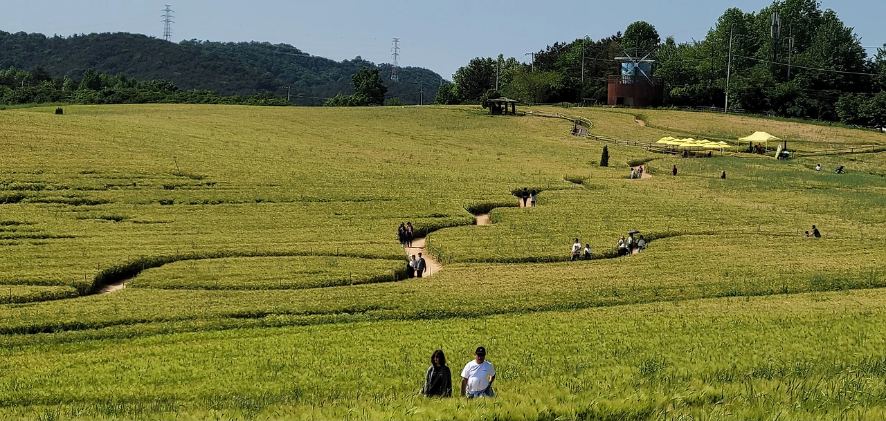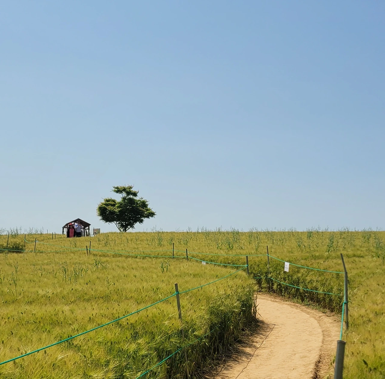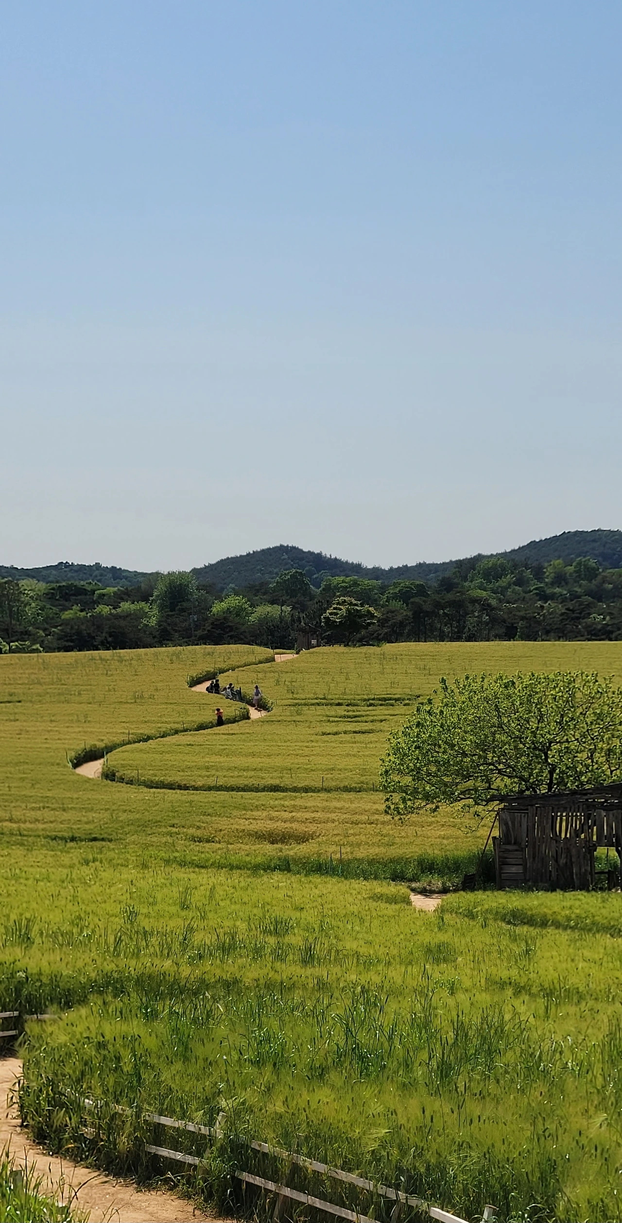드넓은 보리밭 사이를 걷는 낭만을 즐긴다. 구불구불 이어진 길이 정겹고 운치가 있다. 발걸음도 가볍고 마음도 가볍다. 햇살은 빛나고 하늘은 푸르니 지중해를 거니는 기분이다. 방문객들이 길 따라 걷는 모습도 그림 같다. 보리밭 중간에 오두막이 자리 잡고 있어 풍경이 단조롭지 않다. 보고만 있어도 근심이 모두 사라질 것 같은 전원의 평화로운 모습에 마음을 푼다. 사람들의 표정에도 가벼운 흥분이 담겼다. 추억이 저마다 옛이야기를 소환 중인가 보다.