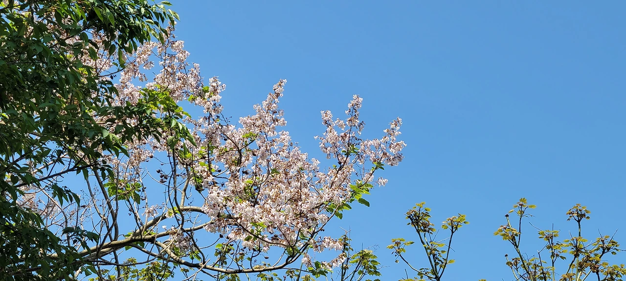 보리밭 초입에 벽오동이 서 있다. 새싹이 마치 꽃처럼 아름답다. 오월은 이곳저곳에 보석을 흩뿌려 놓았다. 주변 숲에는 튤립나무에 연노랑 백합이 피었고 오동나무에도 보랏빛 꽃이 한창이다. 열심히 보물찾기 하는 이들에게 주는 선물이다.
