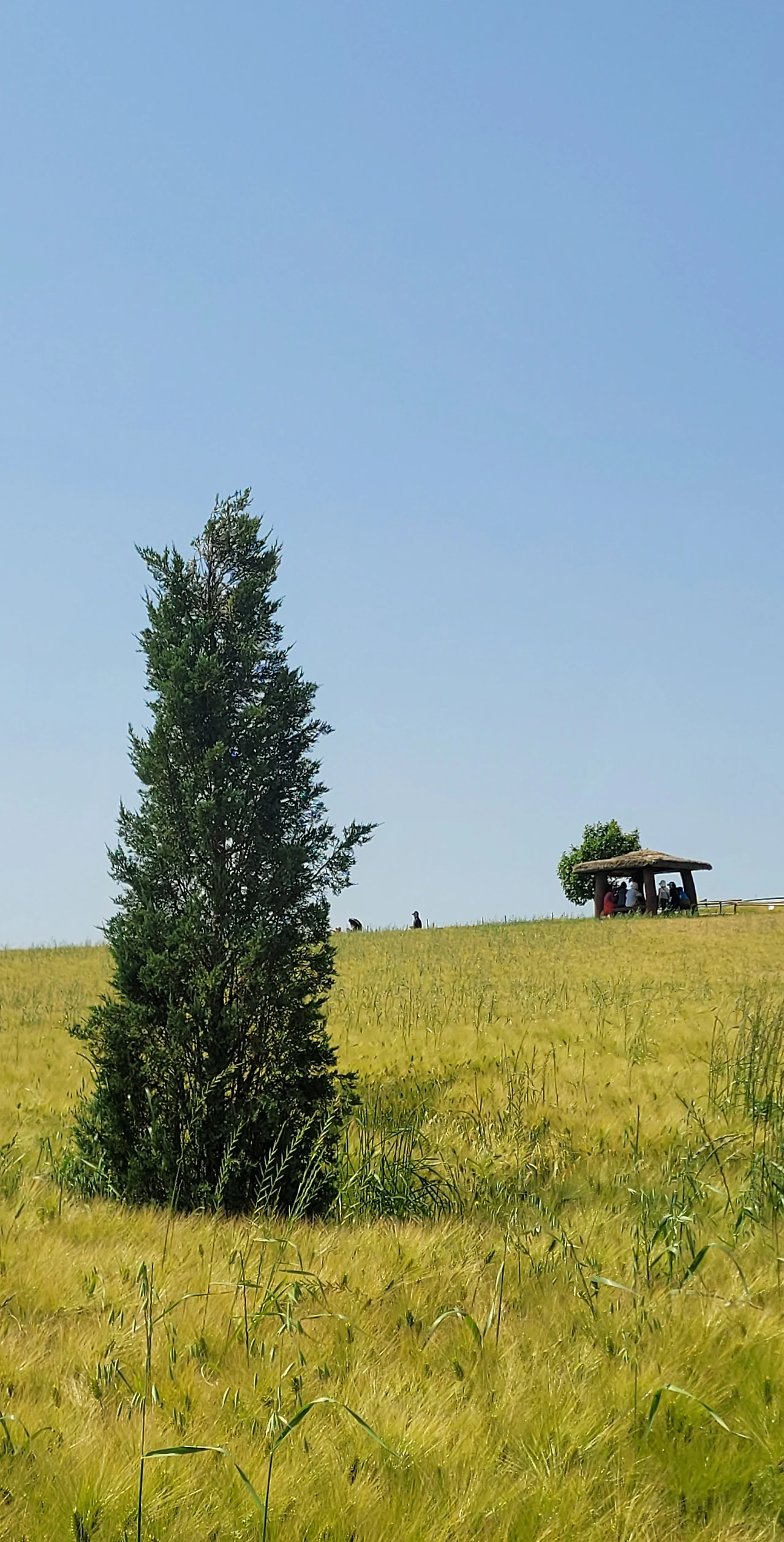 나무한 그루도 그림 같다. 보리밭에 외로이 선 나무 한 그루가 멋들어졌다. 하늘을 향해 곧게 자란 측백나무가 고흐의 그림의 한 장면 같은 분위기를 풍긴다. 귀에 익은 노래가 울려 퍼진다. 초청가수의 구성진 목소리가 흥을 돋운다. 멀리서도 공연장의 노란 지붕이 강렬하다.