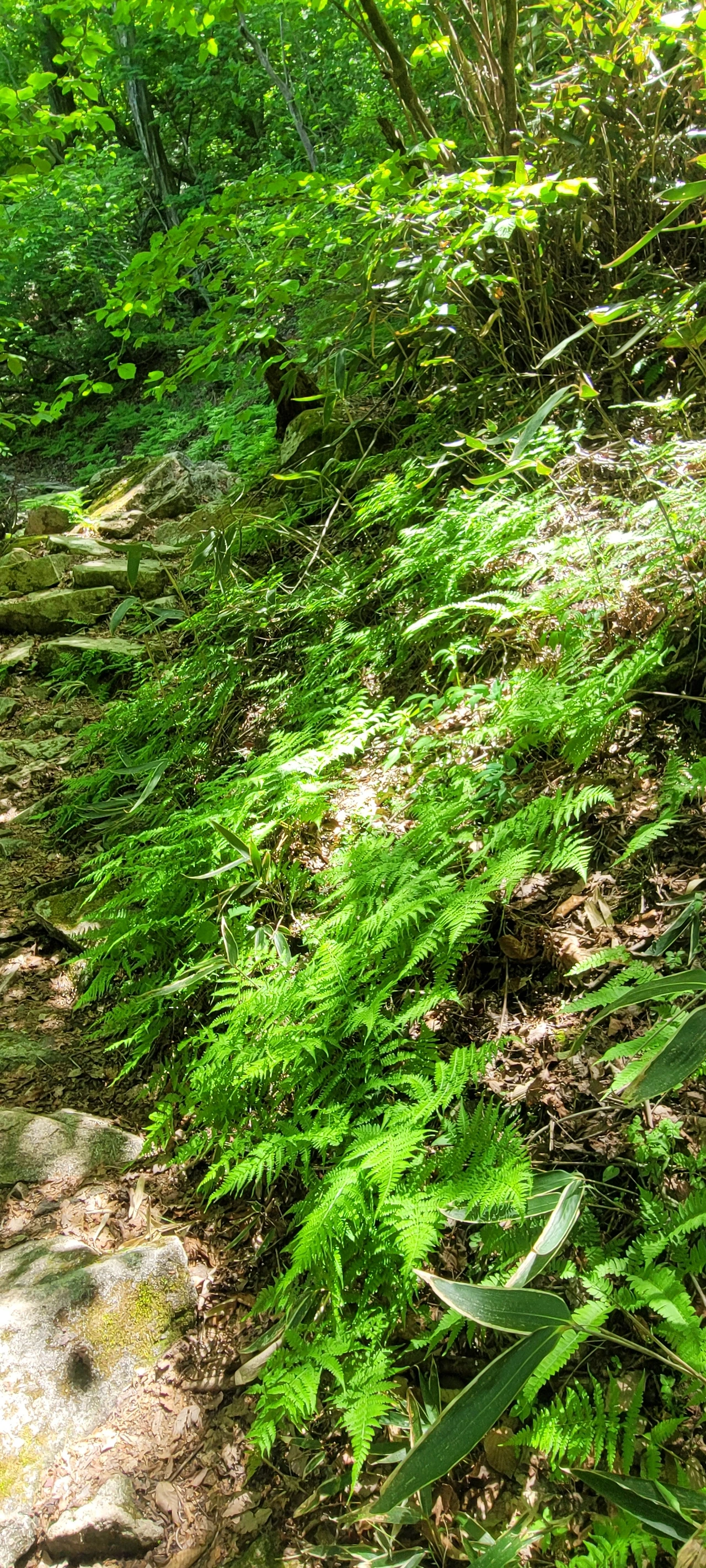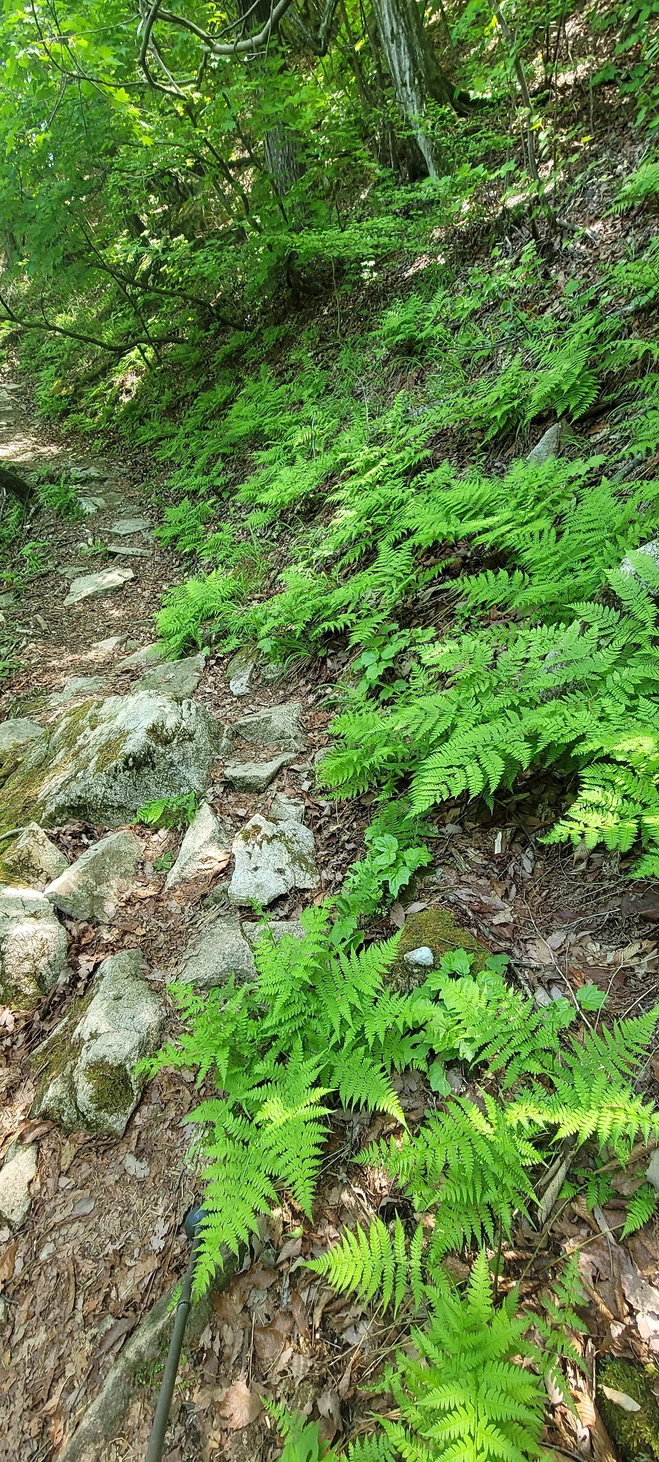 어디 인생이 쉽던가? 또다시 오르막이다. 울창한 숲으로 인해 삐져나온 햇살이 산길에 물방울무늬를 수놓은 길을 걷는다. 산길을 걷는 재미가 있다.