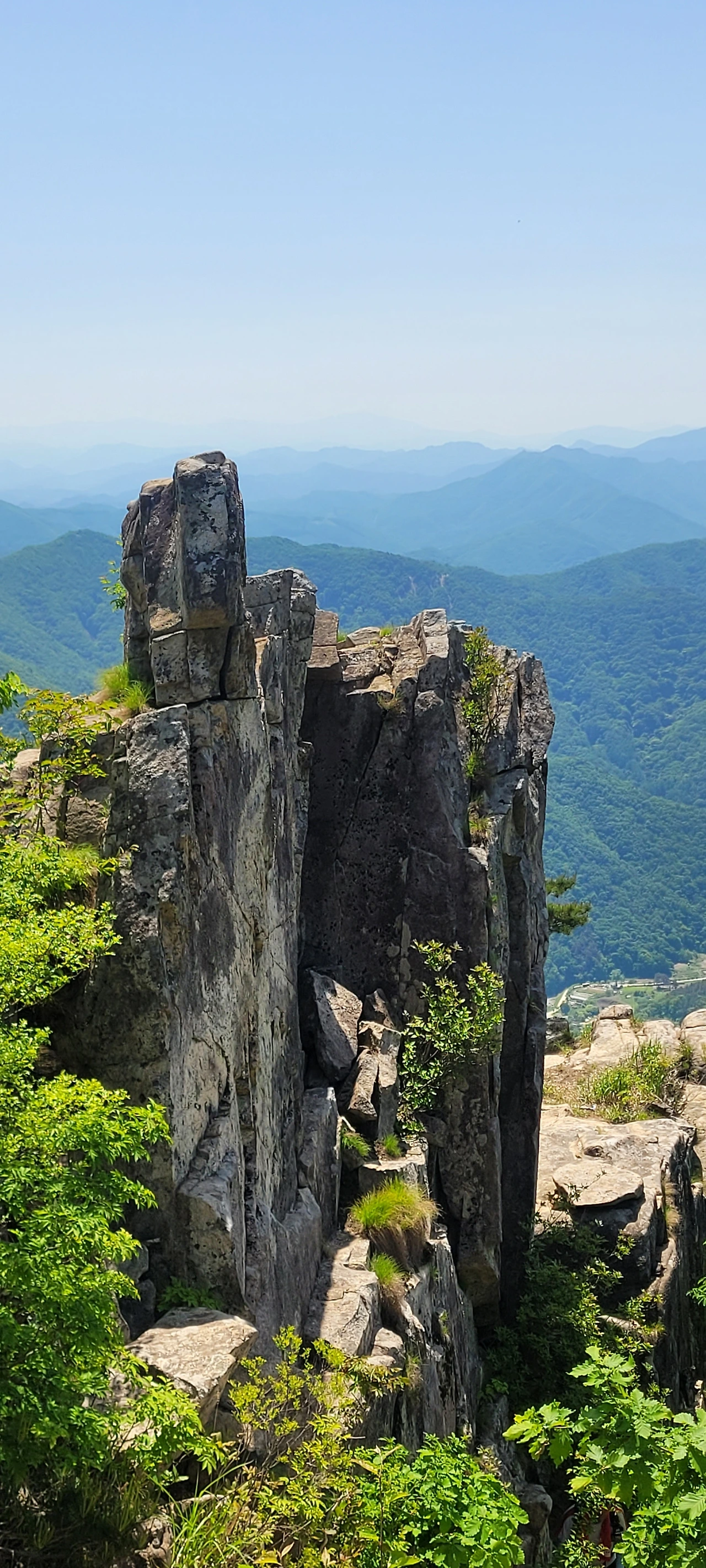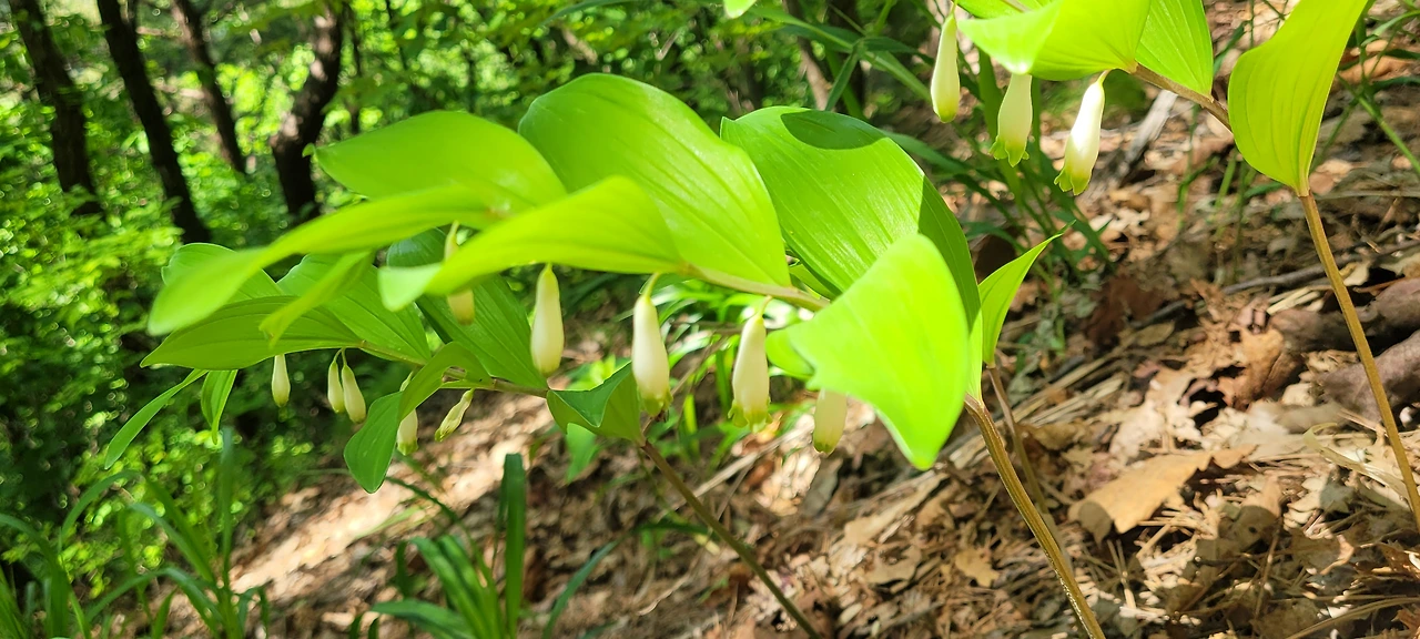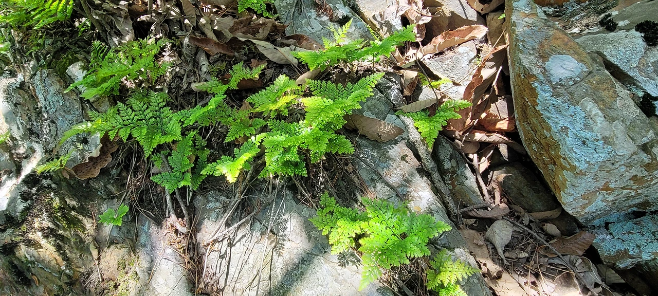 넉줄고사리가 돌틈 사이로 귀엽게 자랐다. 어린 탓에 더 마음이 간다. 꽃이 아니어도 나름의 아름다움이 있다. 처음 만나는 야생화는 둥굴레다. 잎 뒤에 조랑조랑 달린 꽃망울이 귀엽다. 마침내 오르막이 끝나고 산마루에 올랐다. 나무들 사이로 기암 봉우리가 보인다. 끝이 보이지 않았는데 시작이 있으면 끝이 있다는 말이 실감이 난다. 기암의 연봉이 물결치는 전경이 금강의 이름을 입을만하다.