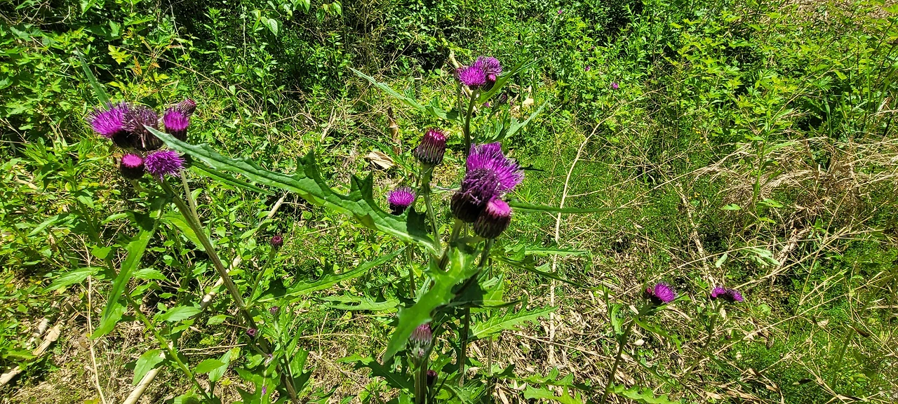 누군가가 죽순을 한 무더기 따놓은 것을 발견했다. 전부 반이 갈라져 있다. 아마도 몰래 죽순을 따가려다 주인의 발소리에 놀라 내버려 두고 간 듯했다. 만약 오늘 우리가 오지 않았더라면 죽순 구경을 못 할 뻔했다. 가슴을 쓸어내리며 대밭을 샅샅이 뒤져서 너무 커버린 것은 빼고 적당히 자란 것들을 부지런히 찾았다. 햇살이 강렬했지만 대숲에는 그늘이 져서 그다지 덥지 않았다. 멀리서 뻐꾸기 소리도 들렸다. 자연의 품에 안겨 자연이 내준 귀한 선물을 수확하는 즐거움을 마음껏 누렸다. 가져온 가마니에 죽순을 다 채우고는 남는 시간에는 쑥을 뜯었다. 허리만큼 자란 쑥의 윗부분을 손으로 일일이 땄다. 쑥떡을 할 요량이다. 쑥대밭에서 쑥을 뜯으니 훨씬 간단했다. 여기저기 엉겅퀴 꽃도 피어 아름답다. 엉겅퀴 꽃 피는 풀밭이라는 제목으로 그림을 그리면 너무 어울릴 것 같다.