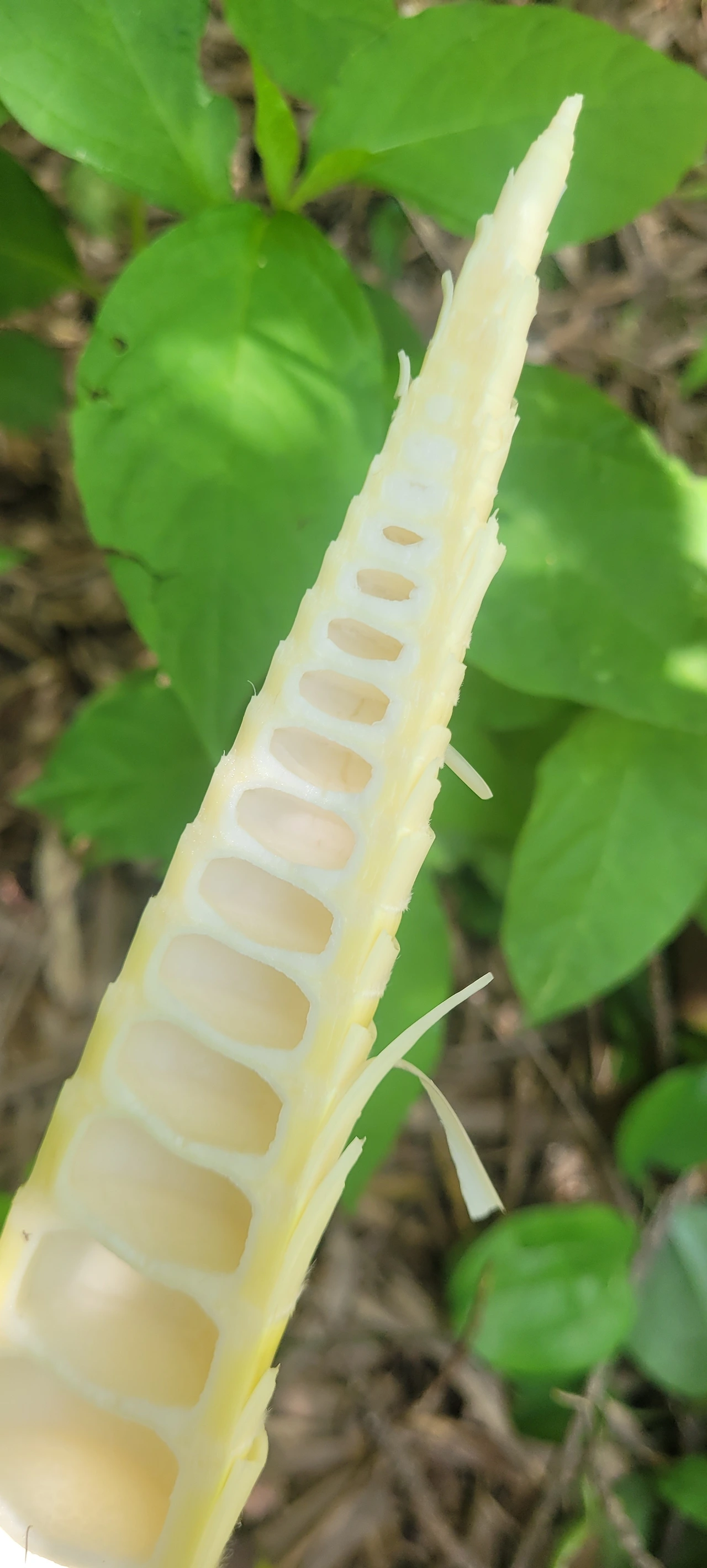 밭두둑에 튼실한 죽순이 눈에 들어온다. 낫으로 잘라도 되지만 손으로 꺾어도 쉽게 부러진다. 대밭 한가운데보다는 대밭 주위에 죽순이 많이 자란다. 형님과 나는 죽순을 따고 아내와 조카는 죽순 껍질을 벗겼다. 죽순 껍질은 끝없는 겹겹으로 일일이 벗기는 작업은 만만한 일이 아니다. 내용물보다 껍질이 2-3배가 많다. 그래서 죽순을 다듬기가 쉽지 않은데 이번에는 아주 손쉽게 했다. 죽순을 칼로 반을 가른 후에 알만 쏙 빼면 된다. 껍질채 가져가면 양도 무게도 엄청나다. 이렇게 내용물만 꺼내는 것은 삶의 지혜였다.