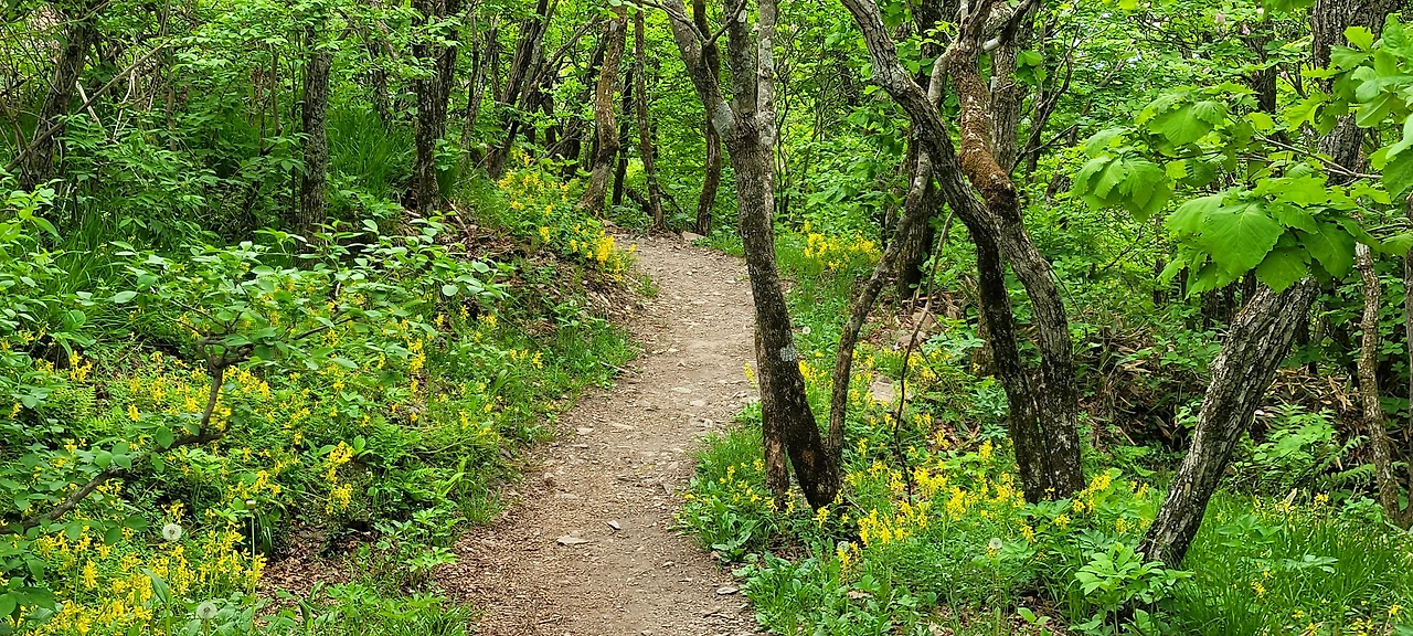 깊은 숲에 들어서니 야생화가 우리를 반긴다. 숲을 찾는 즐거움 중 하나는 숲을 장식하는 꽃을 만나는 일이다. 오월의 숲 어디나 벌깨덩굴 꽃이 핀다. 이곳에는 풀솜대가 특히 아름답다. 눈썹처럼 가는 하얀 꽃술이 마치 별처럼 빛을 뿌린다. 처음 보는 특이한 꽃도 있다. 요강나물인데 작은 종모양의 검은 꽃이 핀다. 꽃빛은 족두리풀도 유사하다. 잎 속에 숨은 검보라 빛 작은 항아리 꽃이 앙증맞다. 꽃의 세계도 이처럼 다양하다. 광대수염도 꽃송이를 달고 있다. 우아한 꽃인데 이름은 전혀 아니다. 귀여운 쥐오줌풀도 매한가지다. 꽃들이 개명하고 싶다고 아우성칠 것 같다.