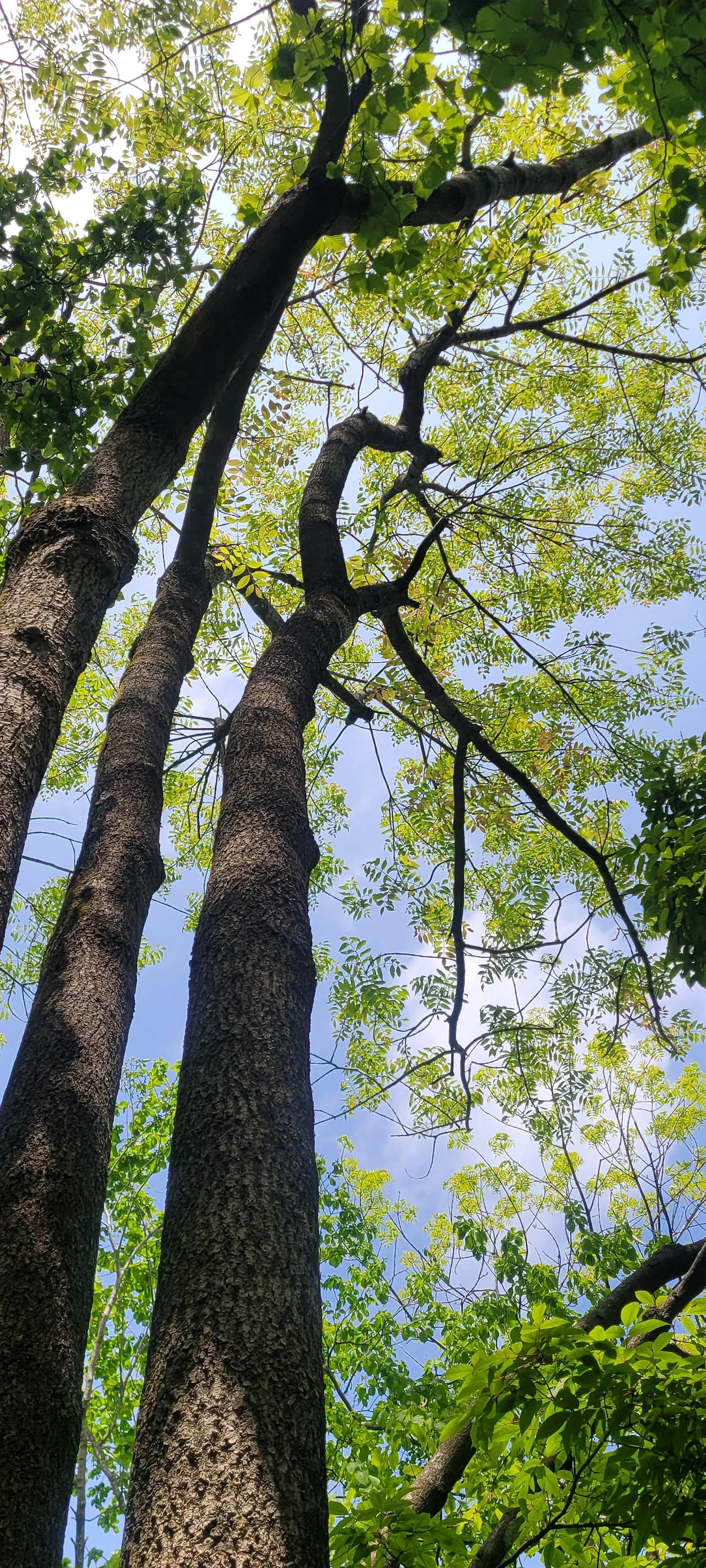 산길 초입에 키다리 낙우송이 우리를 반긴다. 완만하고 잘 정돈된 흙길이라 걷는 느낌이 산뜻하다. 한동안 기온이 치솟아 여름 같은 날이 지속되더니 오늘은 구름이 잔뜩 끼고 쌀쌀한 느낌마저 있다. 화창하면 좋겠지만 흐린 날도 걷기에 나쁘지 않다. 서늘한 날이지만 바람막이를 벗어버리고 반팔 티만 입었다. 아침 바람이 차갑지만 이는 순간이다. 산을 걷다 보면 바로 체온이 올라 몸에 열이 난다.