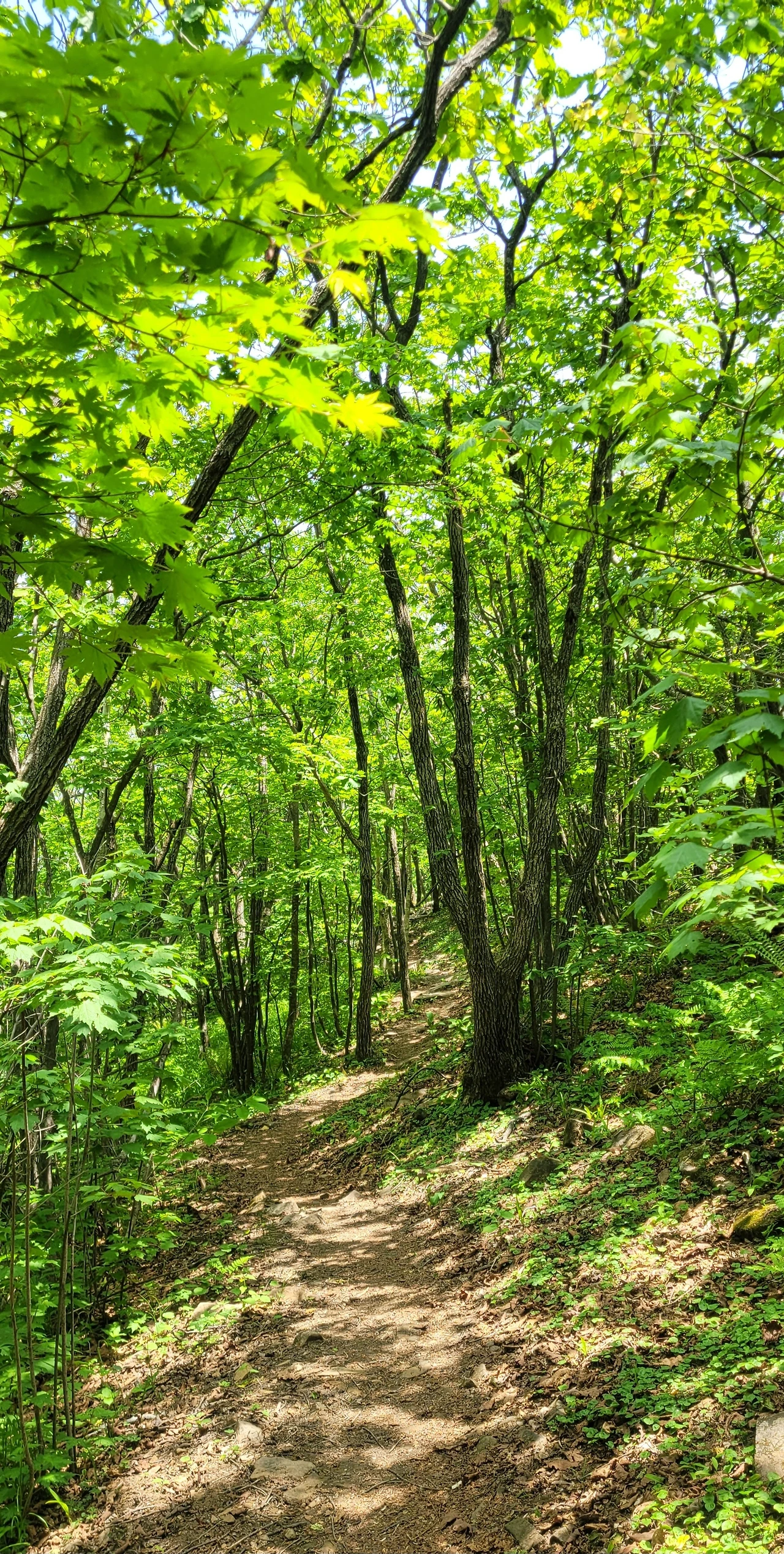 이번 트레킹 내내 울창한 숲 속을 여유롭게 거닐었다. 눈이 머무는 곳 어디나 푸르름이 넘쳤다. 그래서 지루함을 느낄 겨를이 없었다. 산길도 험하지 않아 좋았다. 오월의 절정을 숲에서 충분히 누리고 즐겼기에 이 달이 가도 덜 섭섭할 것 같다.