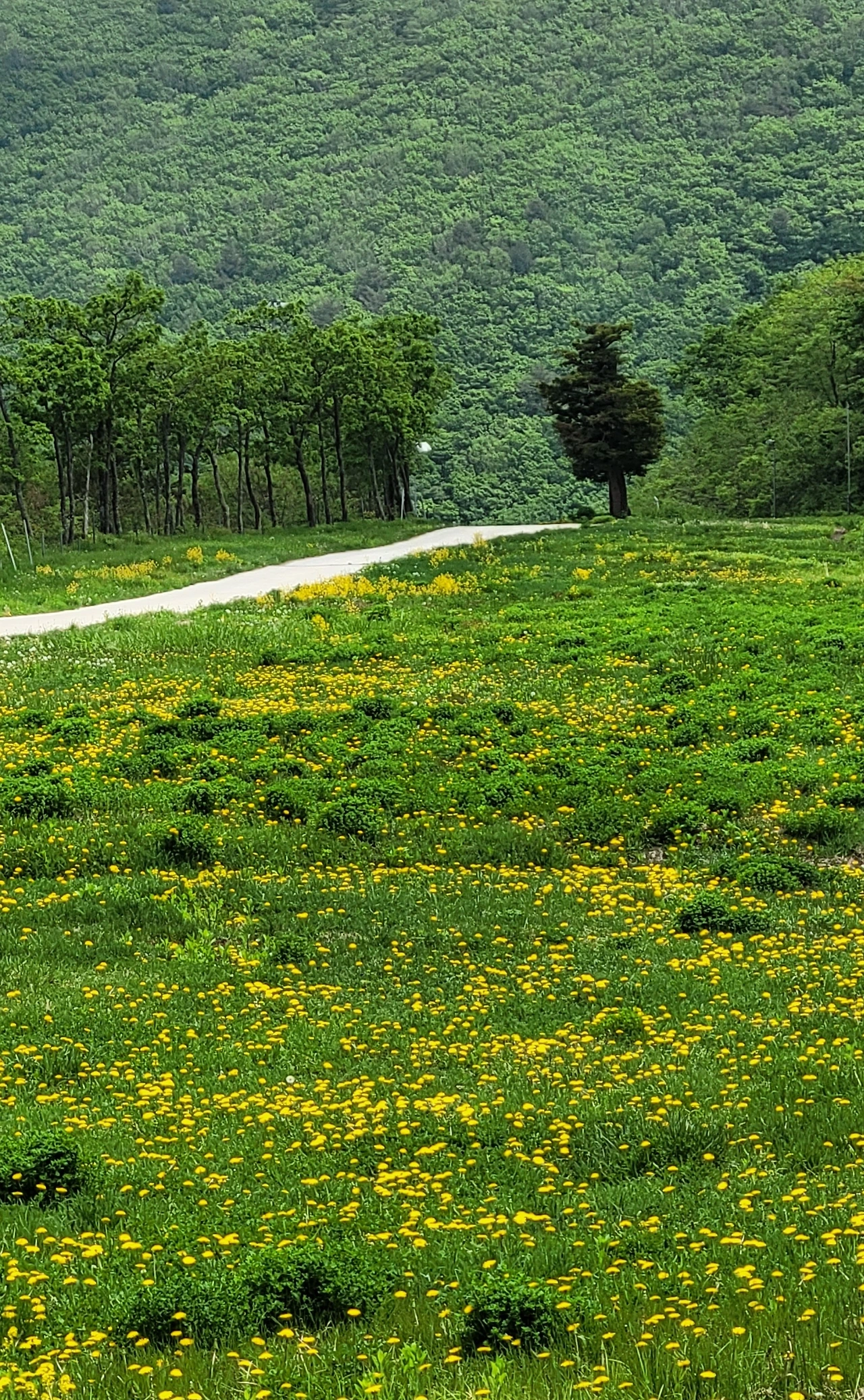 산마루에 당도하니 늦은 철쭉이 피어있다. 고도가 높아 봄이 늦어진 것이다. 마천봉 오르는 초입에 민들레와 유럽나도냉이와 민들레가 너른 밭을 노랗게 물들였다. 깊은 산인데도 외래식물이 점령한 것이다. 이에 뒤질세라 소롯길에 노랑괴불주머니 꽃이 군락을 이루고 있다.