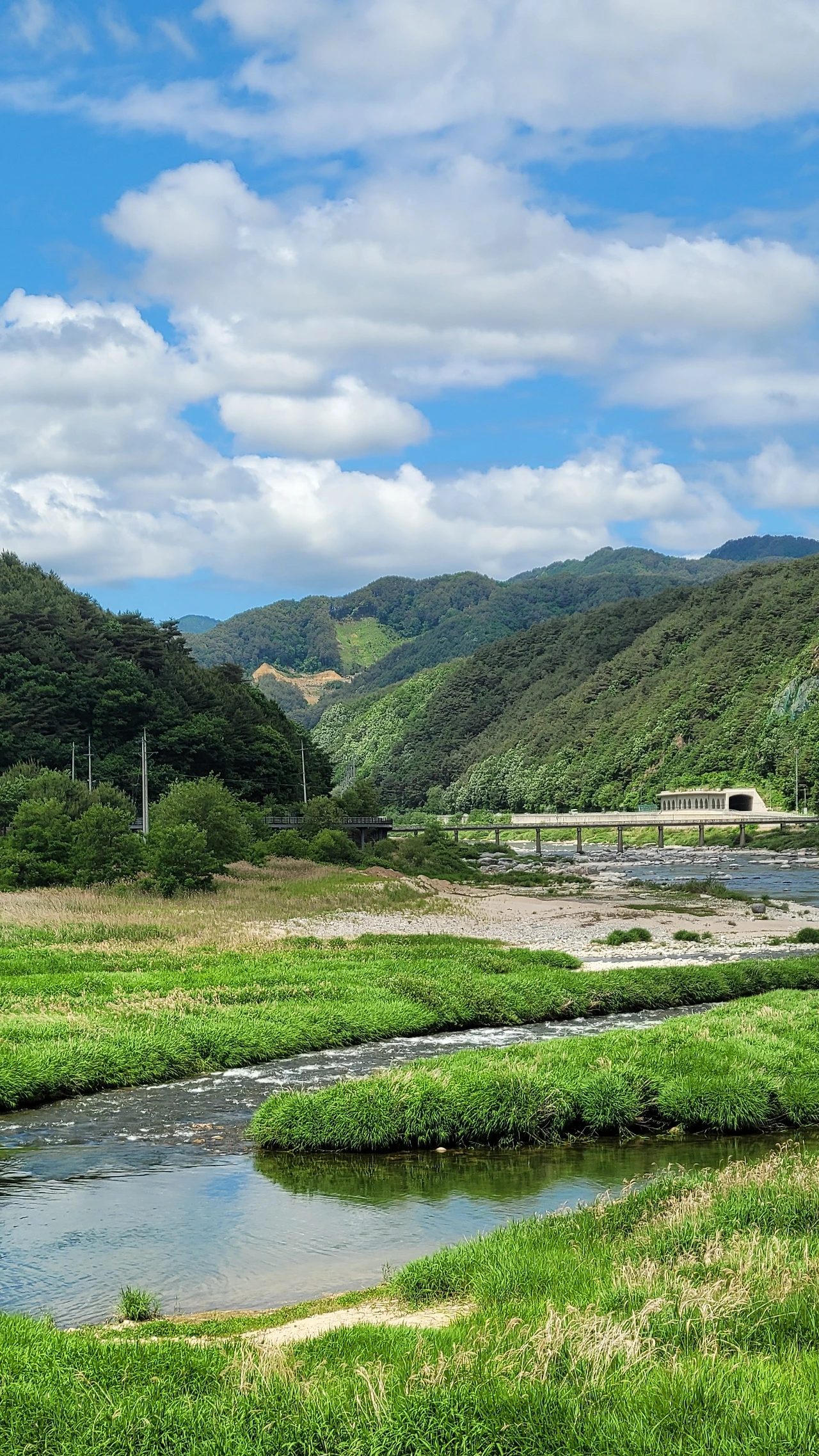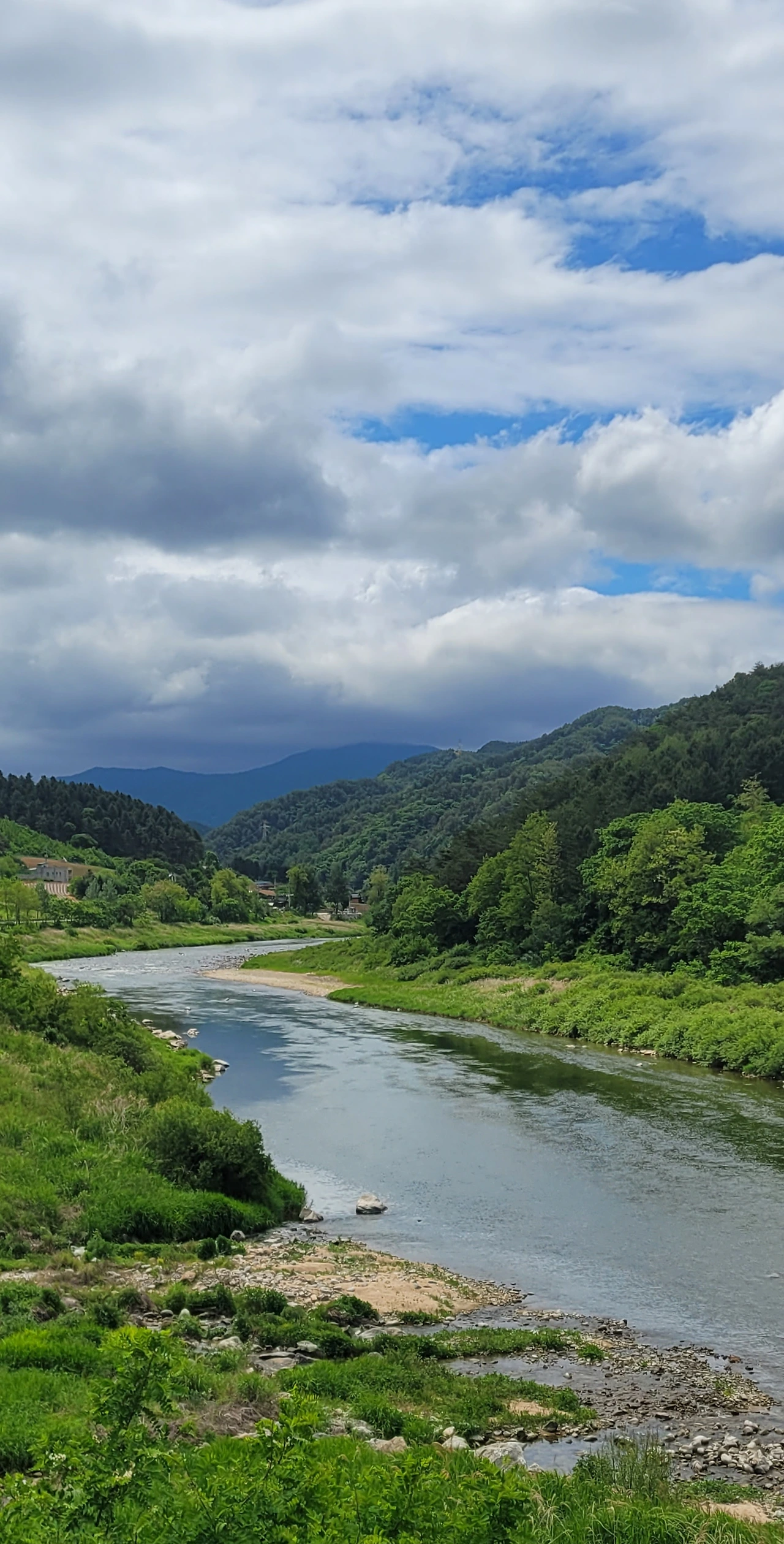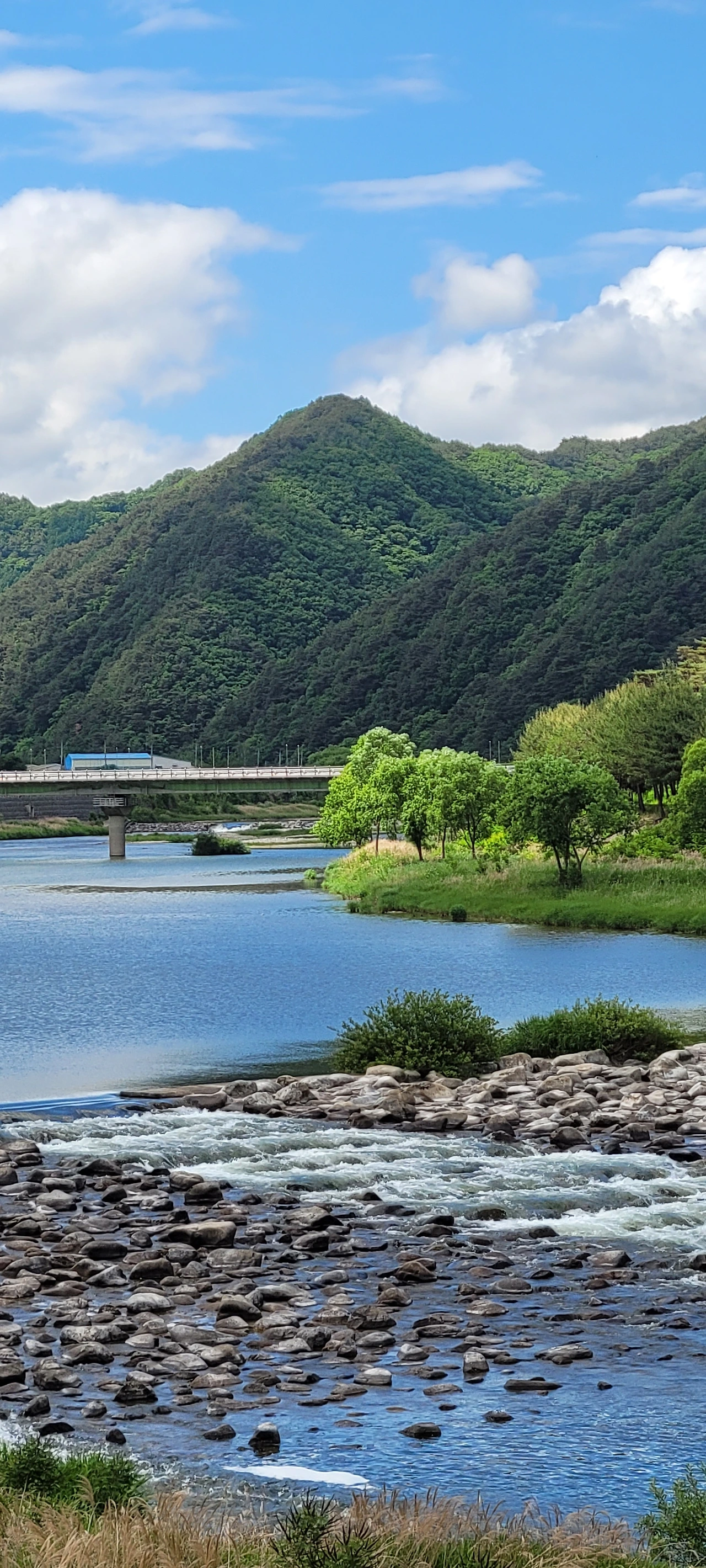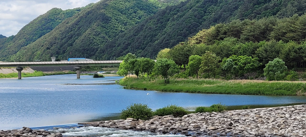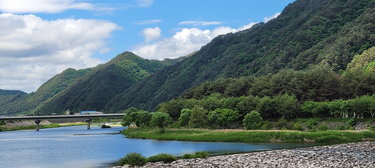 바람이 구름을 몰아냈는지 파란 하늘이 얼굴을 내민다. 산은 울울창창 푸르고 내린천의 계류로 파랗다. 온통 푸른색이 넘쳐난다. 나도 푸른 물이 드는 기분이다. 이 느낌을 시조로 읊어 보았다.