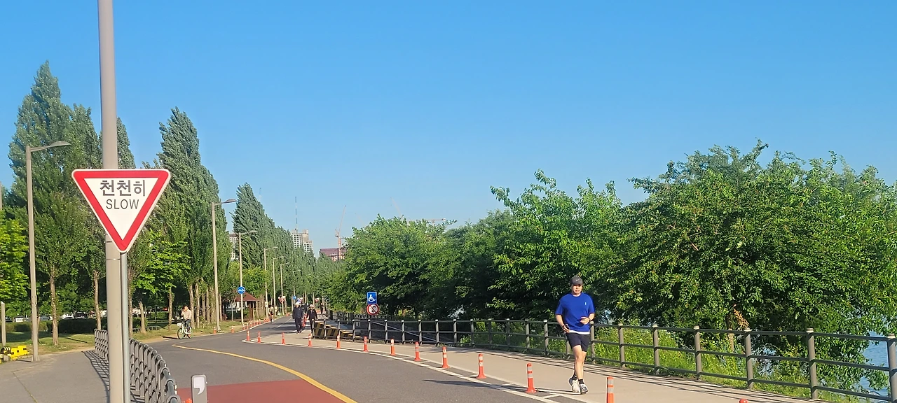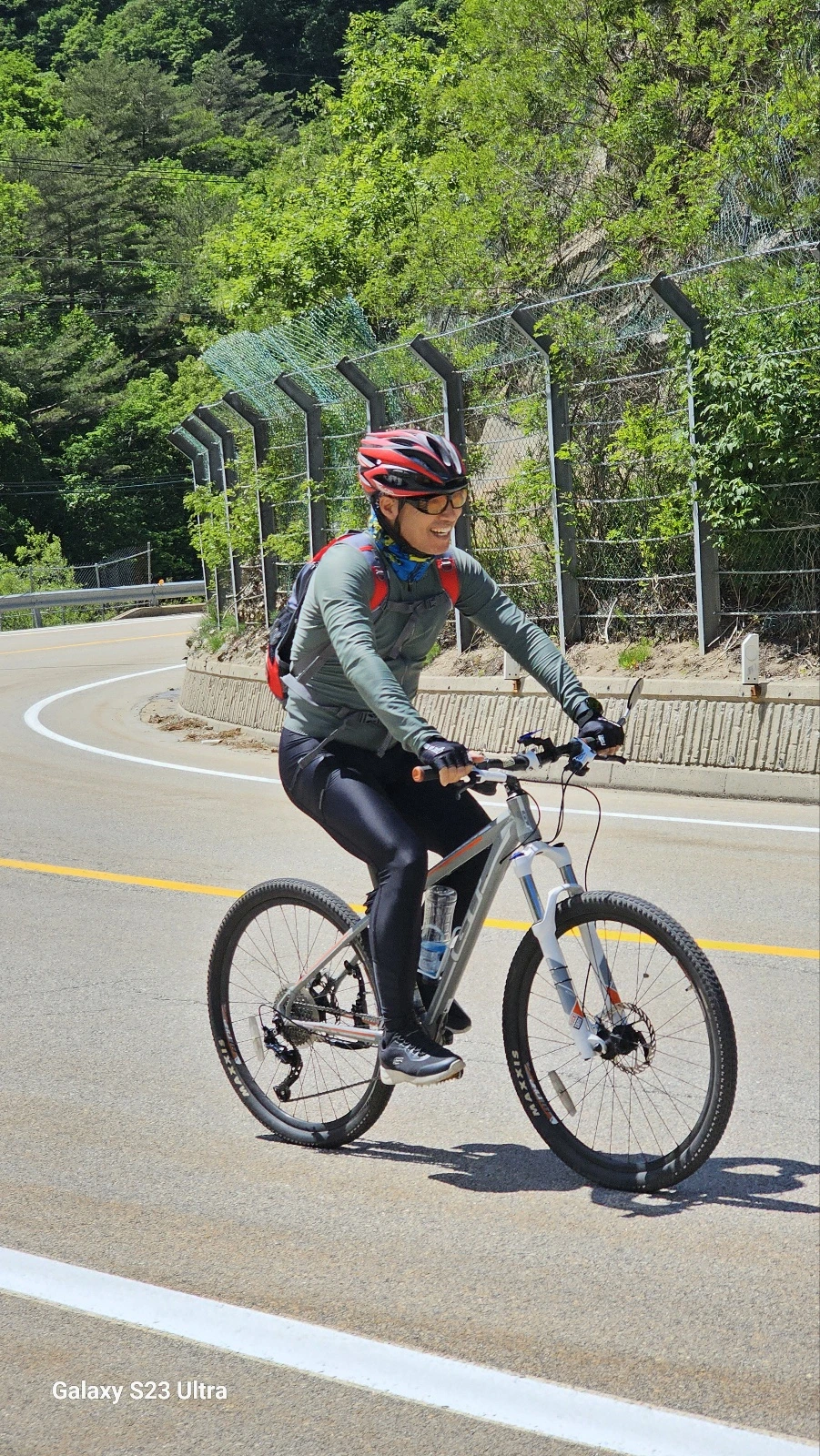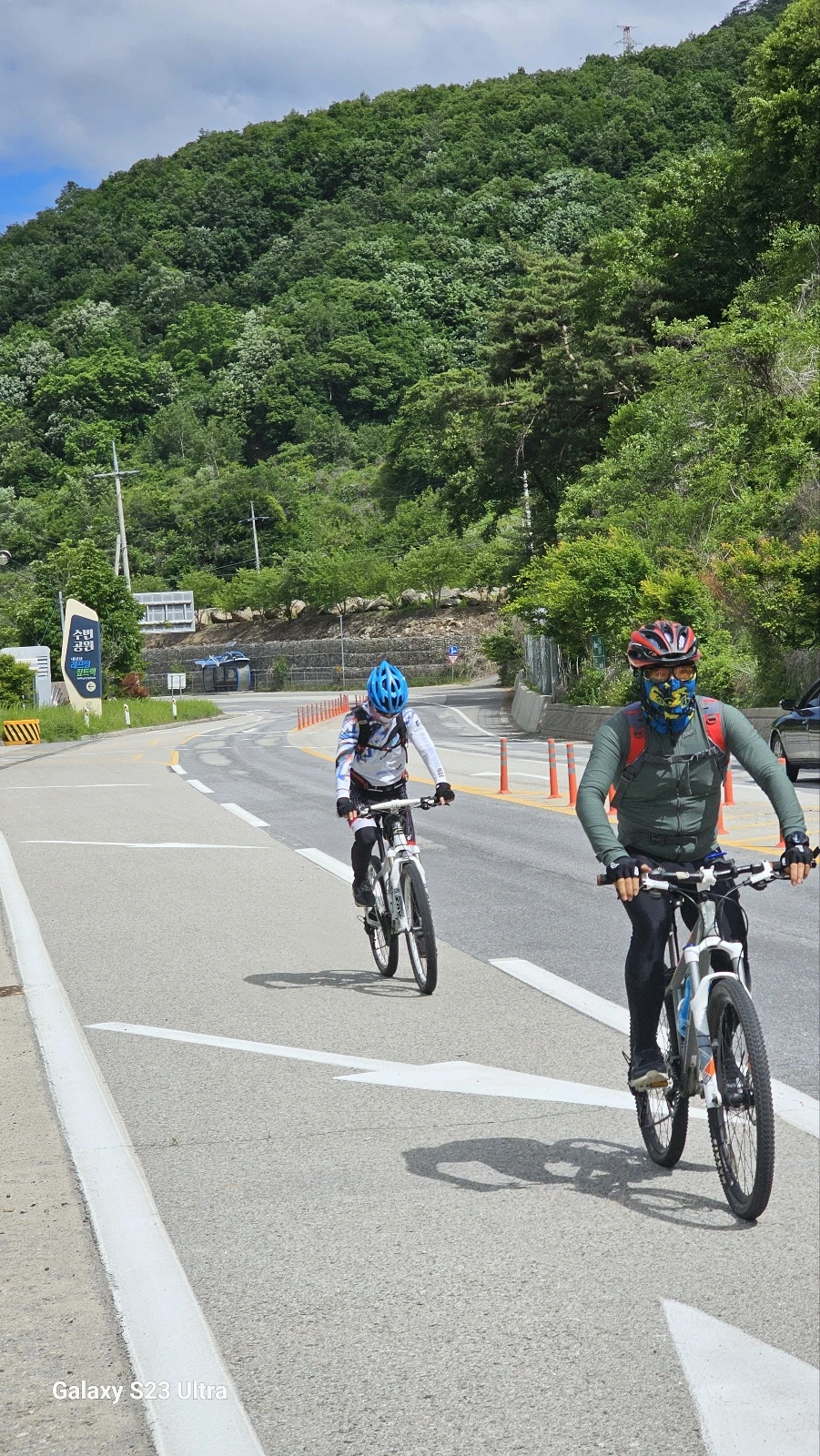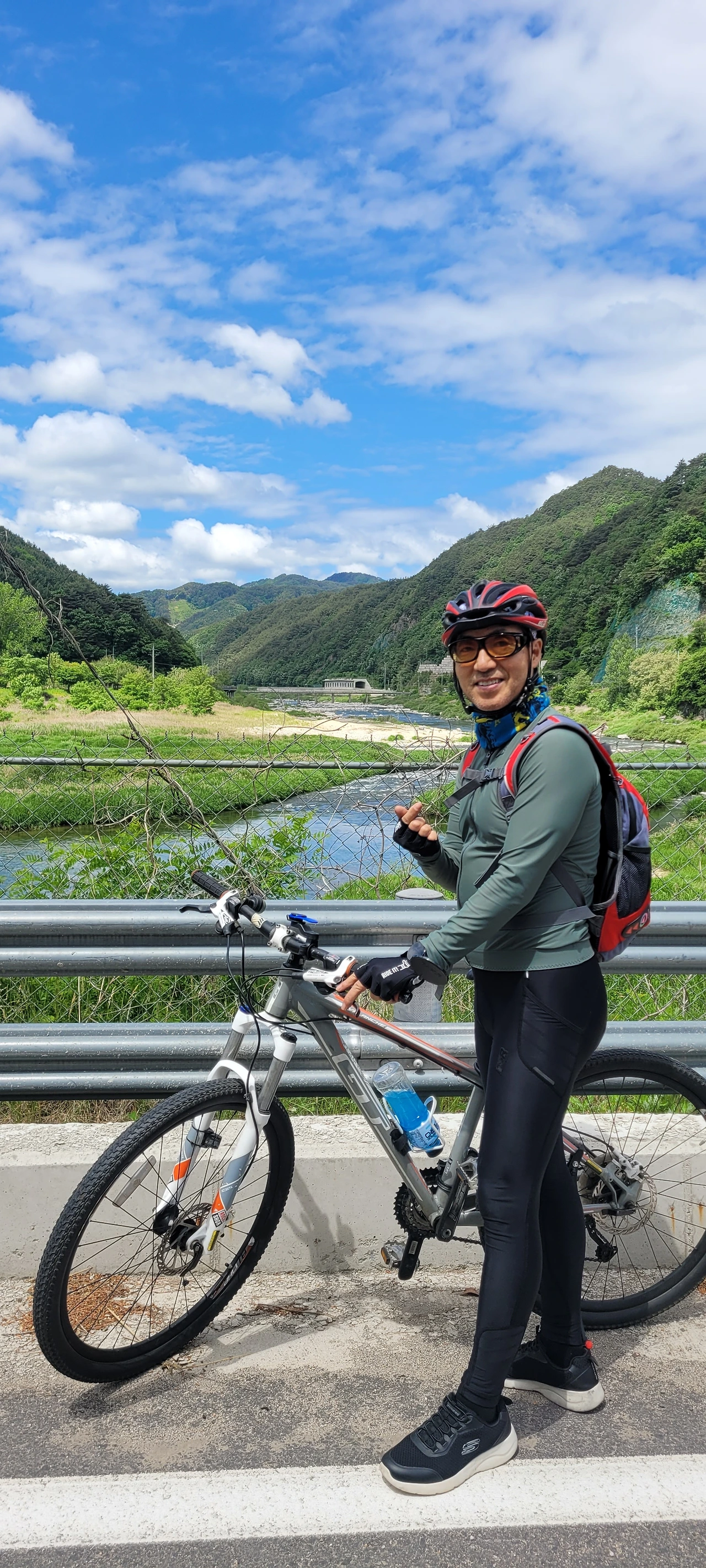 코스가 대부분 평지로 내리막 길 위주의 길이라지만 오르막이 없을 수 없다. 힘이 들지만 함께 달리니 쭉쭉 나아간다. 지칠만 하면 쉼이 있어 주변 풍광을 즐긴다. 시간이 흐를수록 하늘의 구름이 걷히고 파란 하늘이 지평을 넓힌다. 오월의 자연을 원 없이 누린다.