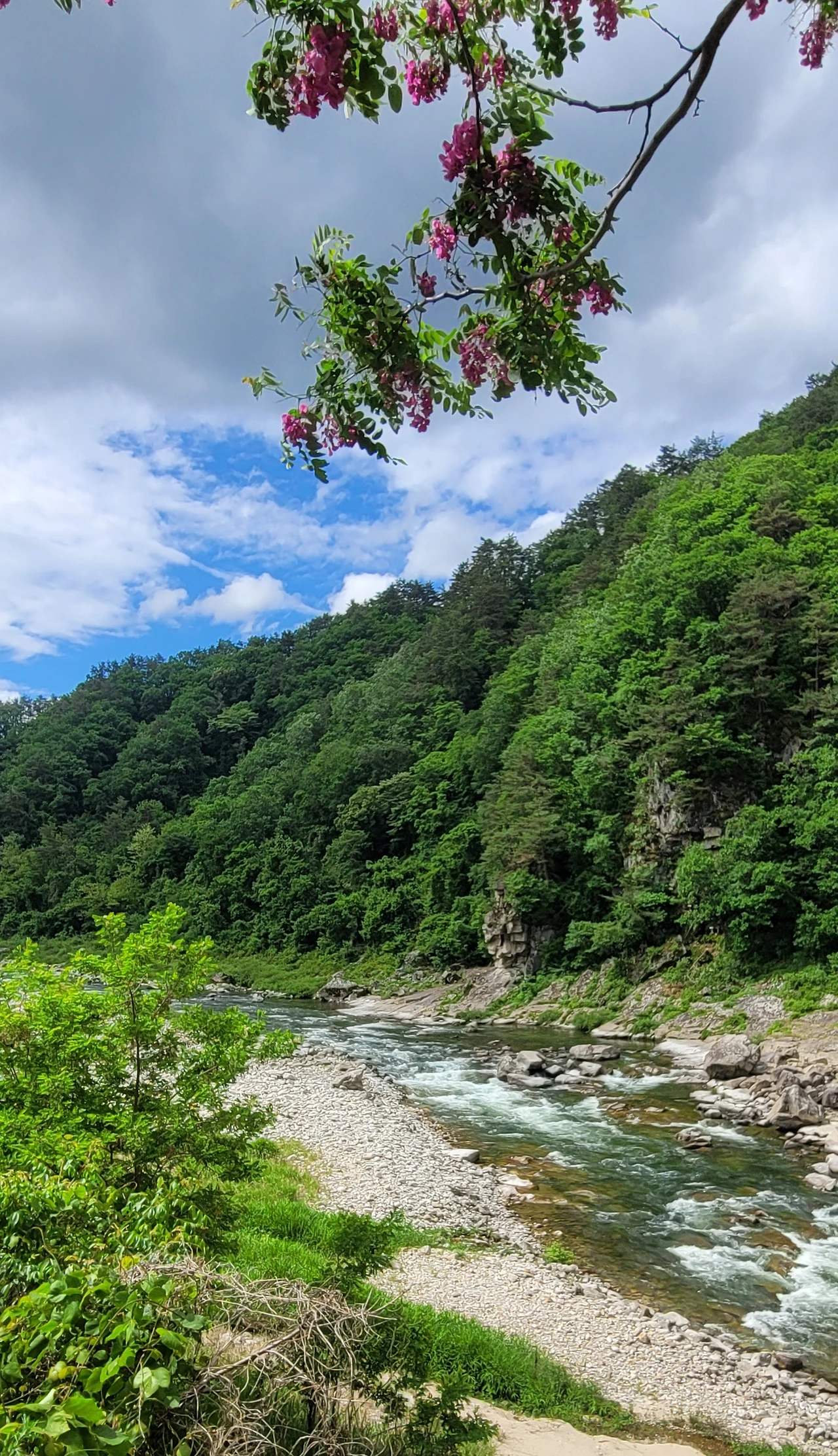 산은 깊어지고 우리는 인제의 속살 속으로 들어왔다. 방동약수, 아침가리 계곡이다. 오지로 이름난 곳인데 이제는 유명세를 치른 탓인지 펜션이 많이 보인다. 때 묻지 않은 순수는 사람의 손길에 쉽게 무너진다. 붉은 아까시 꽃이 이 마음을 대변하는 것 같다.