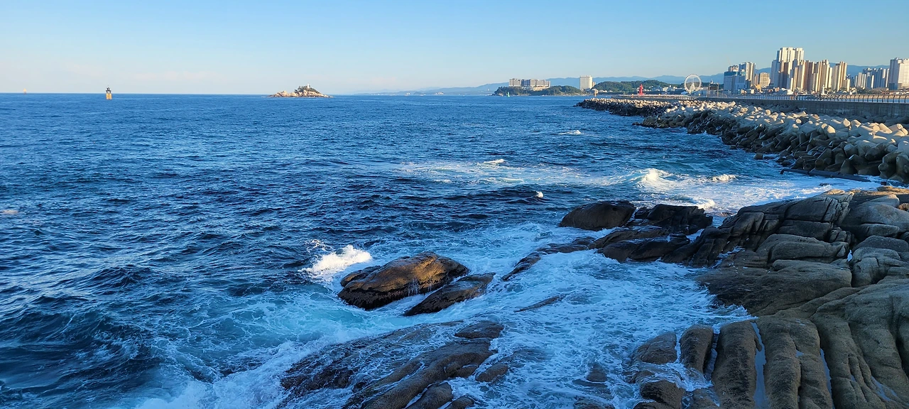 파란 물 파란 하늘 나무들도 짙푸르고