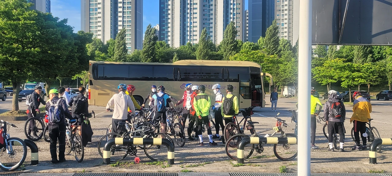 전에 타이어가 펑크 난 경험이 있어 우려가 있었지만 동행하시는 분들이 믿음직스러워 장도에 나섰다. 버스탑승지까지 자전거로 이동해야 해서 새벽 4시에 일어나야 했다. 천성이 길치라 길 찾는 것이 내게는 너무 어려운 일이다. 그래서 하루 전날 약속장소인 은행사거리까지 집에서 자전거로 미리 가보았다. 그렇게 길을 안다고 생각해서 일찍 일어났음에도 여유를 부리다 시간이 촉박해서 부랴부랴 자전거를 끌고 새벽 천변을 달렸다.