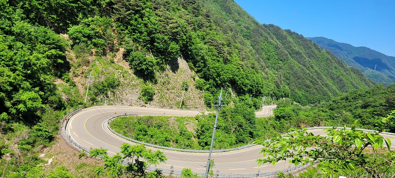 초보그룹이라지만 뒤처지는 사람 하나 없이 유려한 진행이다. 조침령 고개를 넘어가는 길은 허벅지에 힘을 쏟게 만든다. 격려와 성원으로 한 걸음씩 나아간다. 지난한 등정을 통해 고갯마루에 섰다. 조침령은 고개가 높아 새도 한 번에 넘지 못하고 자고 갈 정도라는 의미를 지녔다. 그만큼 높은 고개를 오른 것이다. 이제는 내려갈 일만 남았다. 속리산 말티고개처럼 구불구불 이어진 급경사 길로 선배들은 연신 주의를 준다. 충분히 거리를 두고 천천히 내려가야 한다고... 겁을 잔뜩 먹고 내려가는 길, 정말로 눈이 휘둥그레질 만큼 내리막이다. 브레이크를 살살 밟으며 내려가도 세찬 바람이 귀를 때린다. 심장은 쪼그라들었지만 기분은 기대이상이다. 마음 같아서는 속력을 내며 내달리고 싶다. 가도 가도 길이 한 없이 이어진다. 거꾸로는 절대 못 오를 길이다. 하지만 우리 일행 중에는 오를 수 있는 능력자들이 많다고 하니 놀랄 일이 아닐 수 없다. 걷는 것도 쉽지 않은 평범한 사람은 절대 해낼 수 없는 길이다.