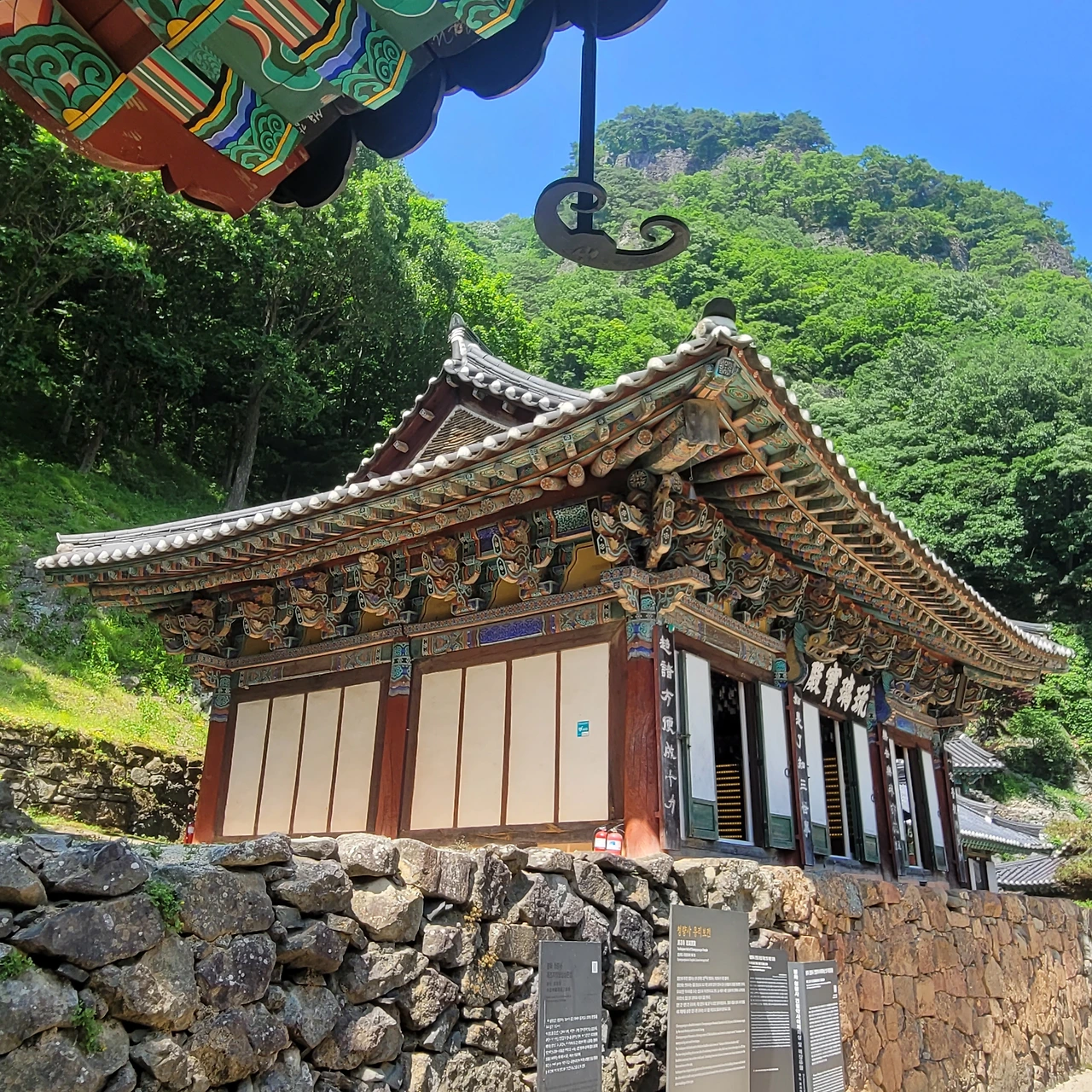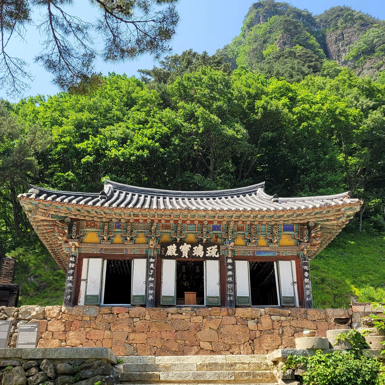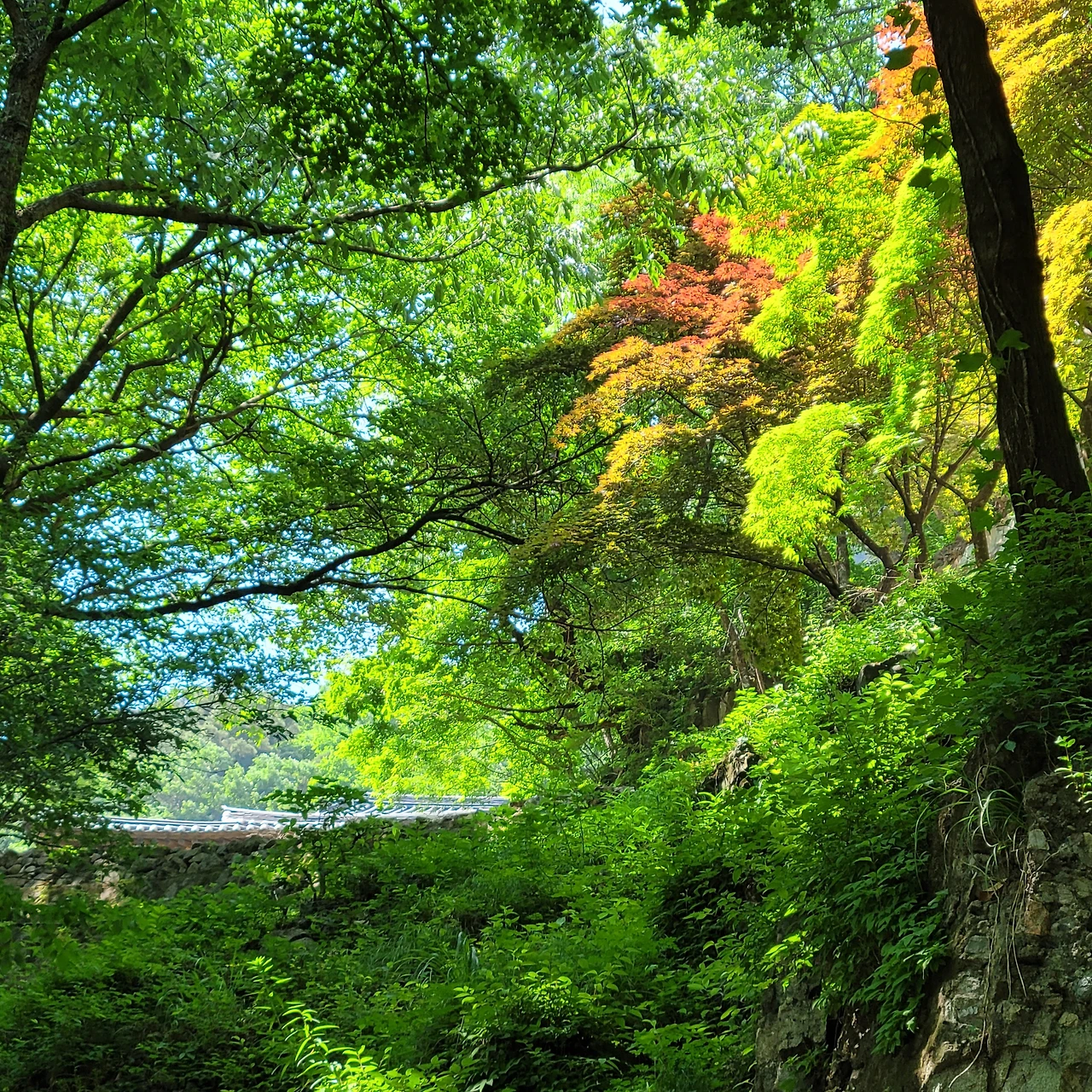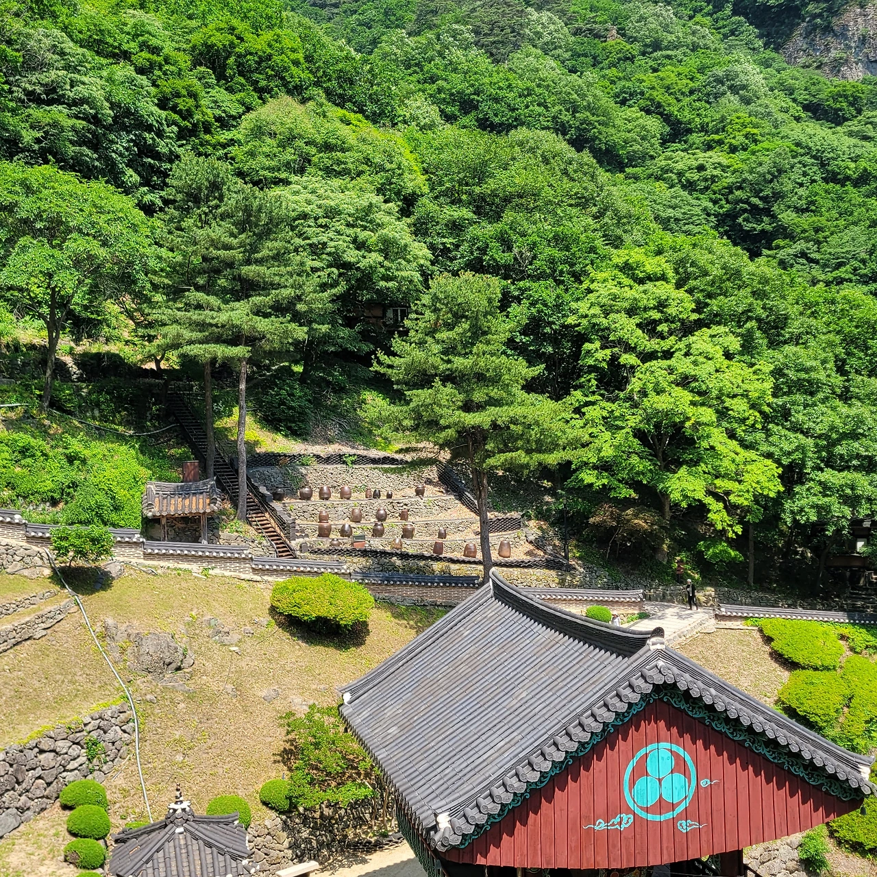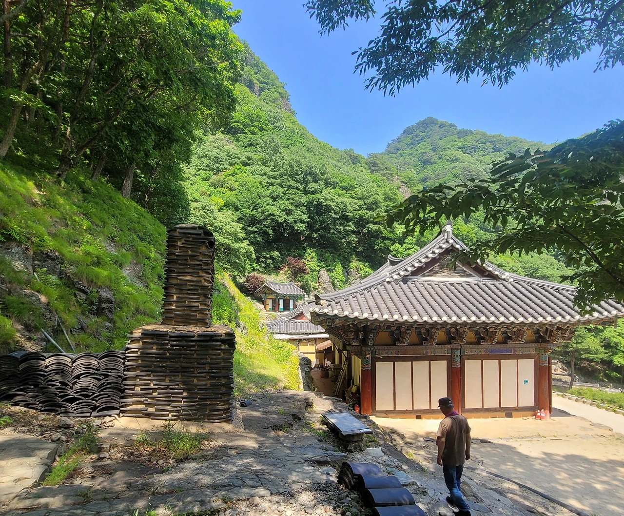 청량사는 말 그대로 청량한 절이었다. 분위기가 정갈했고 어느 한 곳도 정성이 닿지 않은 곳이 없었다. 빗물이 흐르는 길조차 기와로 정성스럽게 단장을 했다. 가람 배치도 산 경사를 따라 정갈하게 자리를 잡았다. 항아리를 놓은 곳도 세심한 손길이 느껴진다. 탑을 전망이 좋은 곳에 배치해서 독보적인 풍경을 빚었다. 아름다운 사진이 카메라에 담긴다. 문화재로 지정된 유리보전 안에는 건칠불이 있다. 건칠불은 옻칠을 삼베 위에 두껍게 바른 뒤 건조해 만든 불상으로 남은 작품이 희귀하다. 문외한이 보기에는 여느 불상과 크게 달라 보이지 않는다. 유리보전은 팔작지붕을 가진 아름다운 전각이다. 마음이 편해지는 것은 청량이 주는 이름의 힘일까? 내려가야 하지만 조금 더 머물러 있고 싶은 마음이 커지는 고운 절이다. 내려오는 길에도 통나무로 물길을 낸 수로가 마음을 붙든다. 참 마음에 남는 절이다.