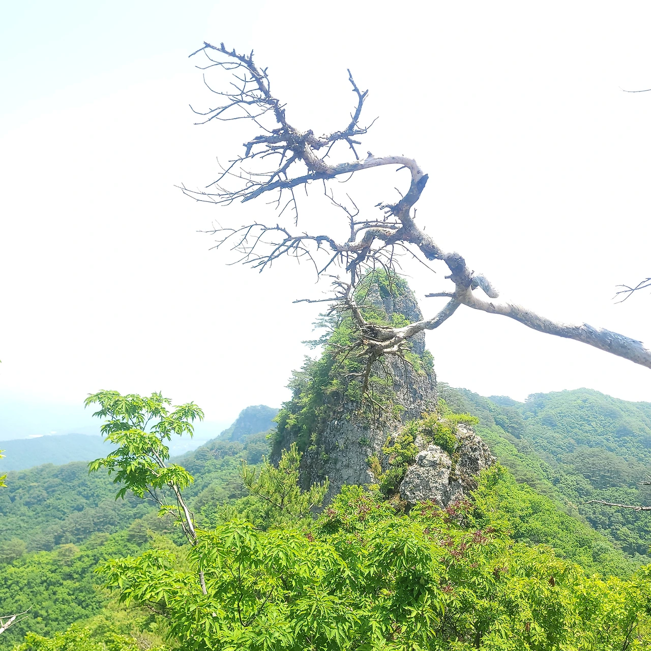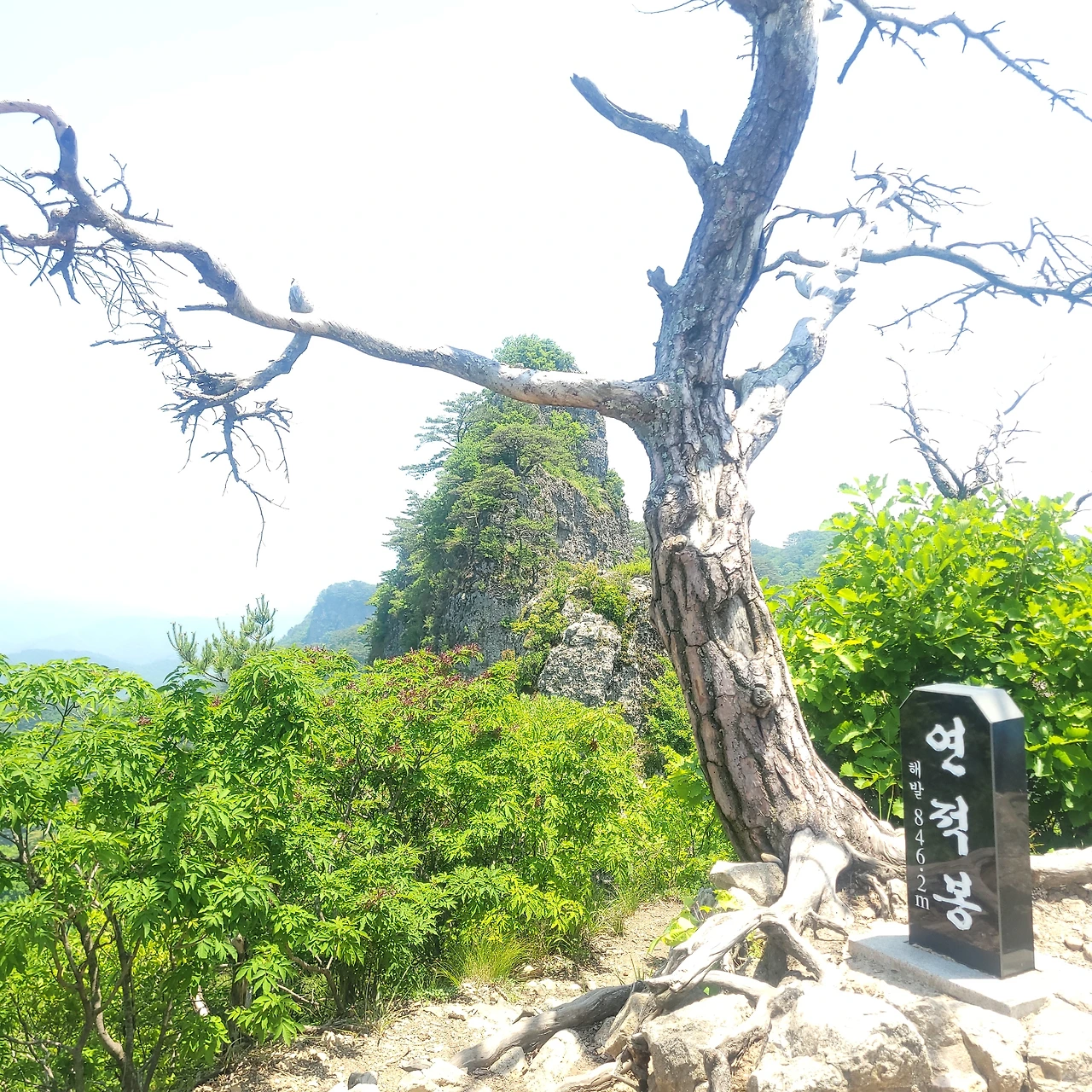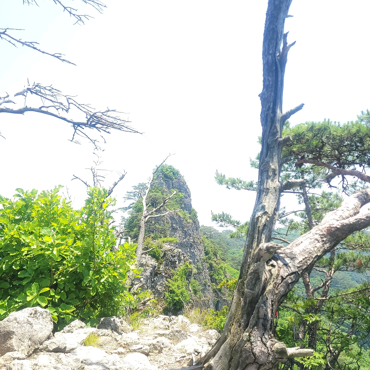 탁필봉과 연적봉을 연이어 오른다. 명필들과 연관이 많은 산이라서 봉우리 이름에도 글씨와 연관이 있다. 탁필봉은 길가에 선 커다란 바위로 연적봉에서 바라봐야 제대로 볼 수 있다. 일행이 역적봉이라고 잘못 전달해서 역적들만 오르는 봉우리라고 우스개 소리를 하며 오르는 데, 올라보니 연적봉이다. 고사목이 멋진 자태를 뽐낸다. 죽어서도 아름다움을 지니는 나무들은 참으로 멋진 존재다. 어디에서 사진을 찍어도 작품이 되는 곳이라 좁은 장소가 북적인다. 나도 이곳에서 한 컷을 남겼다.