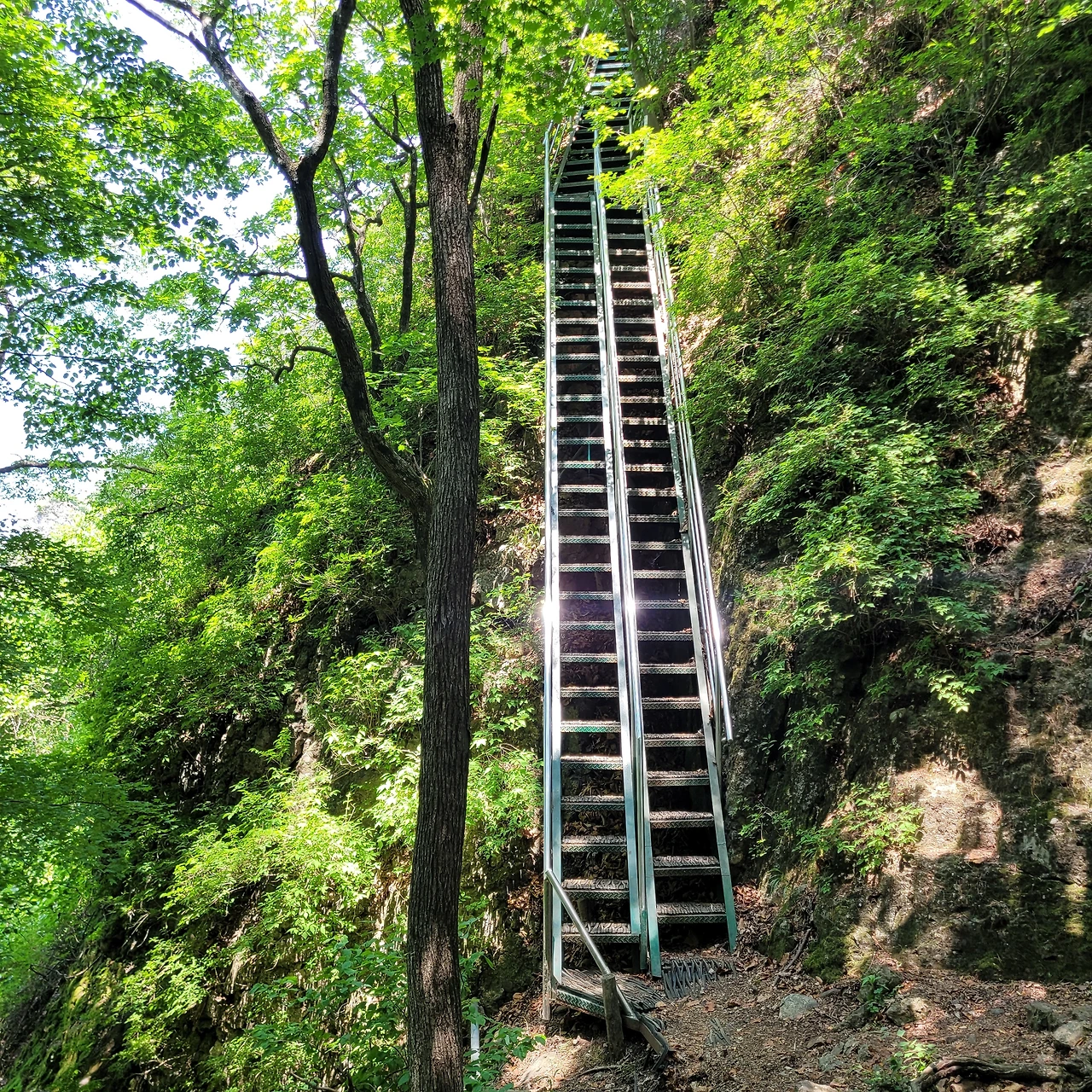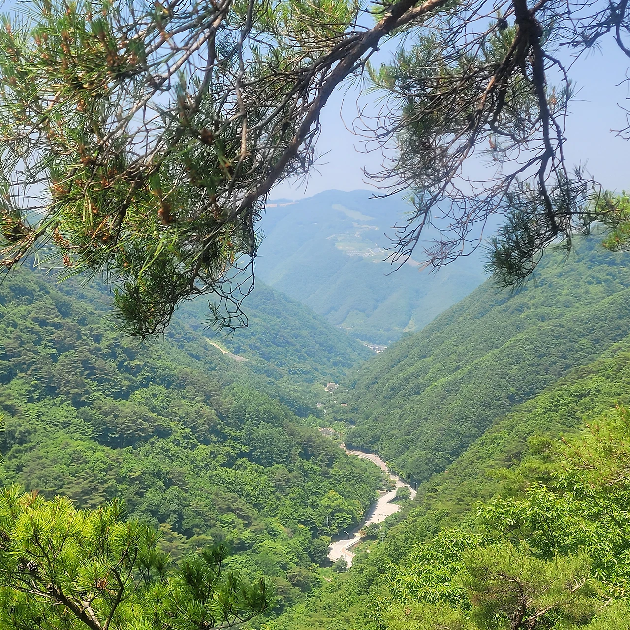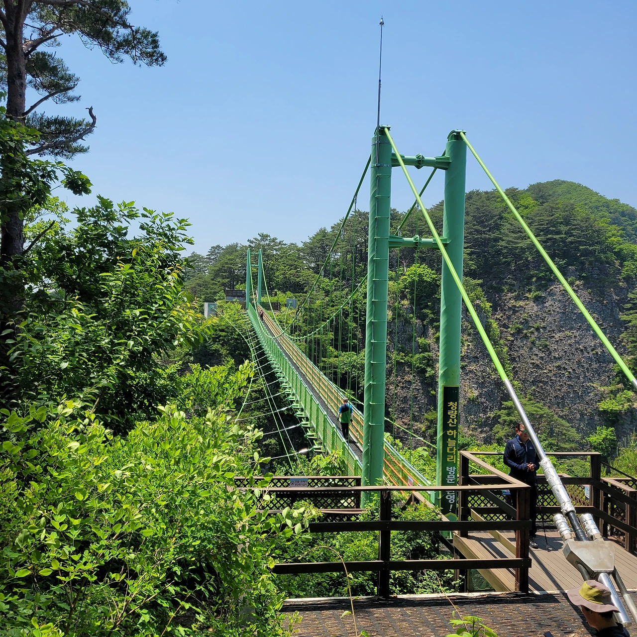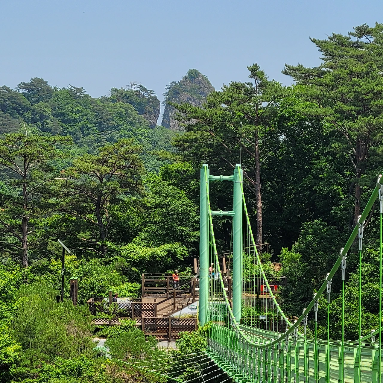 험한 산이라 오르내리는 길이 직각이다. 철제구조물로 놓인 사다리길이 아찔하다. 뒤이어 만나는 하늘다리는 국내에서 가장 크고 높은 현수교라는 데 생각보다 무섭지는 않았다. 아마도 바닥이 불투명해서 그런 것 같다. 하늘다리 자체보다 그곳에서 볼 수 있는 경관이 더 대단하다. 신선이 머물듯한 봉우리들이 그림같이 눈에 들어온다.