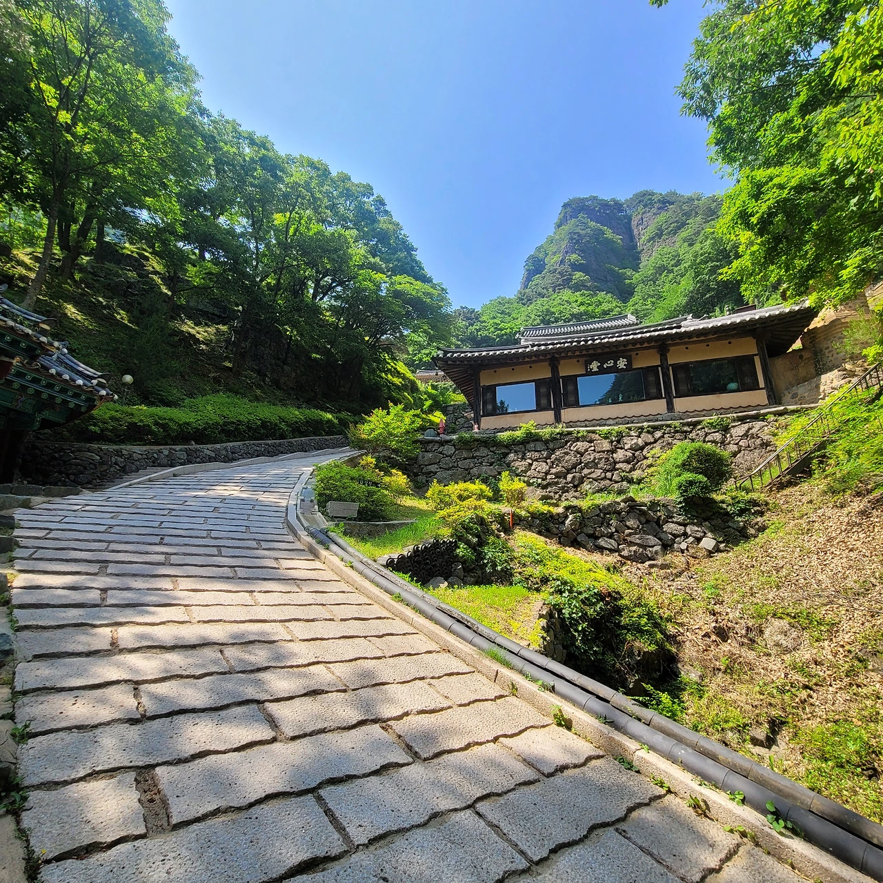 조금 더 가면 응진전이 나온다. 응진전은 청량산에서 손에 꼽는 아름다운 경치를 자랑한다. 역시나 기암과 어우러진 멋진 장면을 보여준다. 이곳은 단풍이 들면 더 기막힌 경치가 될 것 같다. 단체로 등반을 하게 되면 마음이 바쁘다. 발걸음도 빨라지고 목적지만 보인다. 그래서 주위를 충분히 감상할 여유가 없다. 이곳은 그렇게 지나치기에 아까운 곳이다. 뒤처질 수도 있지만 과감하게 가는 길에서 벗어나 들른 곳이 자소봉과 풍혈대다.