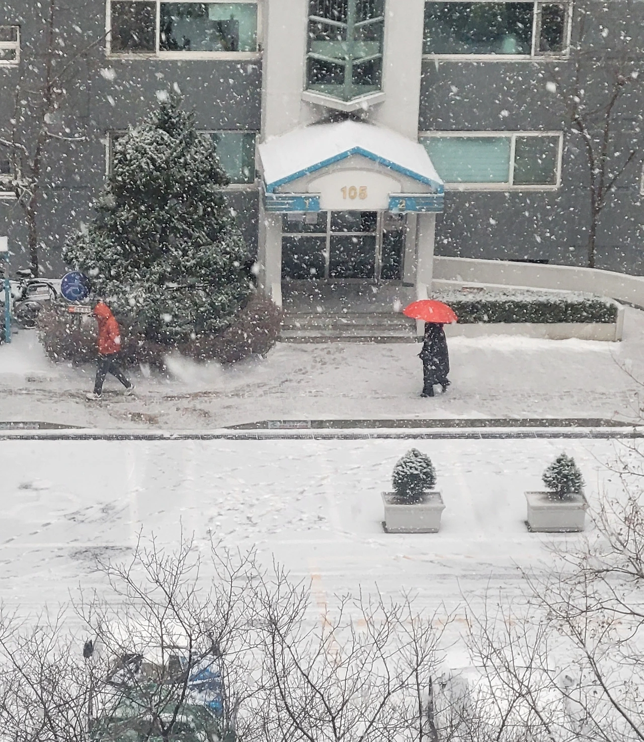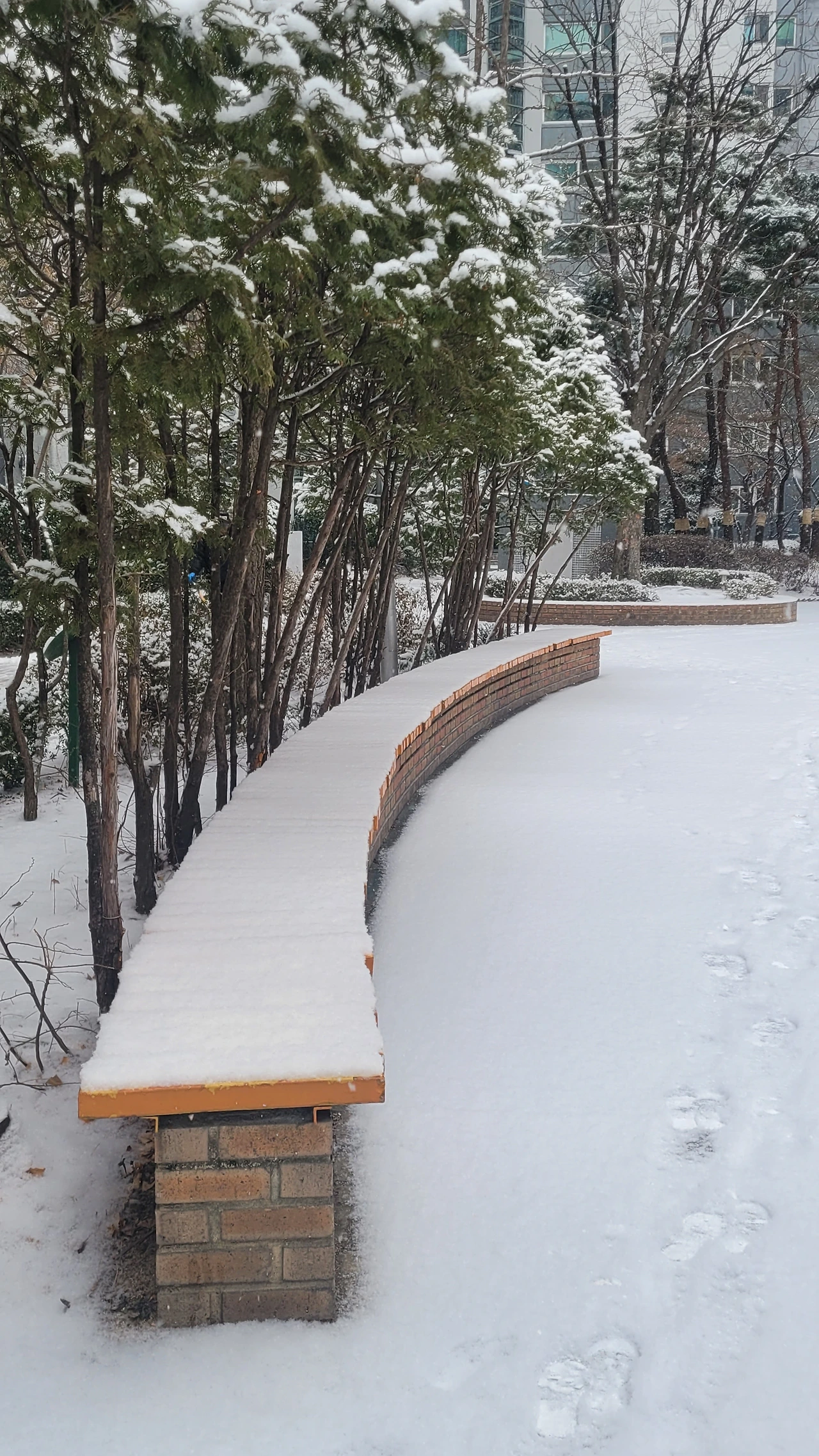 아침에 일어나 두터운 베란다 커튼을 젖힌다. 스르르 눈앞에 펼쳐진 창밖 세상은 마법이 풀려난 듯 온통 새하얀 별천지다. 밤사이 풀어져 있던 나른함이 찬기운에 저만치 물러가고 생기를 찾은 눈은 경이로운 세상을만난다. 나목은 제 모습 그대로 서 있지만 빈 공간은 예외 없이 눈이 점령해 버린 새하얀 세상이다.