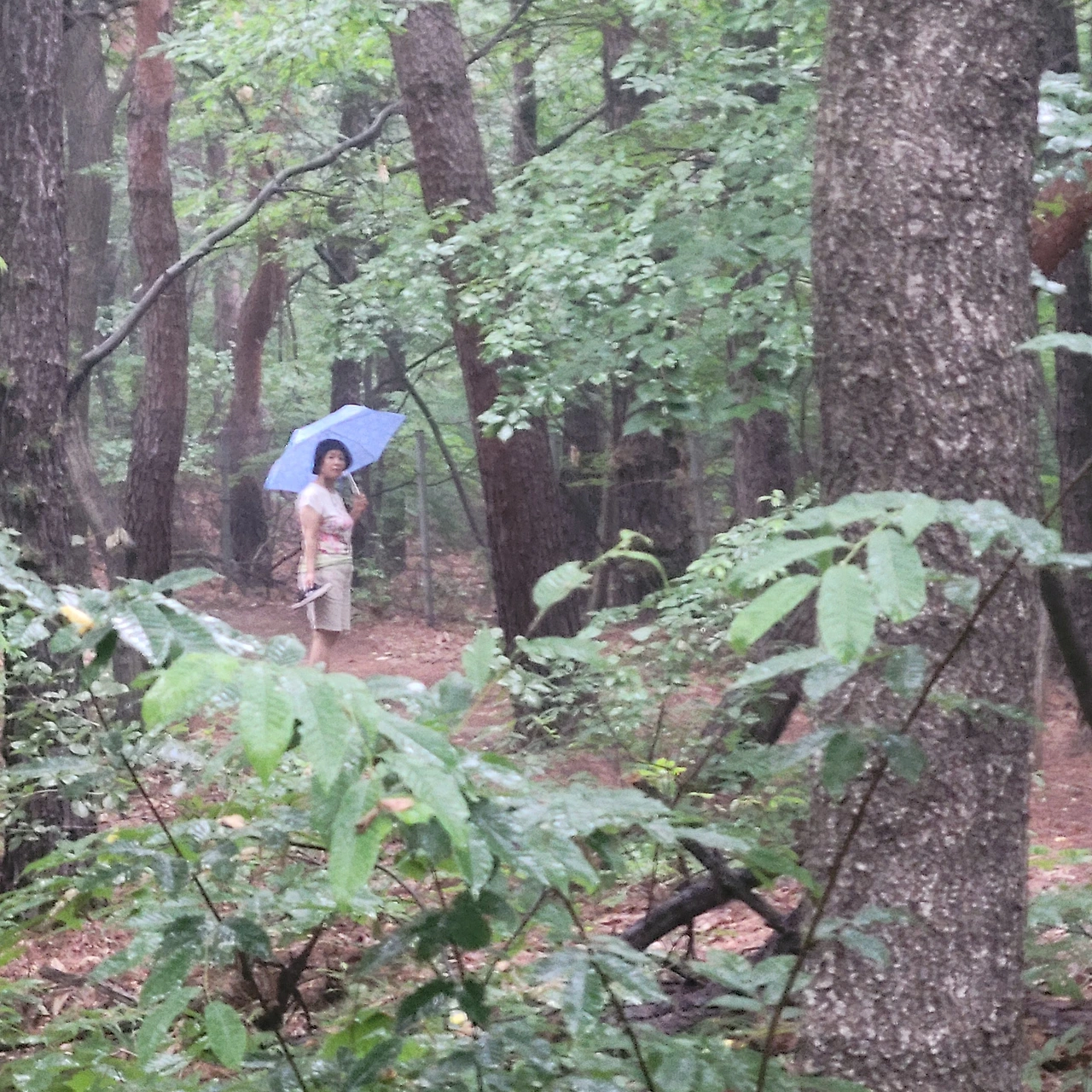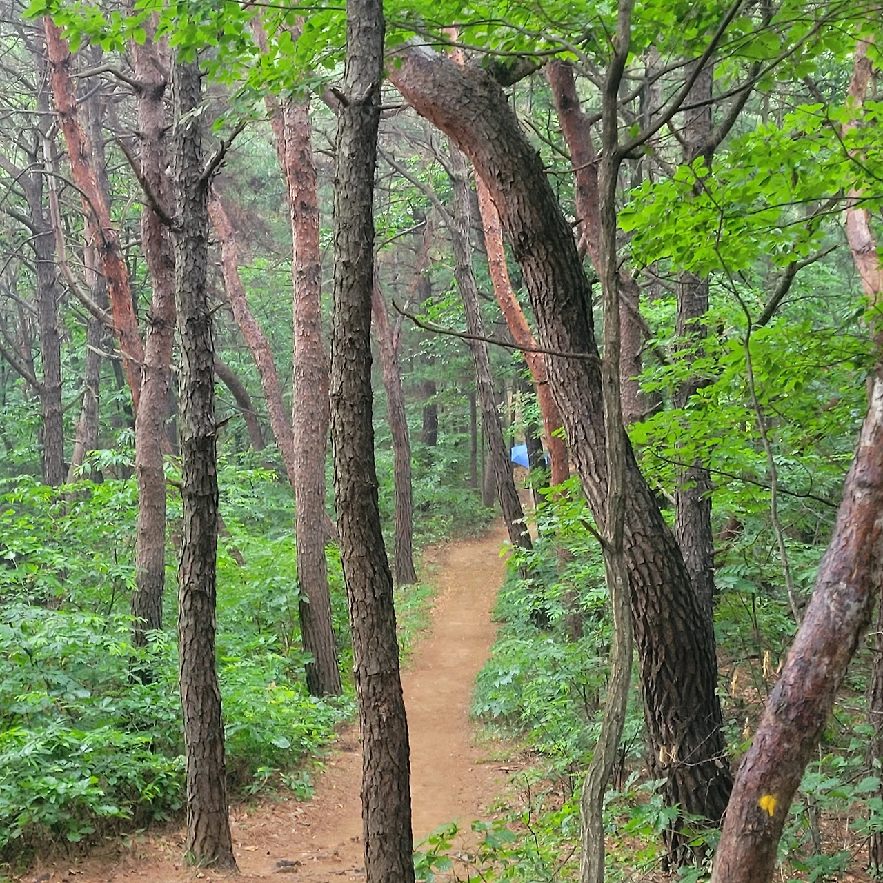 땅에 집중하며 걷지만 숲의 풍경도 눈에 들어온다. 비 오는 날은 흐려서 분위기가 우중충할 것 같지만 나무들은 싱싱하고 생기가 넘쳐서 오히려 환한 느낌이다. 나뭇잎들이 초록빛을 뿜어내는 마법을 부리는 것 같다. 그래서 그런지 숲이 빛난다.