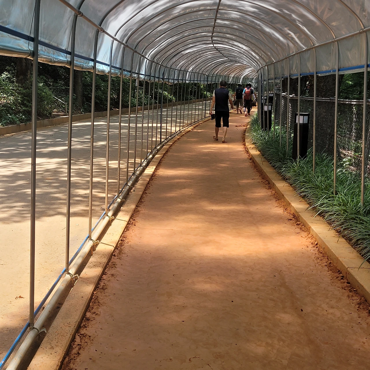 안산은 둘레길도 좋지만 맨발로 걷는 황톳길은 정말 최고다. 관리가 잘되어 흙이 부드럽다. 황토가 굳으면 돌멩이처럼 단단해져 걷기가 불편한 경우가 있는데 이곳은 꽤나 긴 길인데도 대부분 촉촉하다. 가림막도 설치되어 햇빛도 피할 수 있다. 중간에 발 마사지하기에 그만인 질퍽한 황토 공간도 마련되어 있다. 곁에 마련된 딱딱한 황토 구슬 마사지는 발바닥이 아파 도저히 밟을 수가 없었다. 발 씻는 공간도 중간중간에 구비되어 아주 편리하다. 아내와 함께 다시 찾고 싶은 공간이다. 다 같이 걸었으면 했는데 나 혼자만 걷게 되었다. 혼자라도 걸을 시간이 주어져 감사하다.