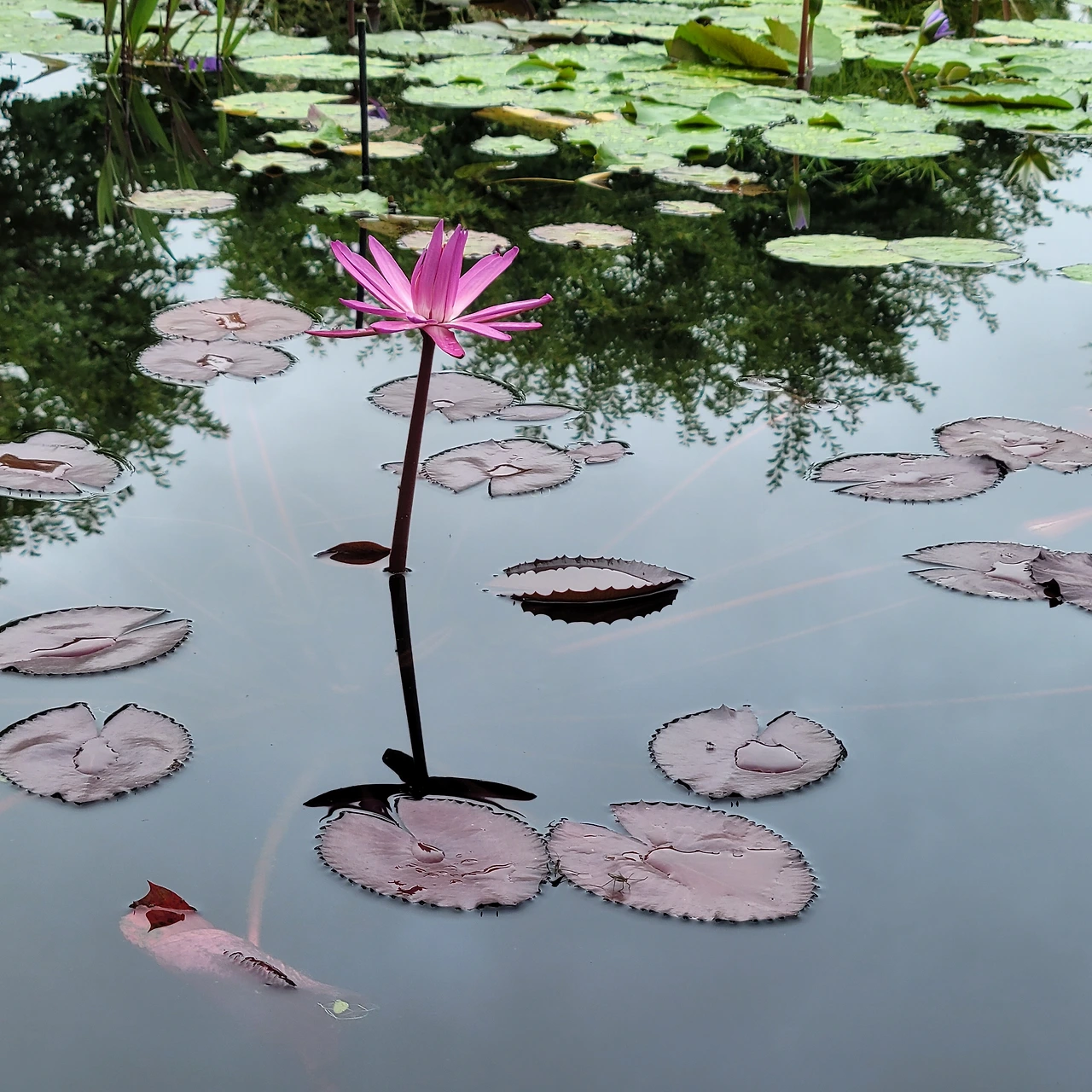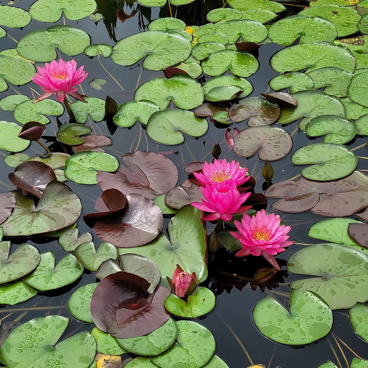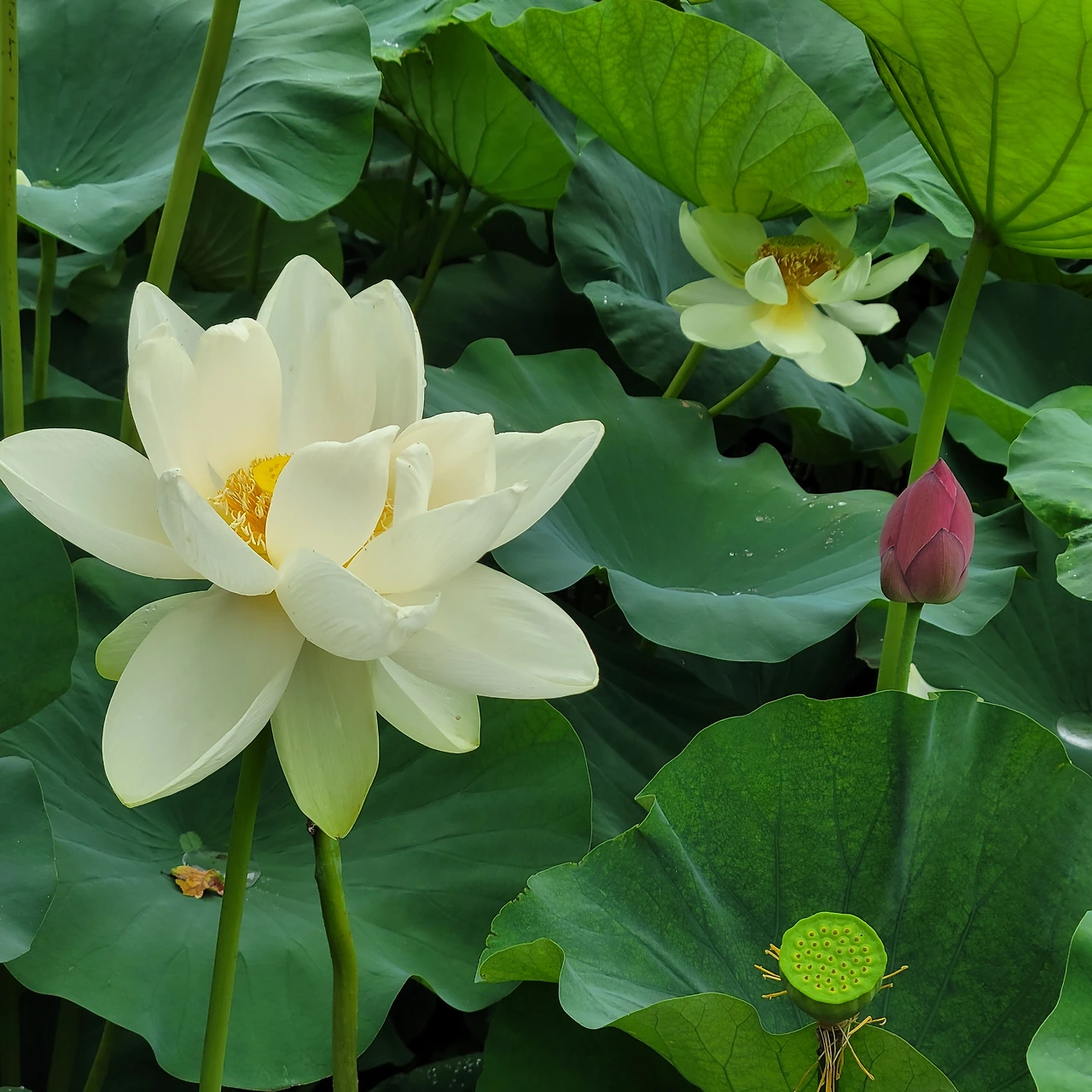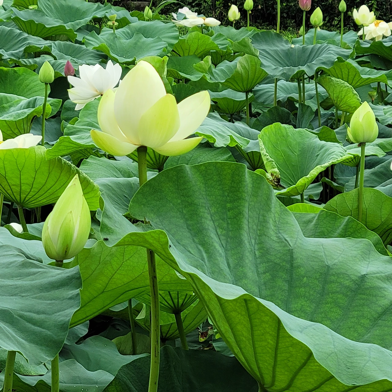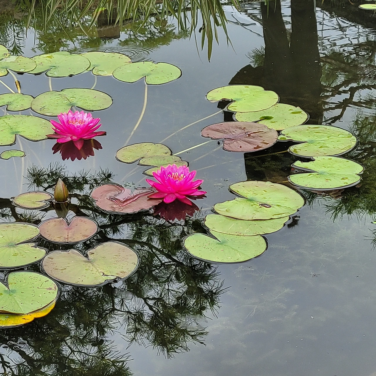 다양한 주제로 설계된 연못마다 독특한 분수가 있다. 용과 큰 도자기 화병이 물을 뿌리고 그 아래에는 연꽃과 수련들이 편안히 자리 잡았다. 어리연, 개연이 자라고 멸종식물인 가시연도 있다. 수련 중 으뜸인 빅토리아 수련도 넓은 잎을 드리웠지만 꽃은 피지 않았다.