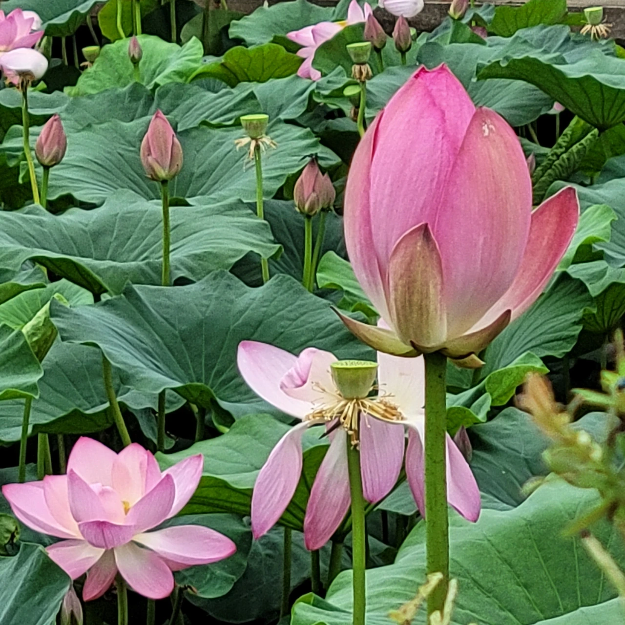 연꽃을 배부르게 봤다. 수련도 있었지만 연꽃이 주연이었다. 연꽃과 수련은 수련과 식물로 영어로는 lotus로 같이 쓴다. 이 둘의 차이는 잎이 물에 떠있으면 수련이고 연꽃은 긴 줄기 끝에 잎이 달려 잎이 물 위에서 자란다. 수련은 밤에 꽃잎을 오므려 잠을 자는 연꽃이라는 의미다.