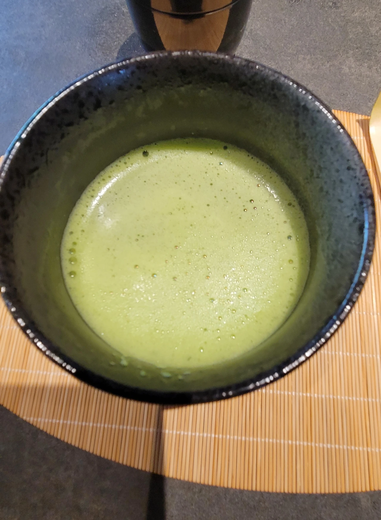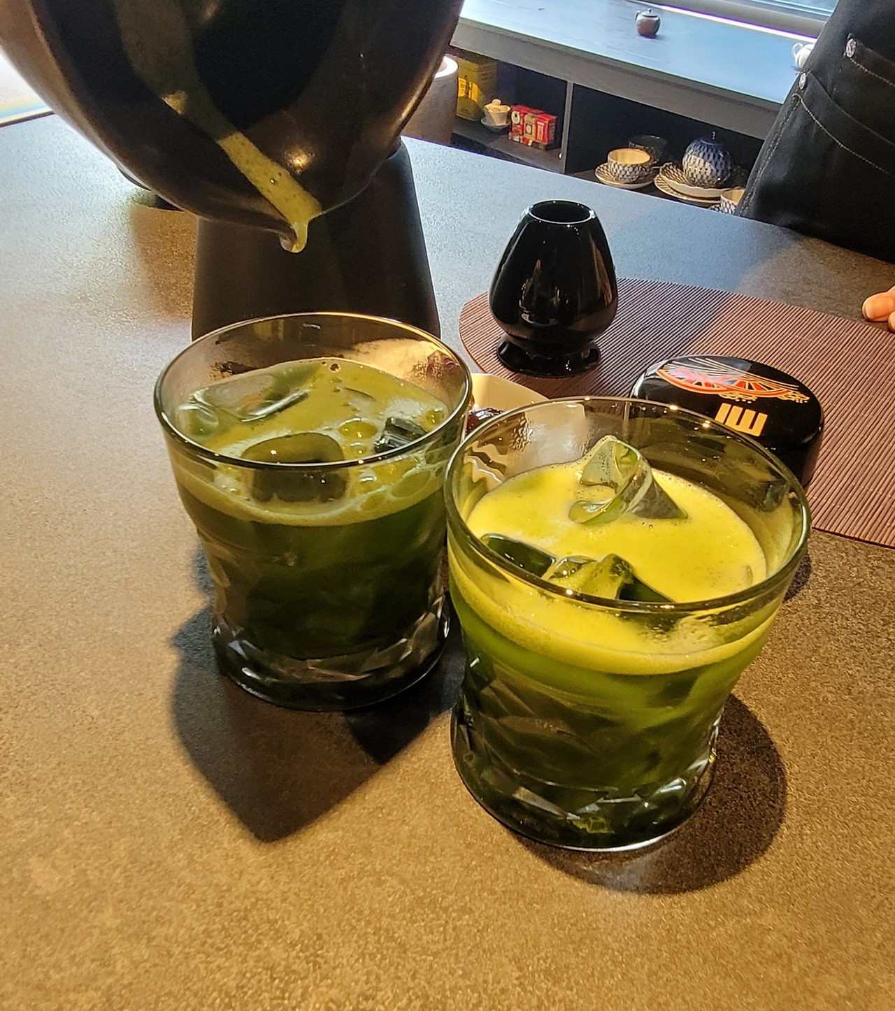 말차에 대하여 알고 있었던 사실은 단순히 녹차를 가루로 내어 물에 타서 마시는 것이 전부였다. 그래서 실제로 말차 분말을 그냥 물에 타서 먹었다. 녹차보다 진하고 쓴 맛이 났다. 이게 말차의 맛이려니 하고 여겼다. 아는 만큼 보이고 아는 만큼 즐긴다. 원데이 클래스를 참석하고 비로소 말차의 진면목을 알게 되었다.