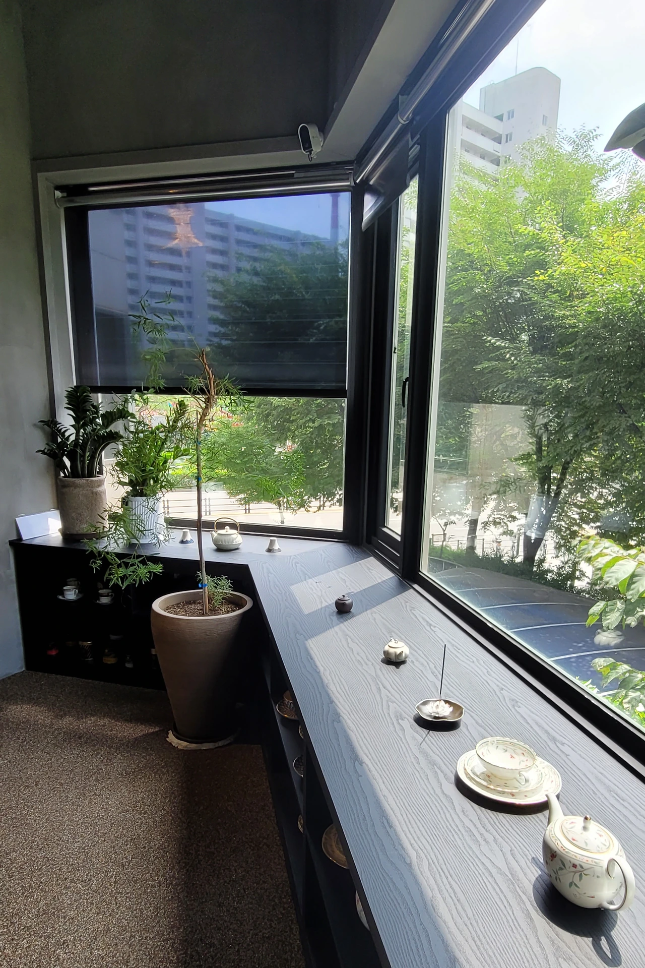 독서와 글쓰기 모임의 멤버가 도봉구 창동에 티하우스 다드림을 오픈했다. 그녀가 늘 관심을 가졌고 꾸준히 공부를 해왔던 분야로 용감하게 도전을 한 것이다. 개점 시점에 방문을 했었고 그 소감을 글로 남겼다. 다시 찾은 그곳은 처음과 같은 분위기로 우아했고 차분했다. 찻집에 잘 어울리는 싱그러운 식물들이 여전히 푸르렀고 격조 높고 아기자기한 소품들은 자신의 자리에서 반짝이고 있었다. 그전에 통유리창으로 보이는 바깥 풍경이 나목들만 덩그러니 서있어 쓸쓸했는데 지금은 무성한 여름으로 단장한 신록이 한창이다.