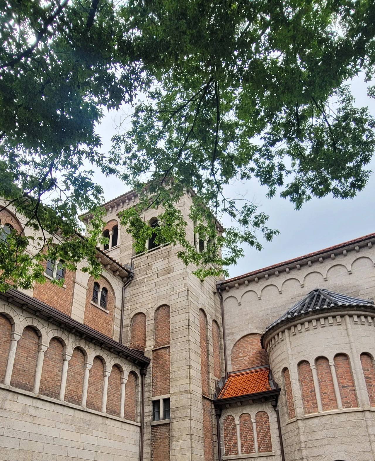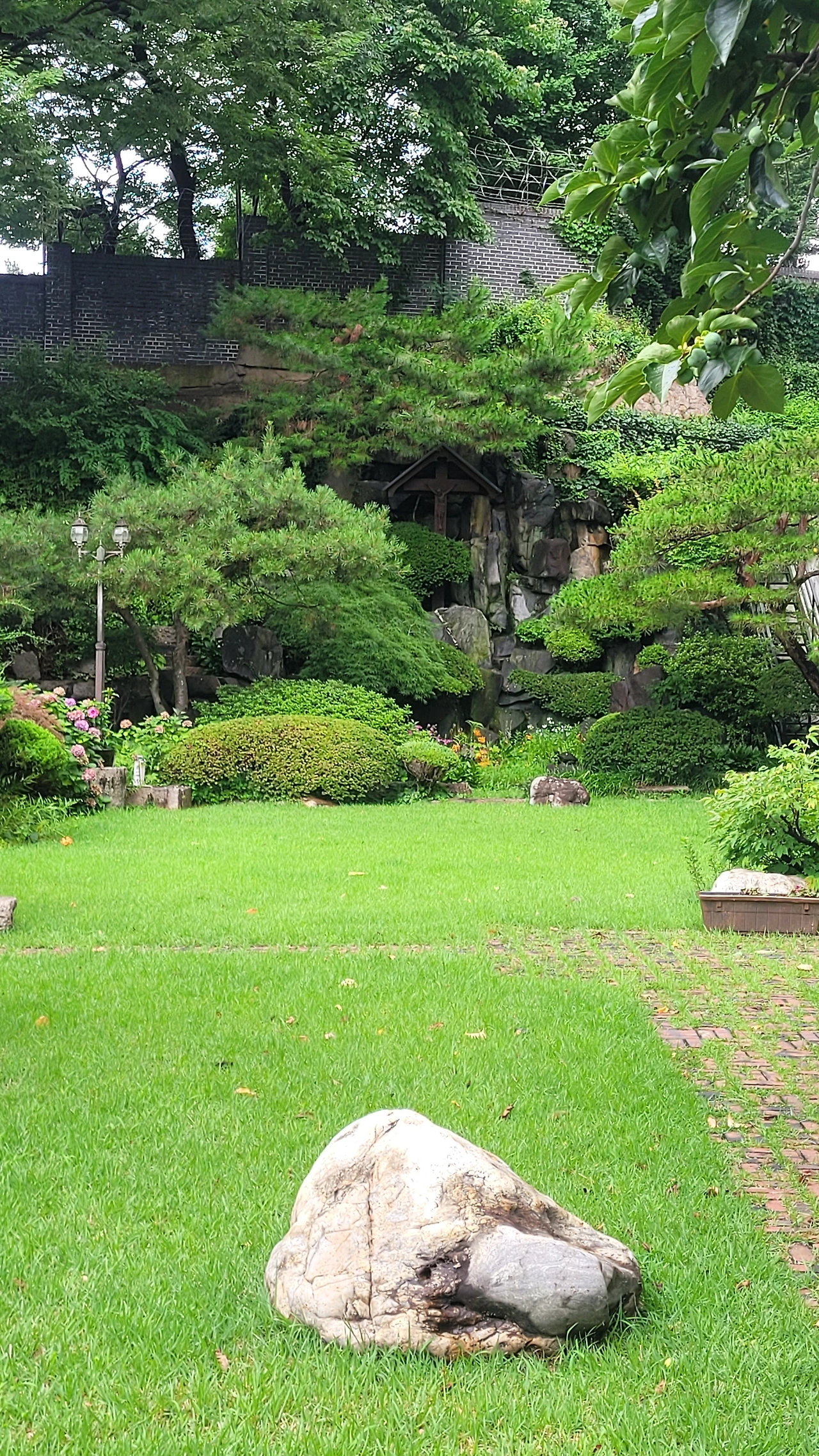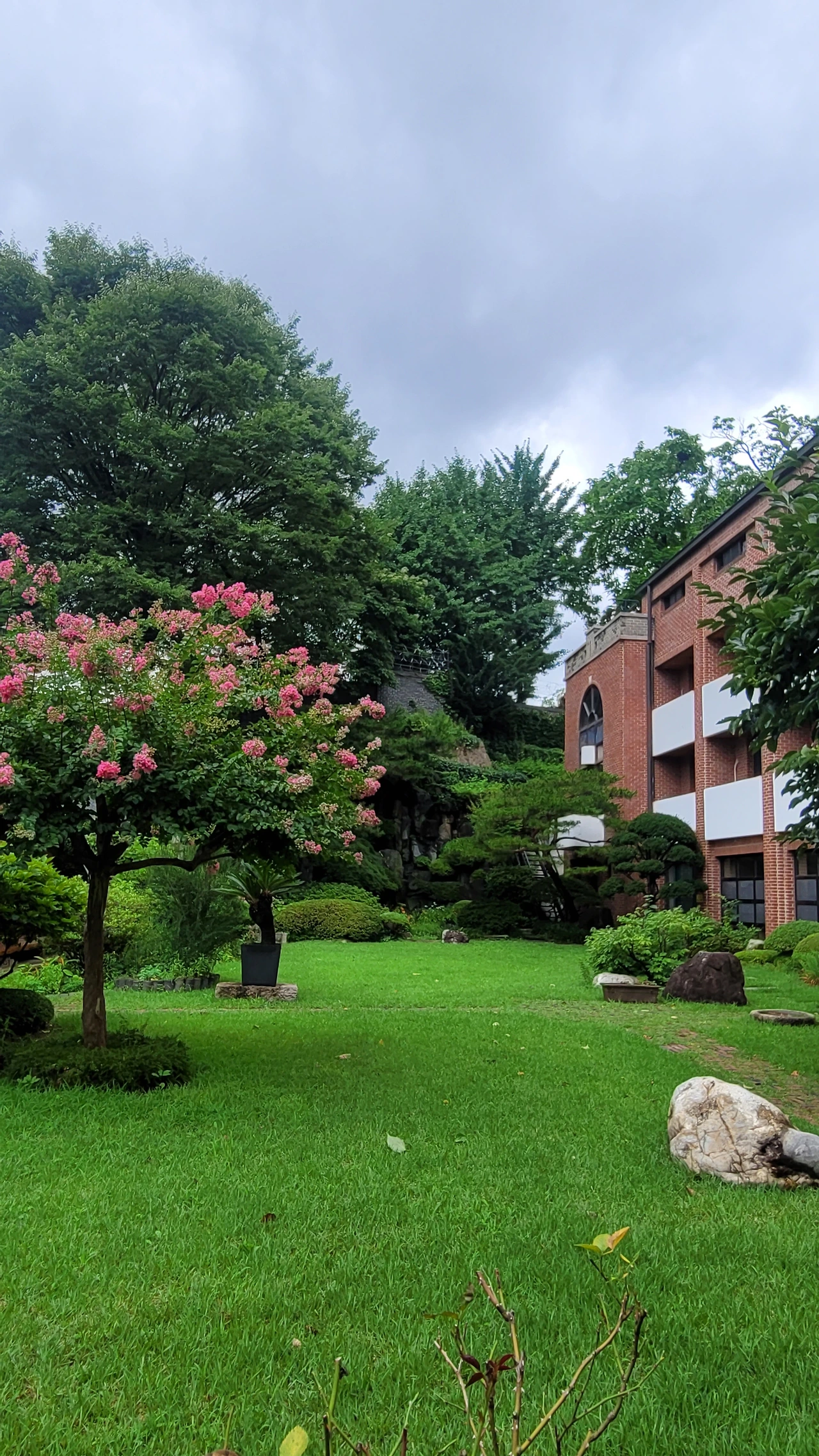차를 다 마시고 시간이 꽤 흘렀음에도 수녀원에서 홍차를 대접하고 싶다는 수녀님의 뜻이 있어 다 같이 수녀원으로 향했다. 푸른 잔디 위에 배롱나무가 붉게 피어난 수녀원은 언제나 봐도 아름답다. 화백님과 수녀원 뒤뜰에 조성된 비아돌로로사를 걸으며 예수그리스도의 고난을 돌아보는 시간을 가진 후에 홍차를 나누었다.