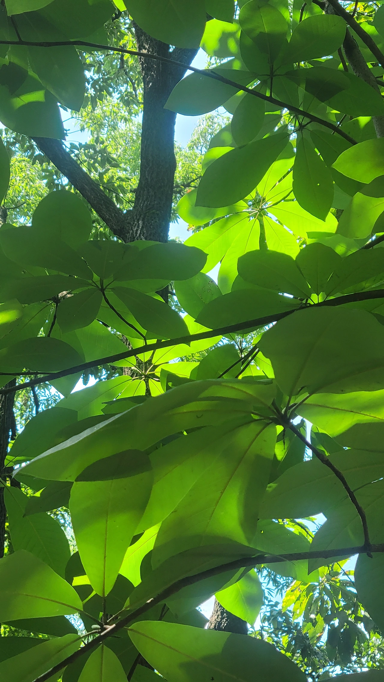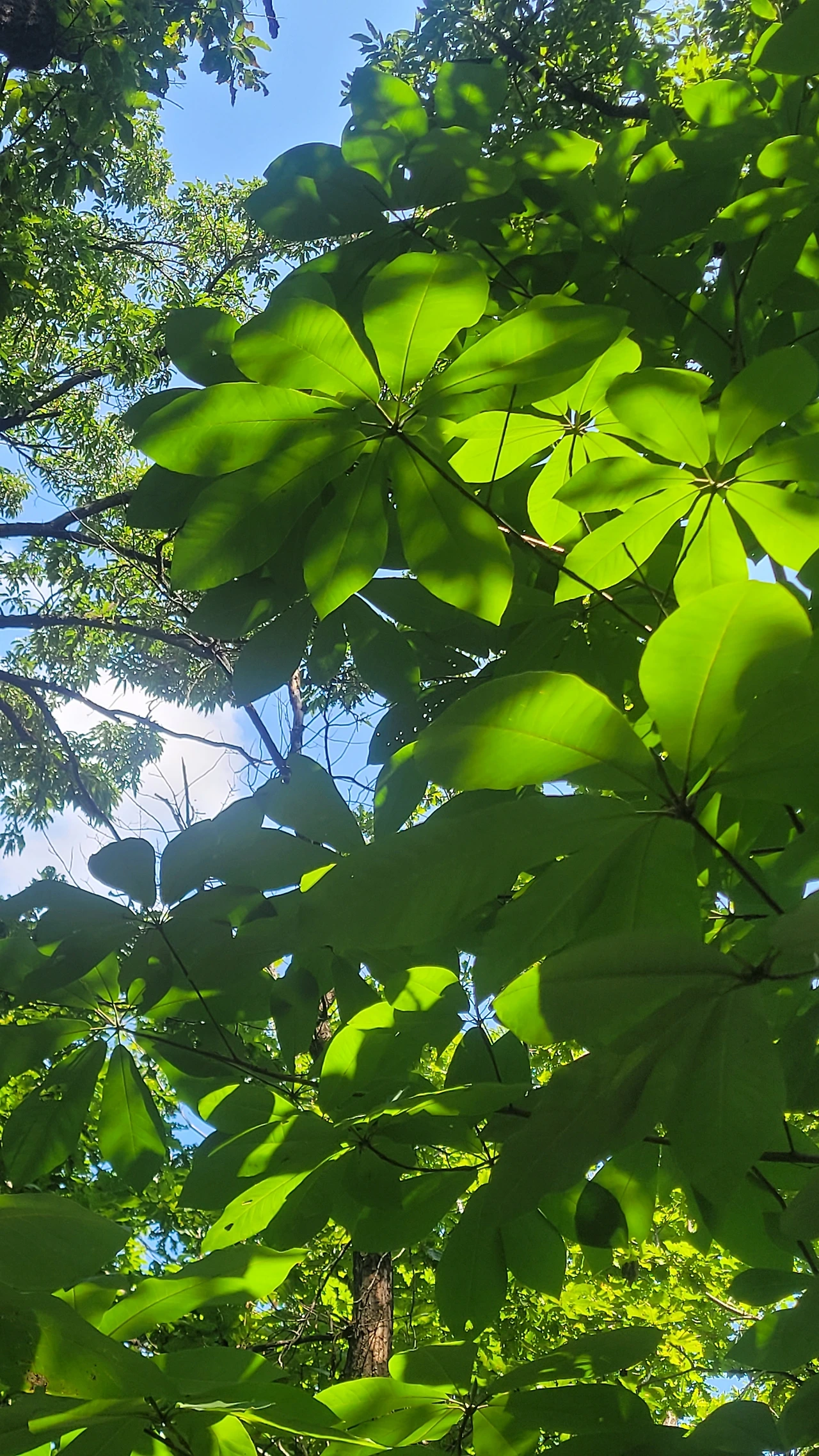 내려오는 길에 일본목련나무 잎이 그리는 아름다운 모습을 사진에 담았다. 직박구리가 열심히 씨앗을 퍼뜨린 탓에 여기저기 묘목들이 자라고 있다. 넓고 시원한 잎이 그려내는 여름의 풍경이 참으로 매력적이다.