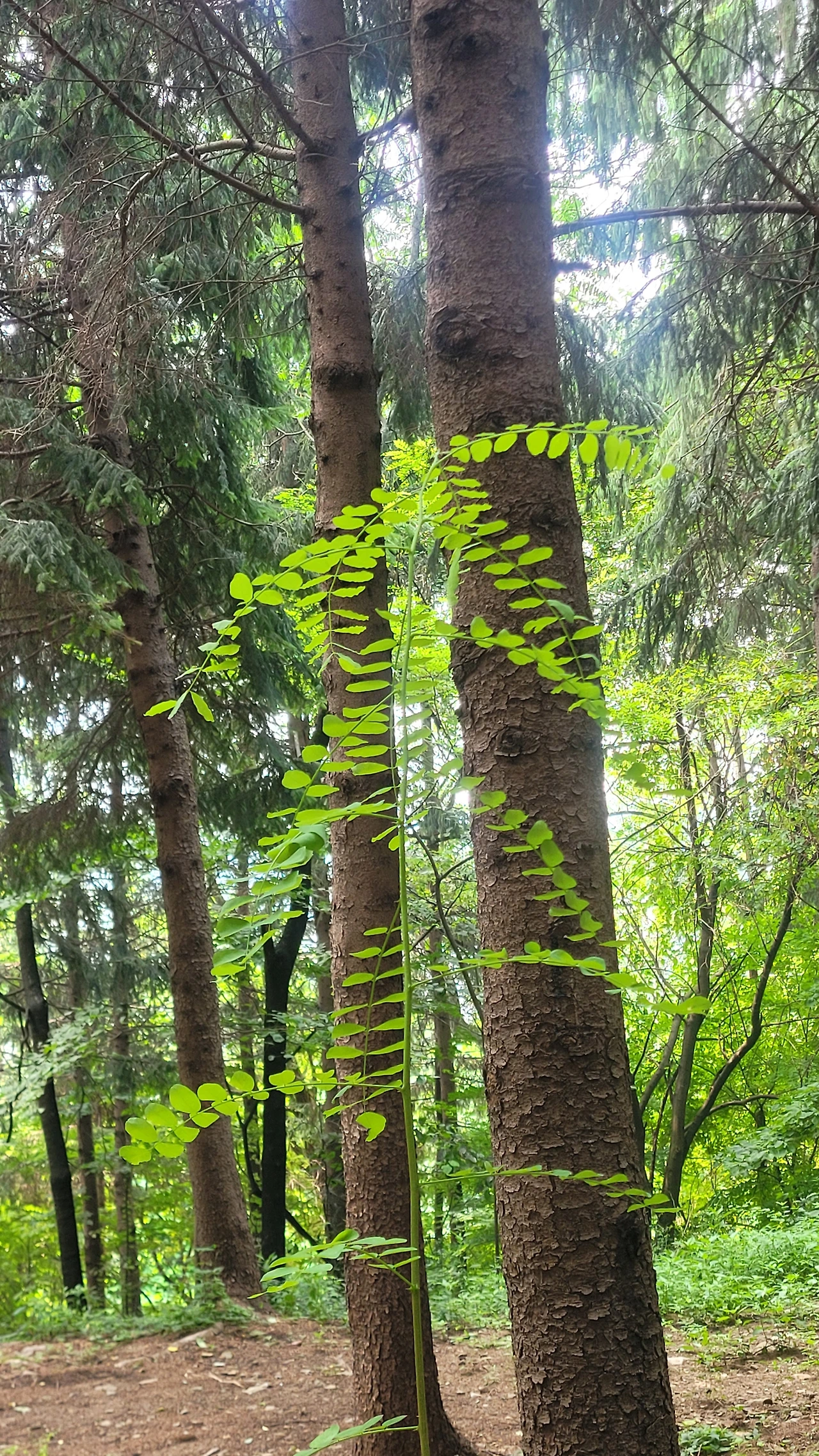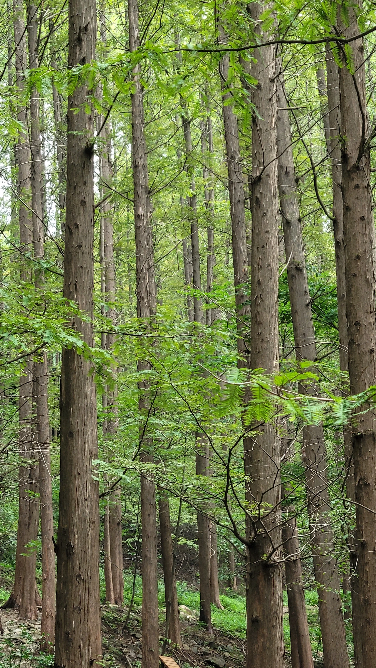 독일가문비 무리 곁으로 메타세쿼이아가 이웃하고 자란다. 근엄함을 지닌 가문비와 달리 메타 숲은 경쾌하다. 밝은 녹색이 빚어내는 싱그러움이 어린아이의 천진함 같다.유난히 곧은 나무 기둥이 수직하여 하늘로 치솟은 모습에 마음도 가지런해진다.