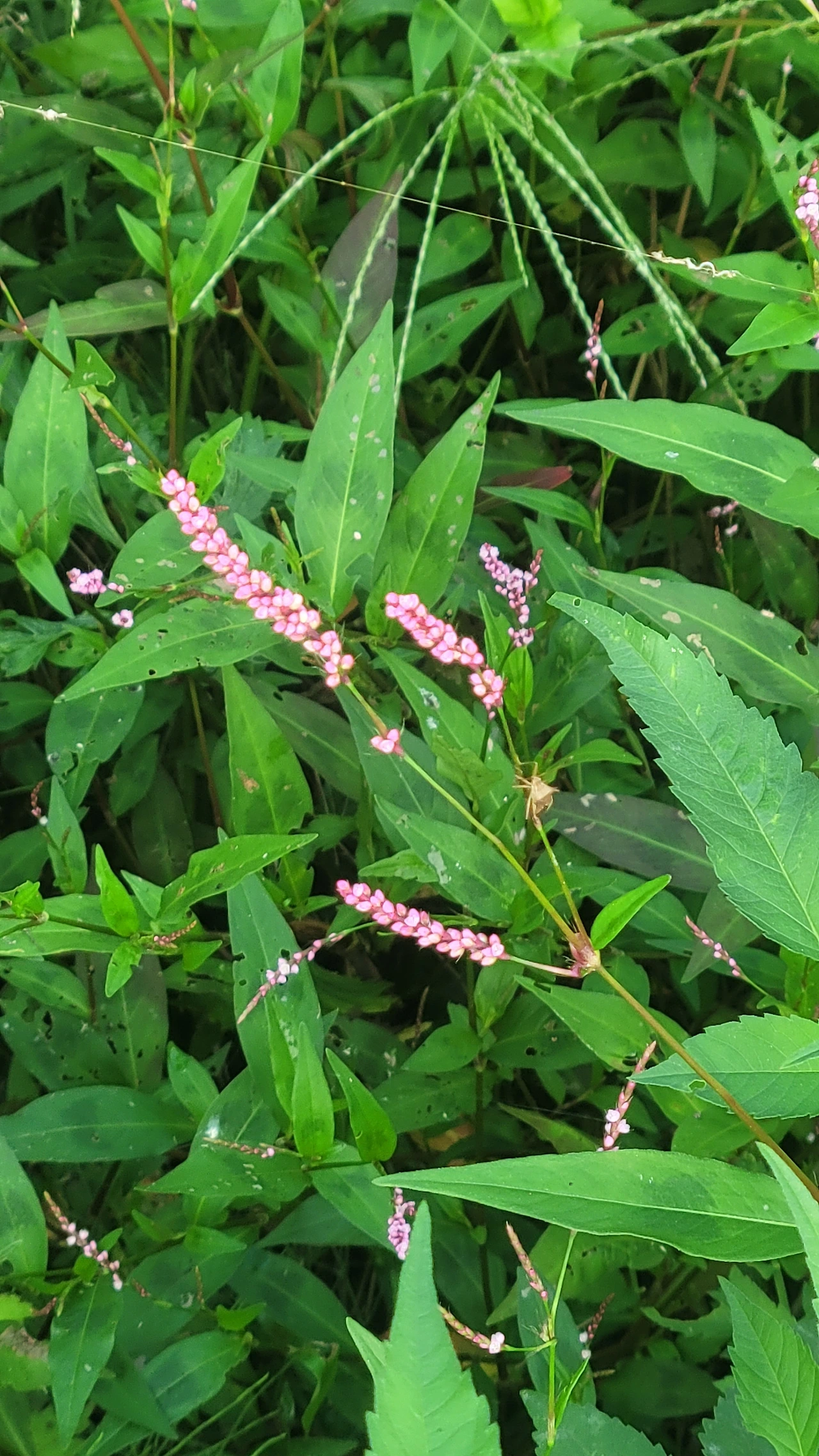 중간 습지공원에서 잠시 쉬었다. 관리가 제대로 안된 탓에 잡풀이 무성하다. 왕고들빼기 꽃이 많이 피었고 여뀌도 한창이다. 고마리는 이제 시작인지 잎만 무성하고 한 두 송이만 보인다.