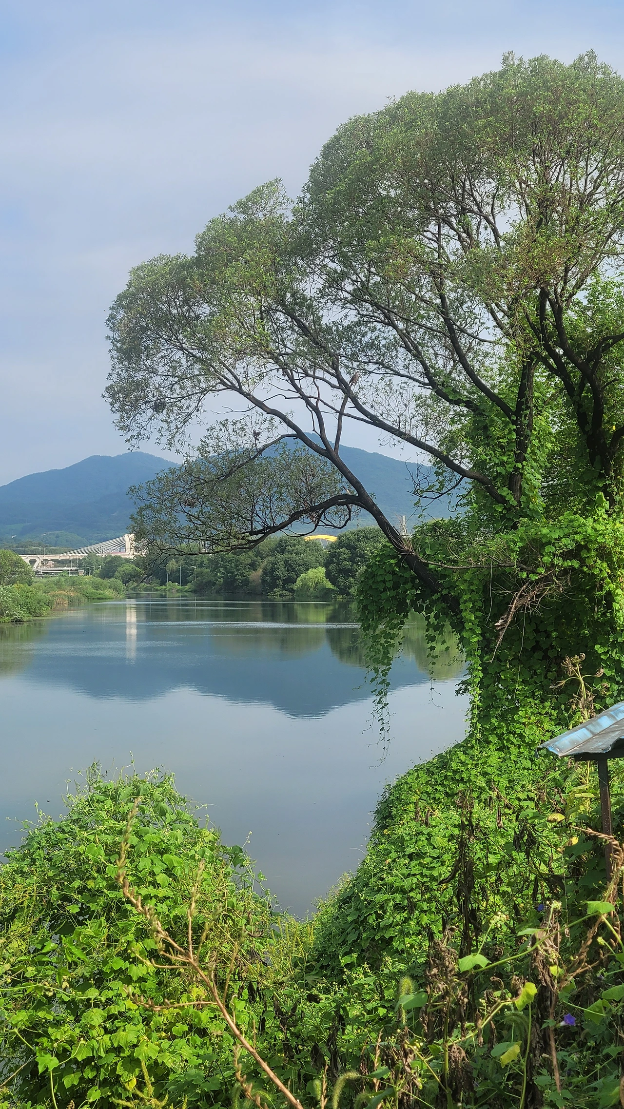 오전 8시부터 라이딩에 나섰다. 하늘은 아침나절 구름이 잔뜩 깔려 우중충한 분위기다. 햇살이 힘을 잃은 흐린 날이 오히려 자전거 타기에 좋다. 바람도 제법 선선해서 달리는 기분이 경쾌했다. 처음부터 속도를 내며 날듯이 달린다. 세 사람이 함께 보조를 맞추며 간다. 길가에는 한여름을 아쉬워하는 듯 풀들이 무성하다. 무성한 수풀 사이로 앙증맞은 꽃들이 피었다. 남보라색 나팔꽃이 여기저기 생글거린다. 중간중간에 키다리처럼 삐죽 솟은 대궁이에 노란 꽃들이 달린 달맞이도 씩씩하게 피었다.