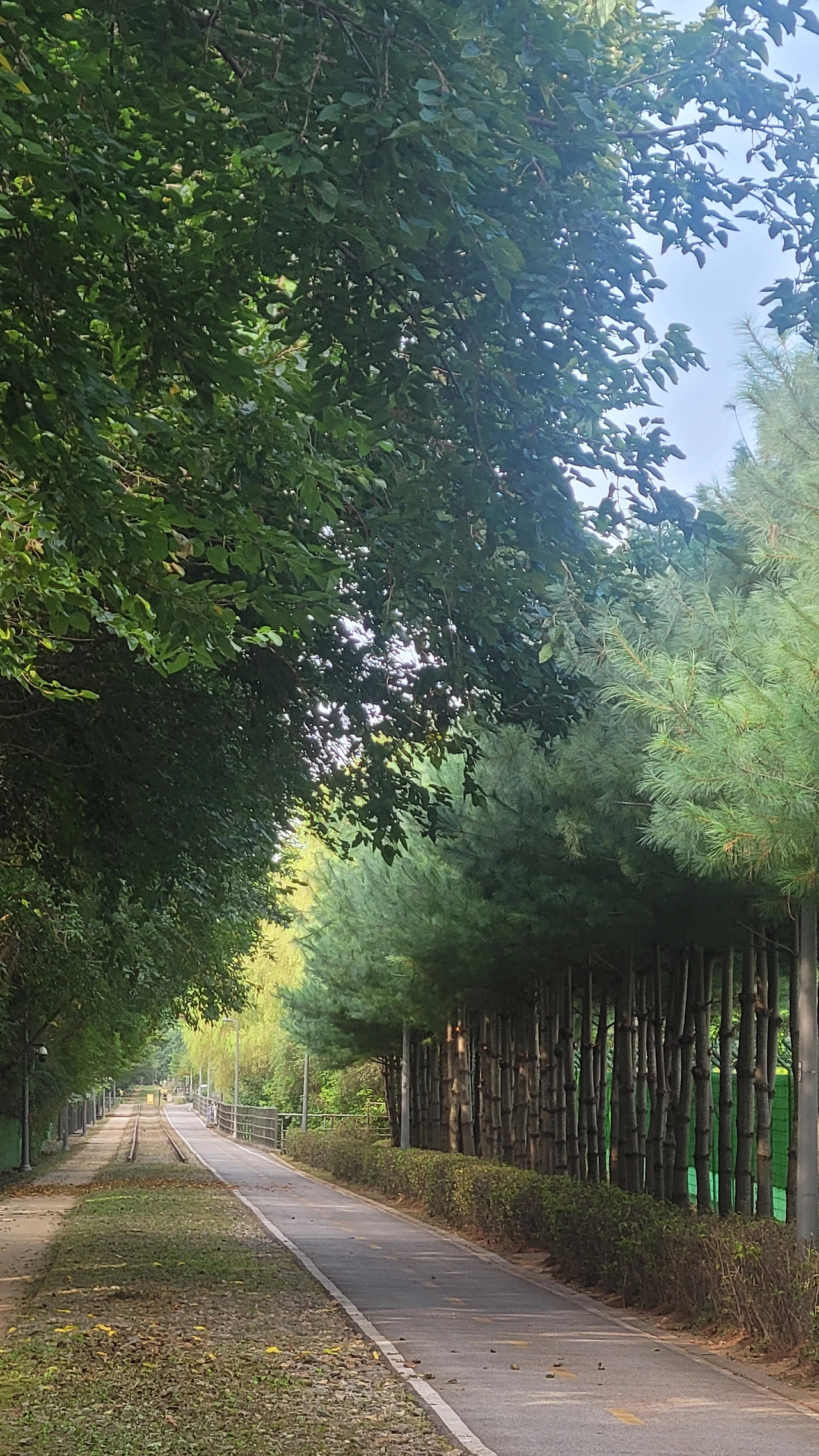 꾸준한 속도로 페달을 힘차게 밟으니 허벅지에 긴장감 팽팽하다. 하체운동도 덩달아하게 되어 뿌듯하다.